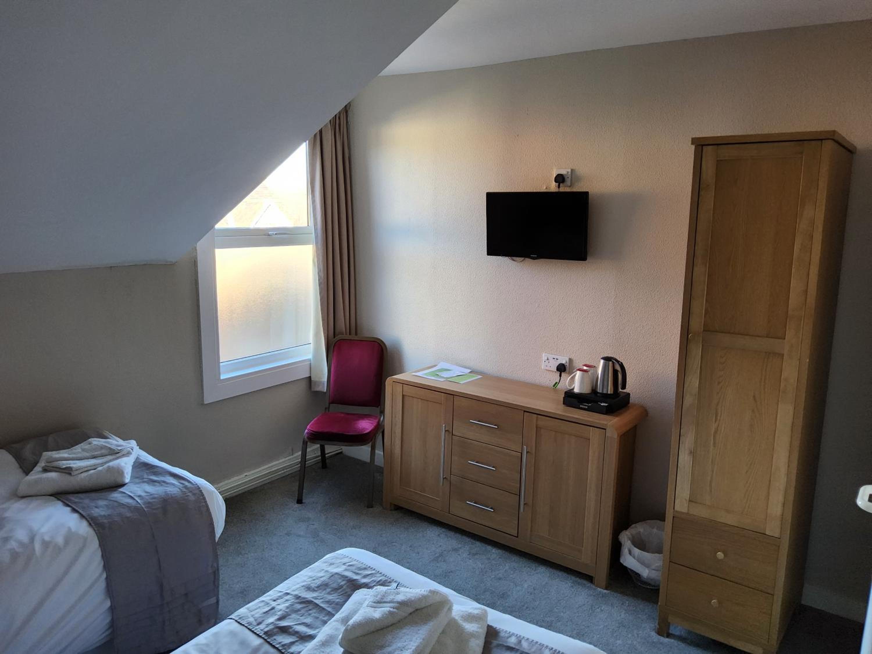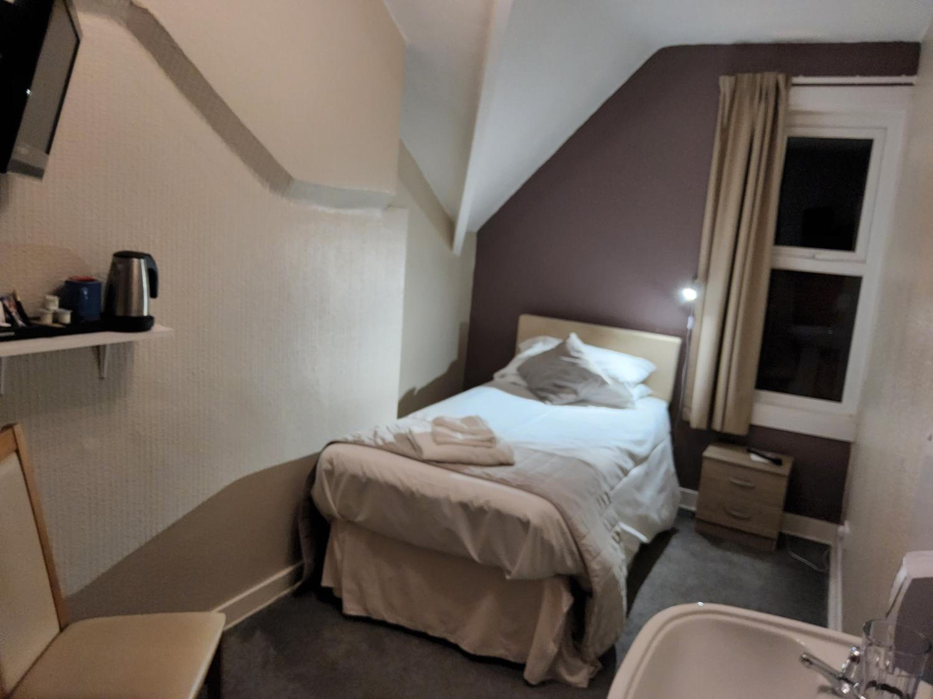 The bed was really comfortable, bedding was clean and the room appeared really clean and fresh. It was a nice touch having a kettle, two teabags and two satches of coffee to make our mornings a little easier. We were only staying two nights for our trip to Forbidden Forest Festival. We travelled down to stay the night before, with the intention of staying the night after the festival too. The young lady who greeted us on arrival to the hotel on 30/05/2025 was really nice and super helpful, and even gave us recommendations of where to eat (the hotel does not serve food on a weekend other than breakfasts).