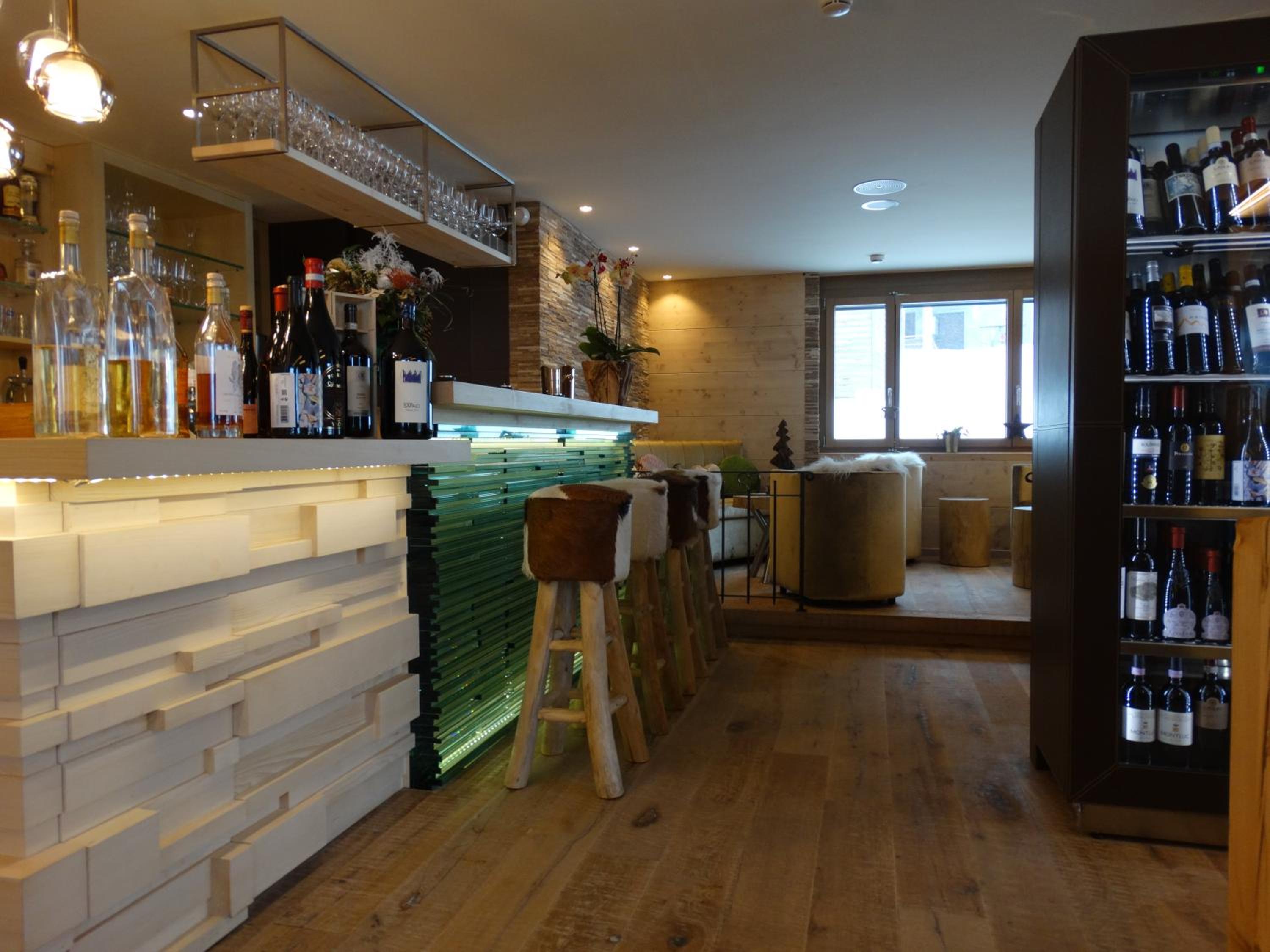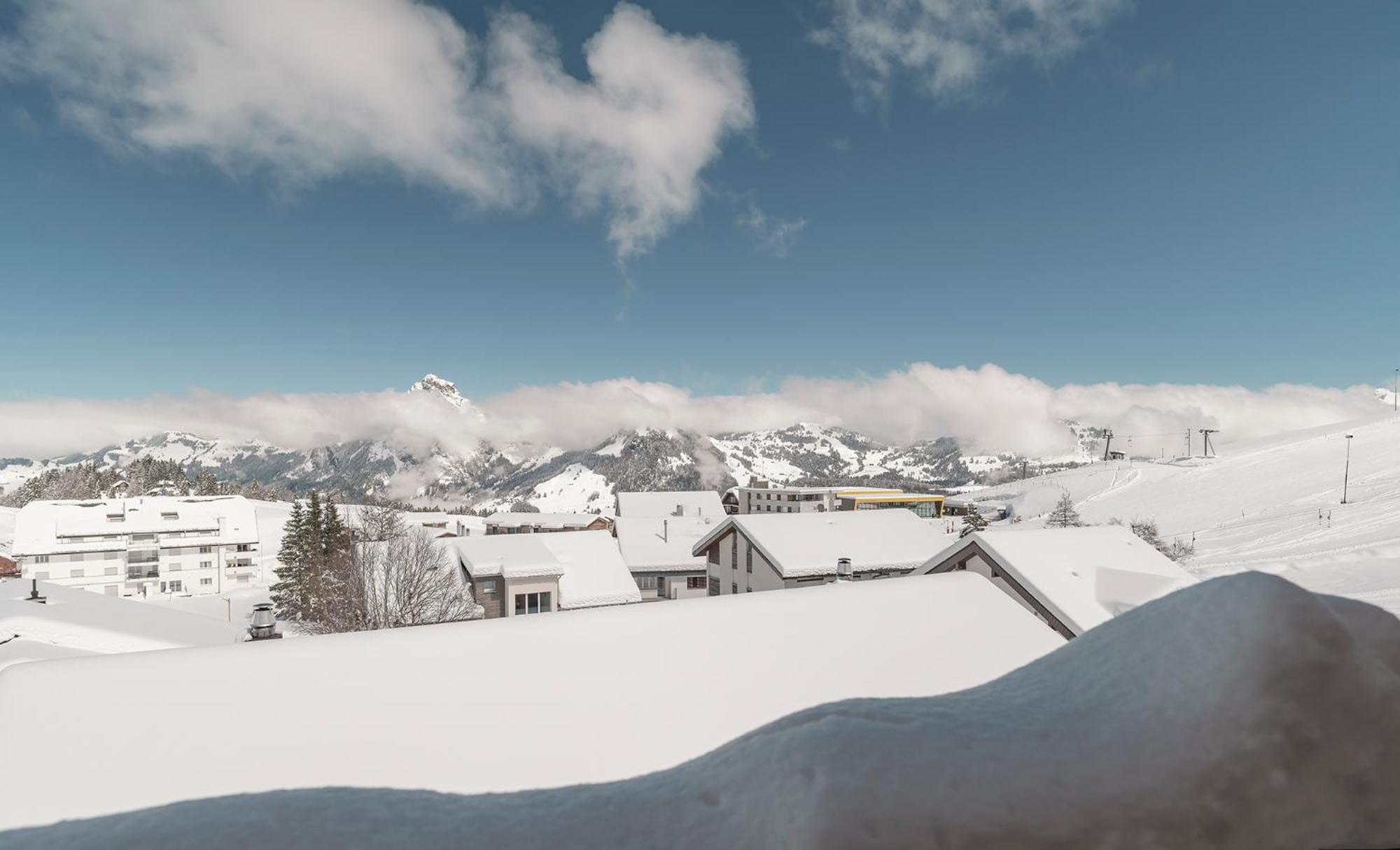 Good location, beautiful view on the alps. Right on a ski slope. Good breakfast which you pay directly 35 chf per person