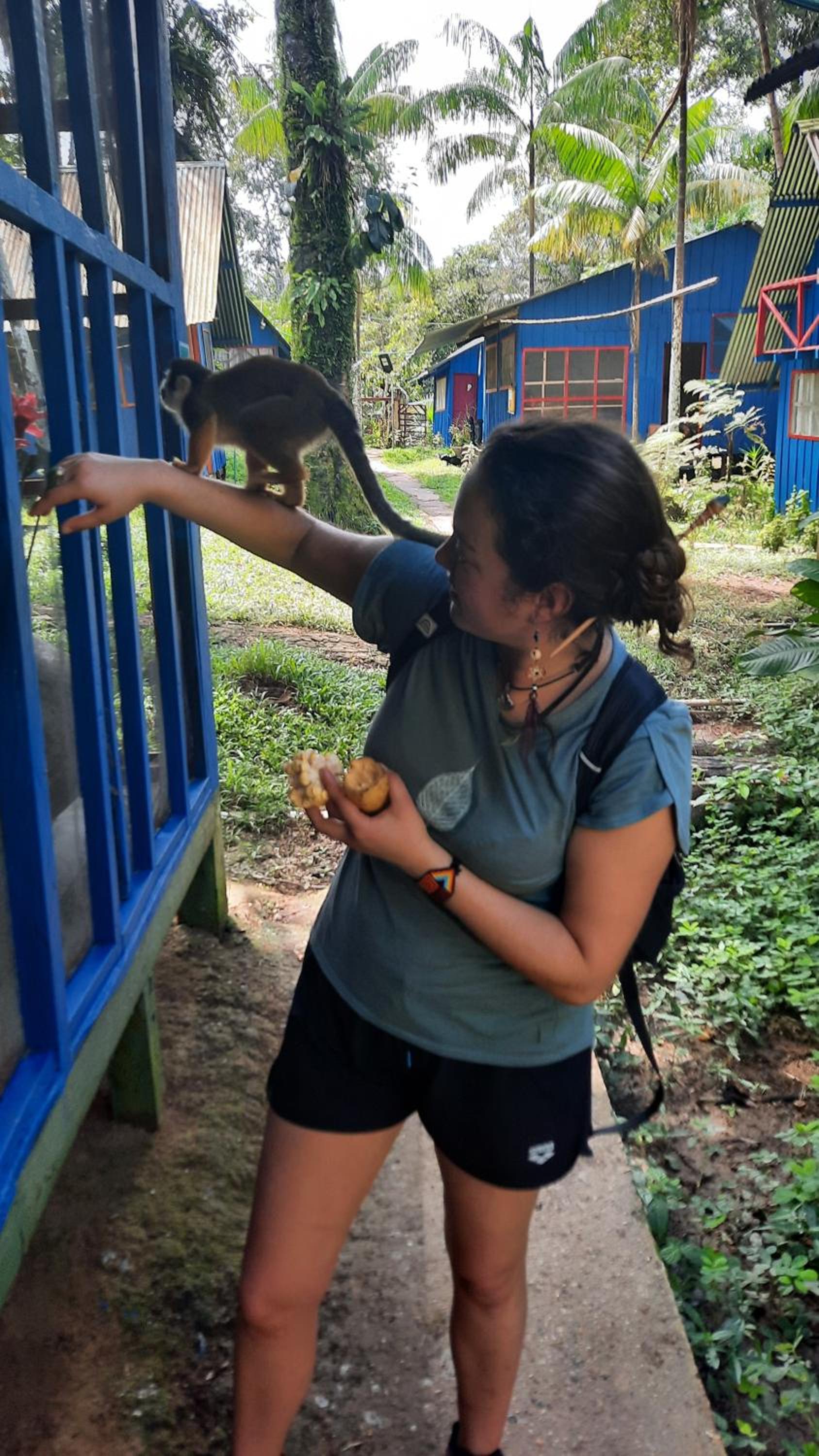 La interacción con los animales como monitos y aves es mágica. Yo quería estar muy cerca de los monos y este lugar fue el ideal para cumplir con este sueño. El Frai es un excelente anfitrión, nos enseñó con orgullo lo que han logrado construír, el respeto por la naturaleza y el valorar la desconexión con el mundo externo para recargarce de la energía de la tierra.