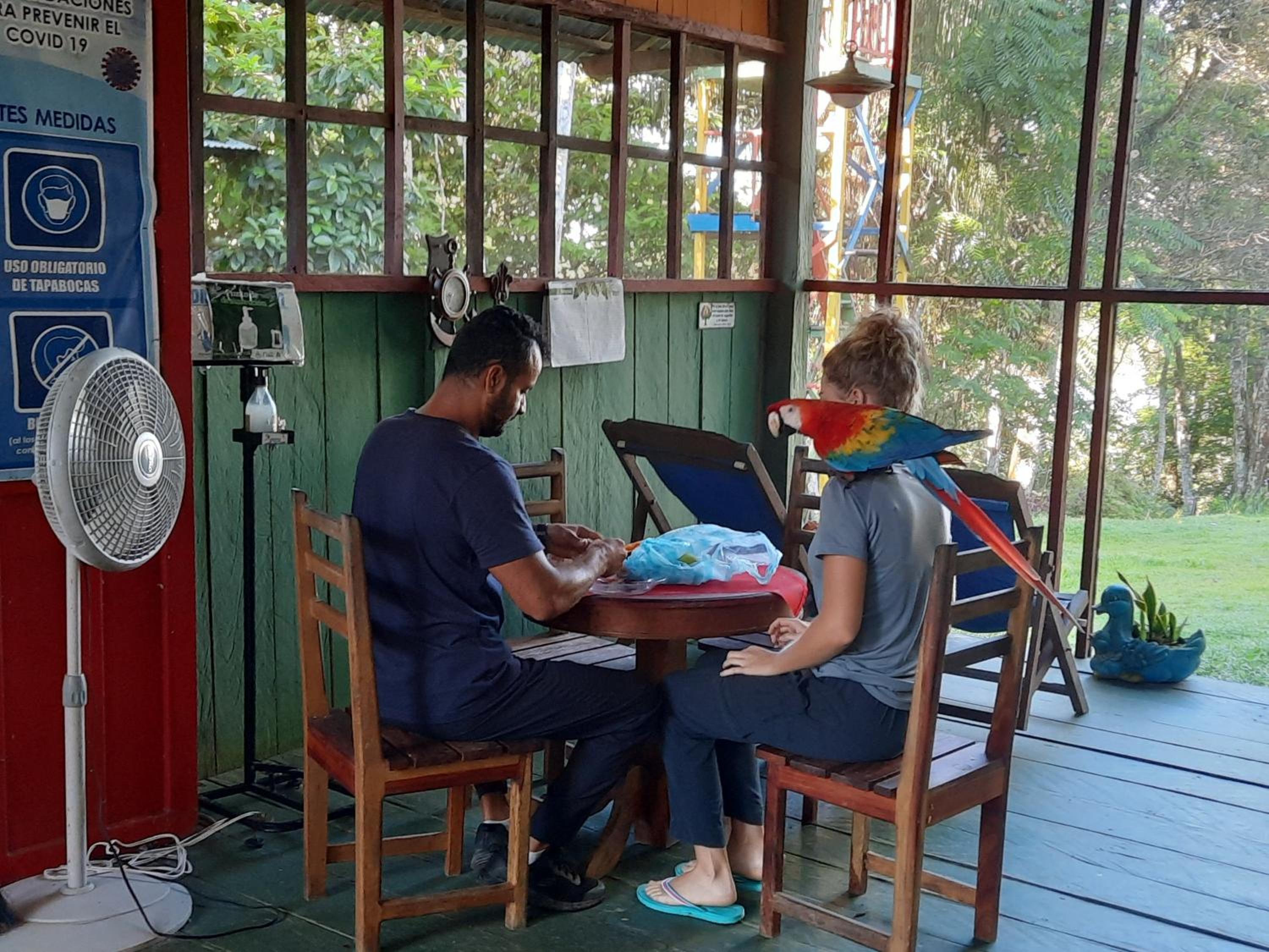 Beautiful location in the middle of nature. Parrots and monkeys come to visit the tourists. Lovely hosts that take care of everybody.
