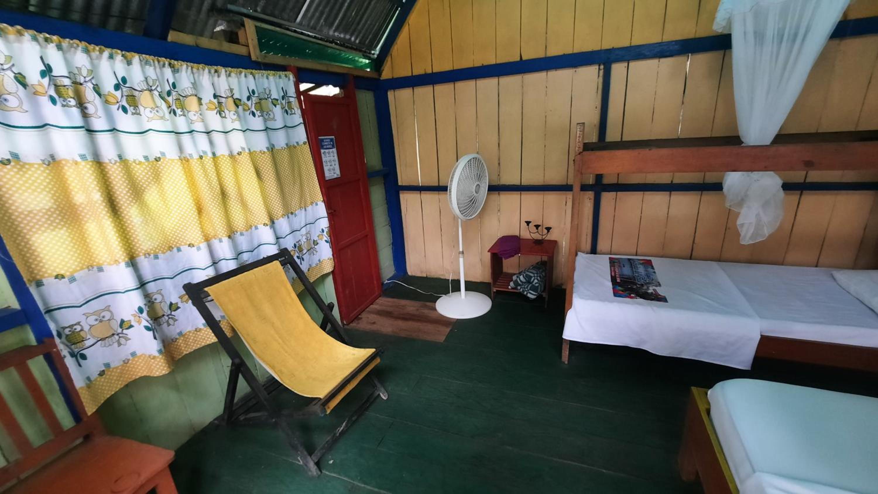 Me encanto este lugar, en medio de la naturaleza, con monos y aves de diferentes tipos conviviendo en libertad. Un sitio muy tranquilo, a 20 min caminando de puerto Narino. Fray es muy amable y atento. Nos prestaron el Kayak del hotel pero recomiendo no usarlo ya que esta averiado y en la mitad del lago que esta al frente se nos metio el agua y se nos voltio y afortunadamente paso por ahi una lancha que nos llevo devuelta al hotel. Al lado hay un hotel que rentan kayaks a 35 mil pesos. Mejor usas esos.