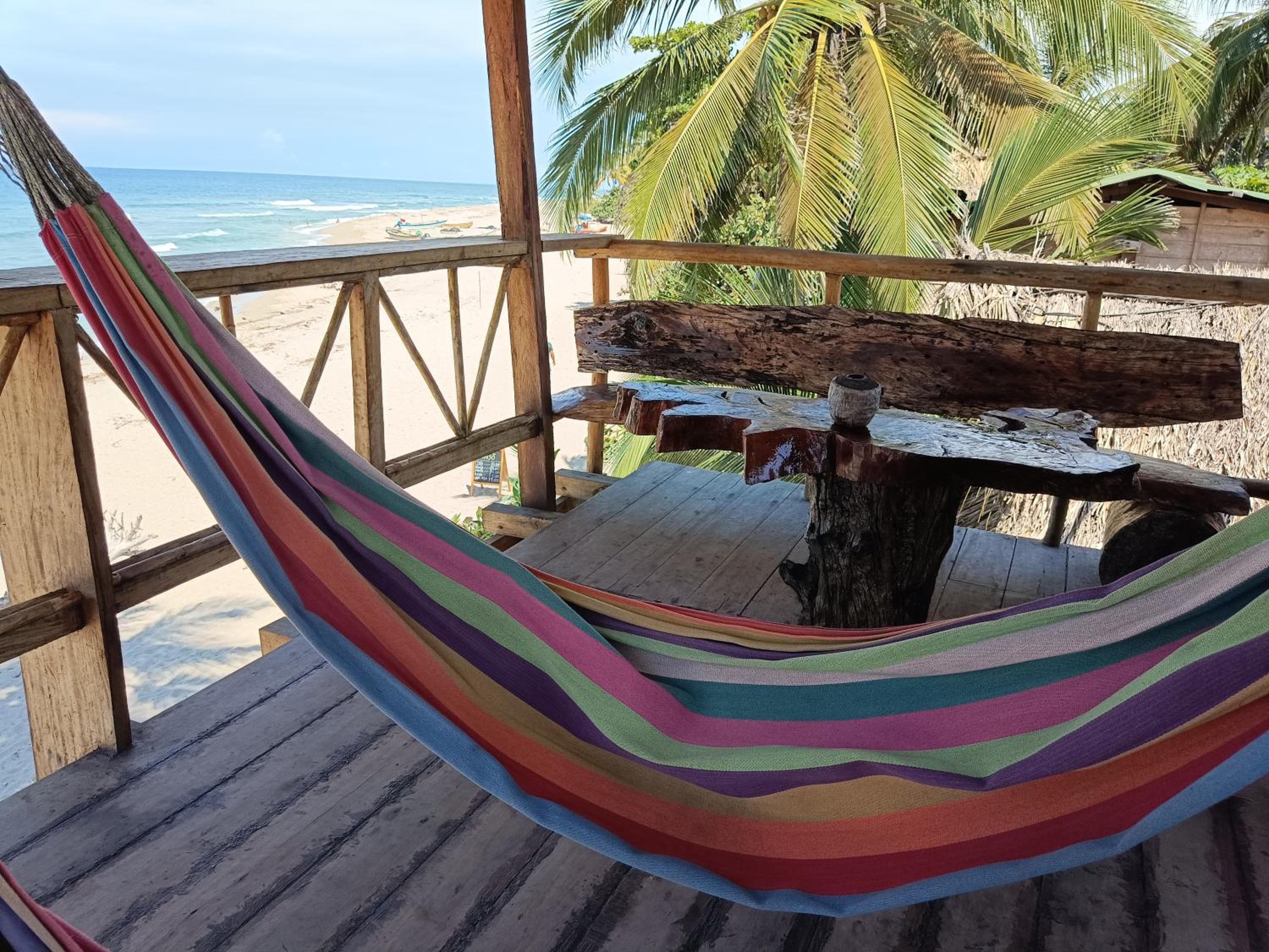 Location and hammocks on the terrace. Bed was comfortable