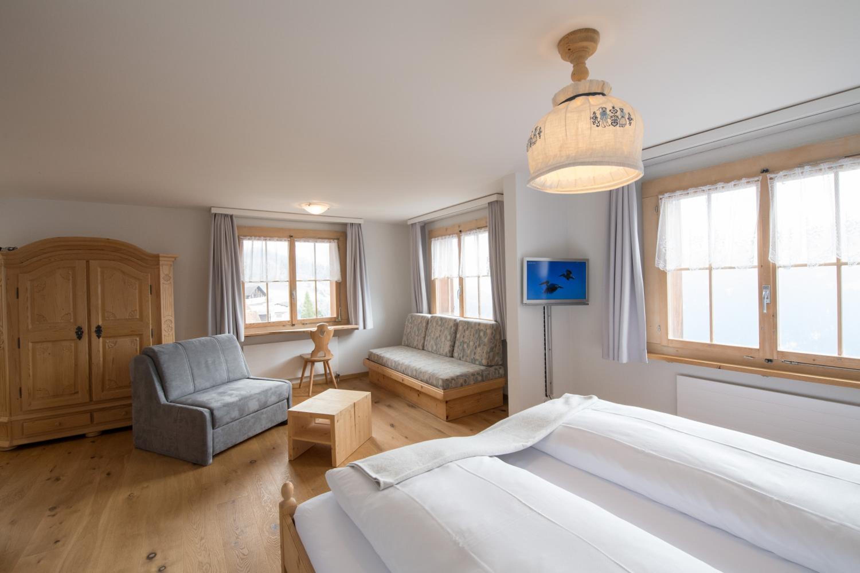 Nous avons passé un excellent séjour dans ce petit hôtel de haute alpe suisse. L’emplacement est parfait, entouré de superbes sentiers de randonnée idéals pour découvrir la région. Le bâtiment est magnifique, typique et plein de charme, avec une belle terrasse-balcon pour profiter du paysage.