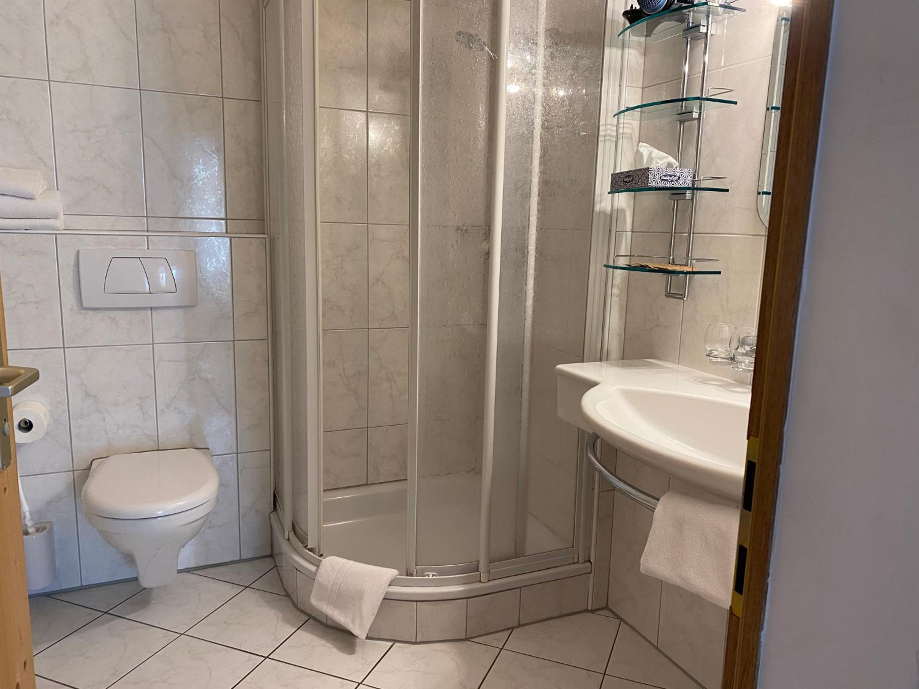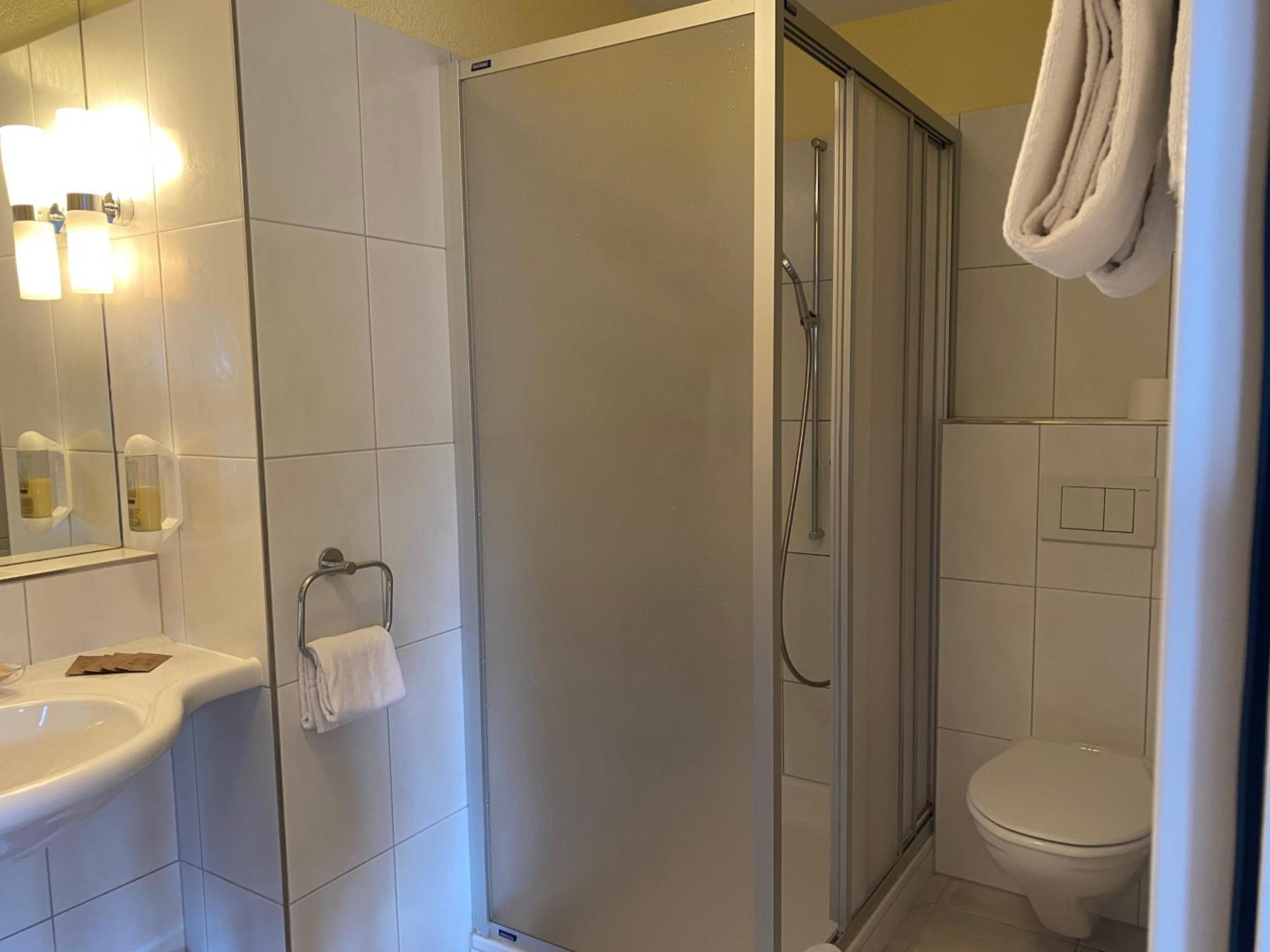 Es fehlte eine Tür oder zumindest ein Vorhang beim Dusche/WC Abteil