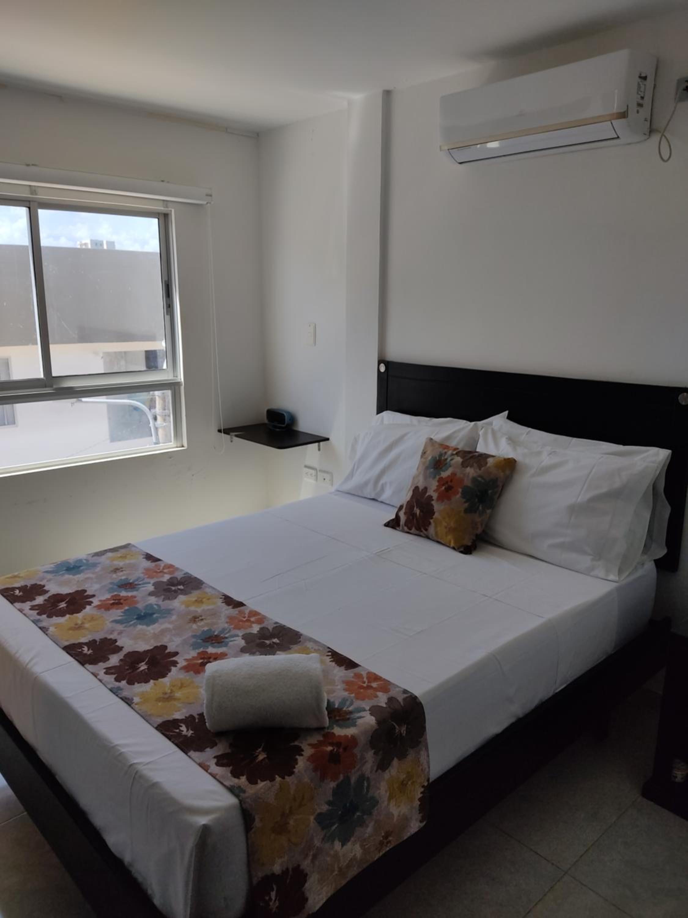 La habitación es muy básica en dotación. El baño pequeño, con extractor de ire muy ruidoso, la ducha es un tubo algo oxidado. La iluminación de la habitación es deficiente. No sirve el televisor. No hay una mesa auxiliar. Hay tapas eléctricas deterioradas. El tapete sucio. No hay restaurantes en el sector, solo comidas rápidas. La calle está en mal estado.