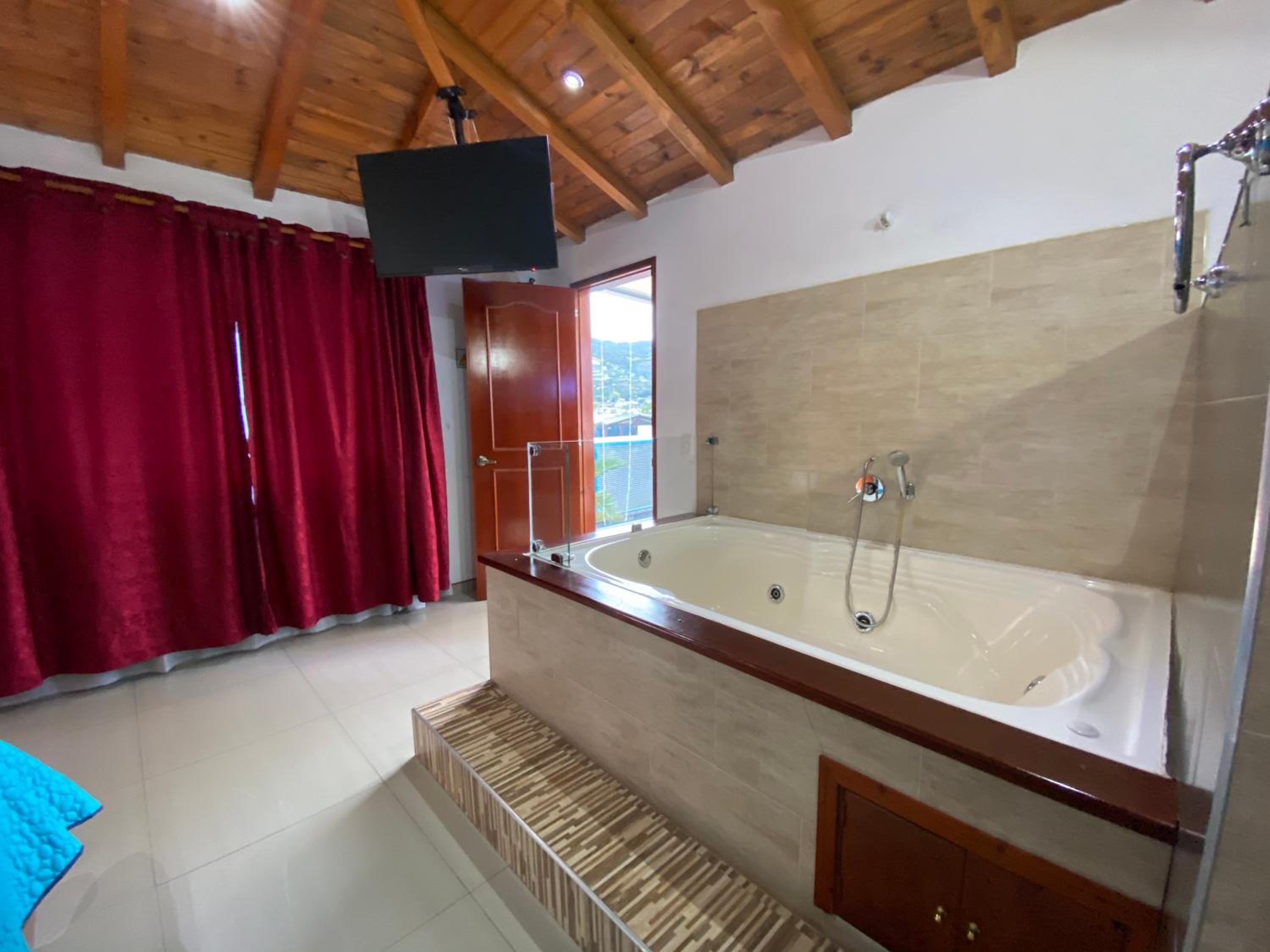 La falta de mantenimiento a las instalaciones, la piscina no se veía atractiva el agua, y en la habitación que de hecho era pequeña había un perchero que requiere mantenimiento, tiene algunas partes dañadas y la puerta que conecta con un balcón que no tiene ventilación tiene una cortina que daña la estética y genera una mala impresión, debería ser cambiada por otro tipo de elemento como una persiana o recubrimiento sintético.