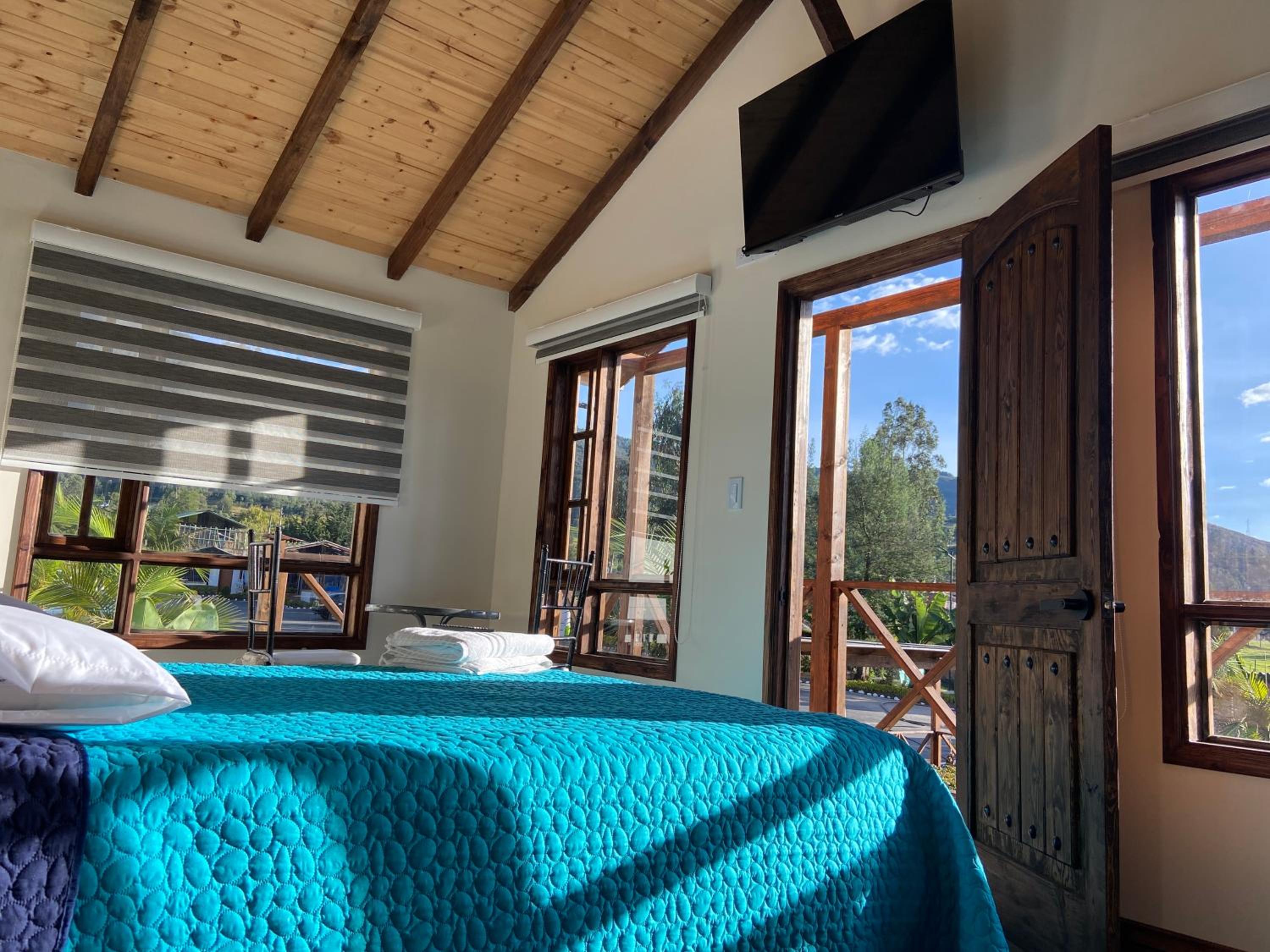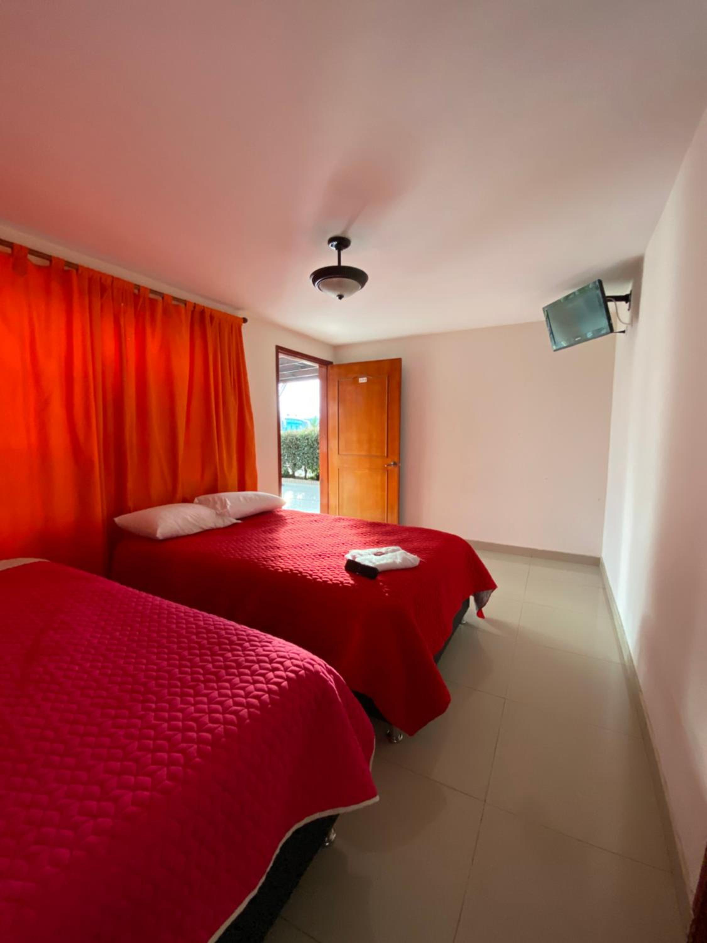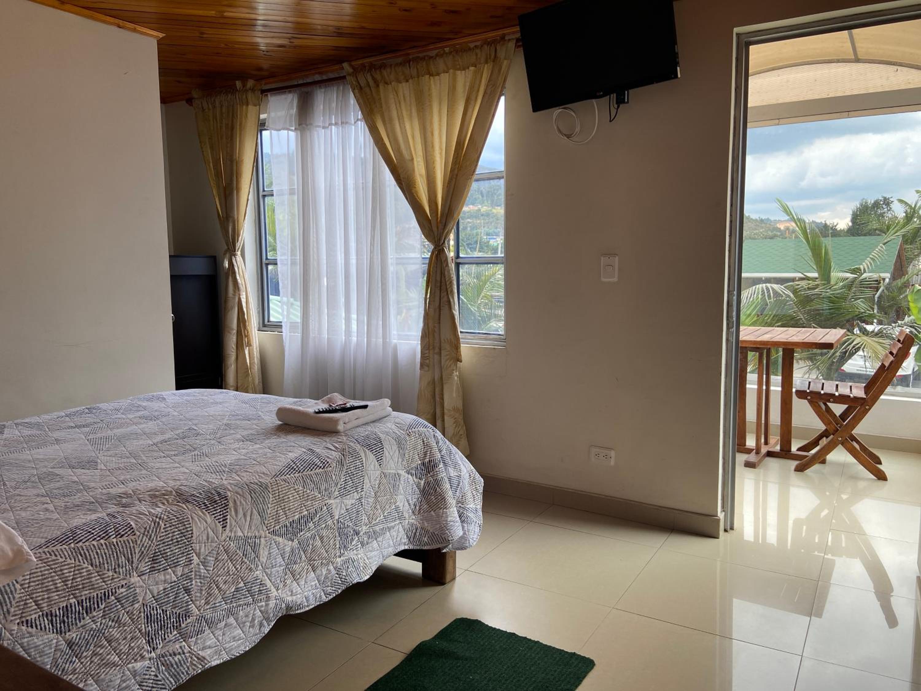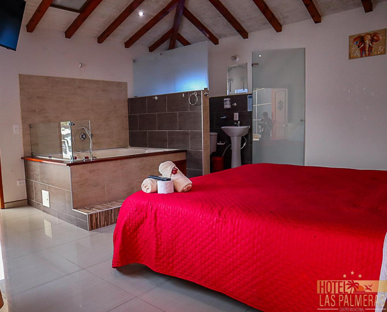 Each room at Hotel Las Palmeras Gachancipa features a private bathroom, some with balconies and pool views. Guests can also enjoy entertainment with flat-screen TVs, cable channels, and CD players in every unit.