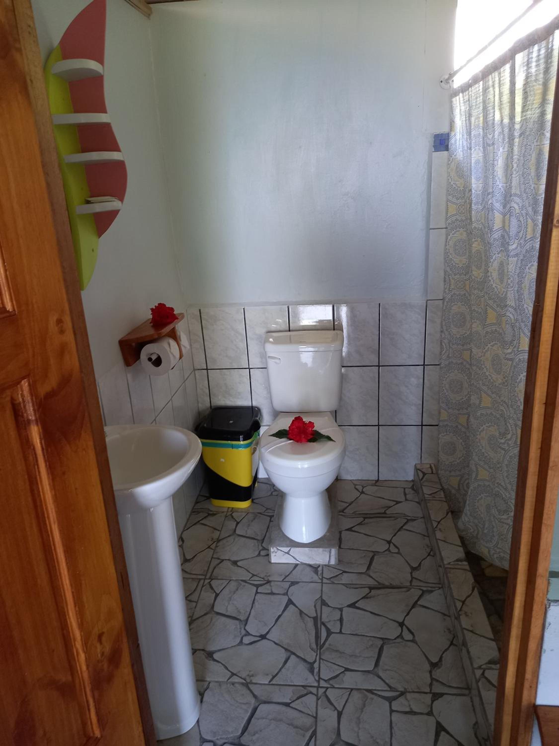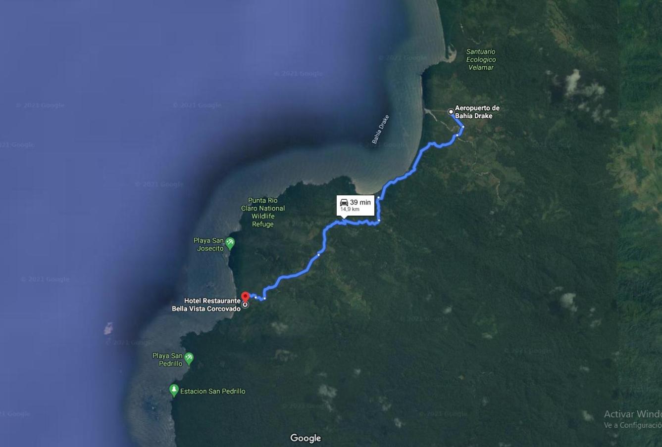 Arranged a shuttle pick up with the hotel from the Drake Bay Airport. It was 65us dollars, very expensive in my opinion. We were picked up in and old beat up pick up truck with garbage in the back and very messy in the cab. The lady was kind but not in any hurry to bring us to our destination. She made a stop for us to pick up snacks then she stopped 3x's, one for her to meet with someone ( tour guide company) for 15 minutes which we feel was planned to hook us up with a tour in the area. I assume she makes a commission. I was told by the hotel to book our tours when we arrive but its best to book your tours in advance online, its safer and you get the tour you want. Then she stopped for fruit and then again in the river crossing to cool off and change her shirt. After a very long travel day we really just wanted to get to our destination. The Seaview room is very small, no where to hang up clothes or wet towels and the beds were hard as a rock, shared bathroom and showers. The hotel is located on an extremely steep, rough road that leads to the beach with no form of transport to get up and down. This was very unpleasant and we had to make sure we planned to stay down by the beach until the sundown as it was way to steep and hot to go back and forth from the hotel to the beach. With only one restaurant at the hotel for food it was a very limited menu and very expensive for what you get. The food was very bland. Thankfully we found the only other restaurant alternative (Life to Life - Sunset beach restaurant) on the beach that was slightly better and they allowed us to hangout in the hammocks in the shade, and were very kind to us. It would have been nice to have a small communal fridge for personal beverages at Bella Vista for the guests. Upon discussing with other guests staying at the hotel we felt like it was just a cash grab as they know you have no other choices available. I would not recommend this place and would stay in Drake Bay next time.