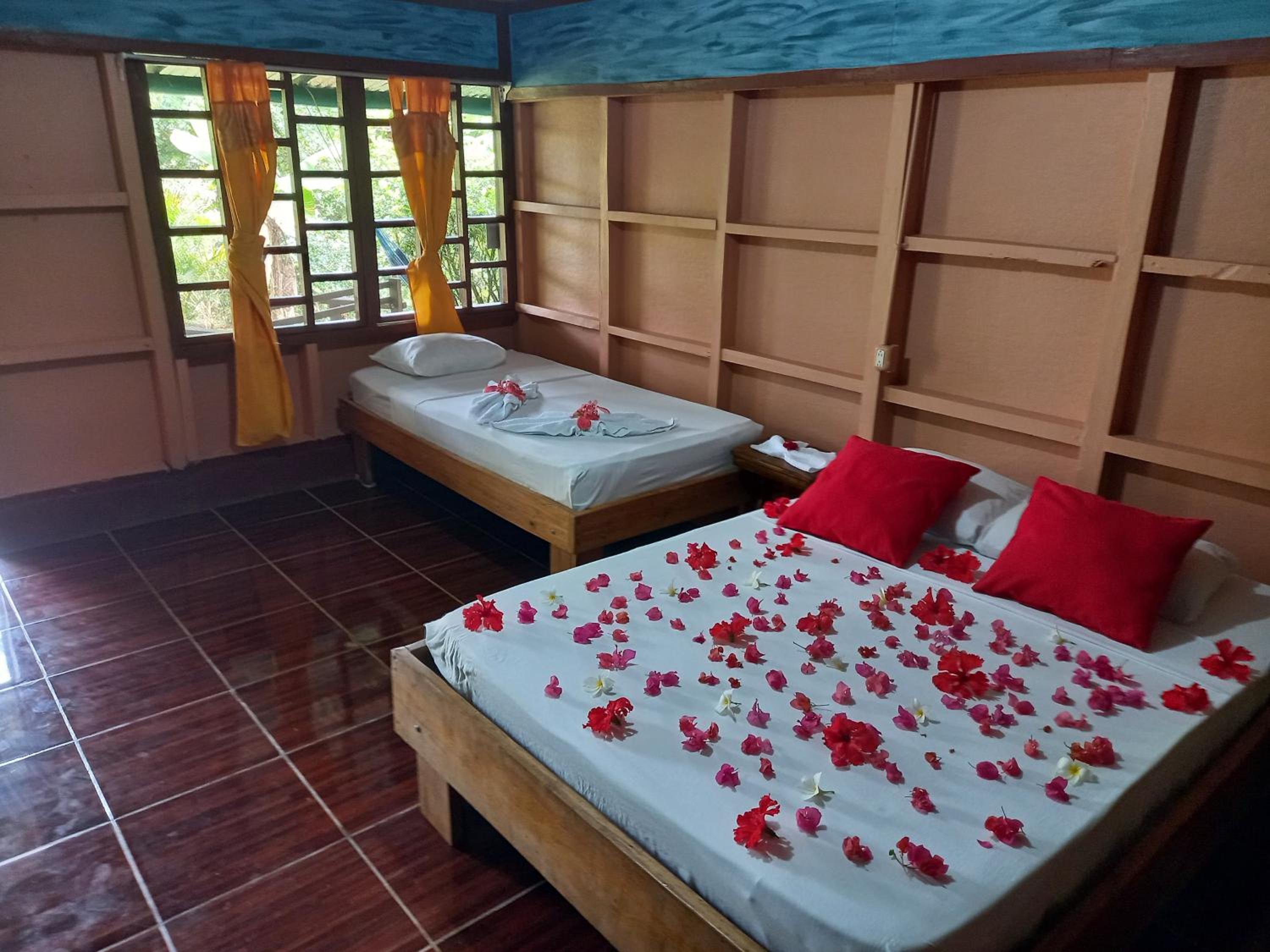 We were put in the back rooms behind the kitchen. Instead of listening to the sound of nature we were mostly listening to the sound of staffs' electrónic devices and TV from early morning until the evening. When asked to change rooms, we were turned down. Truly disappointing. Also during the 5 nights we were there the rooms were never once cleaned.