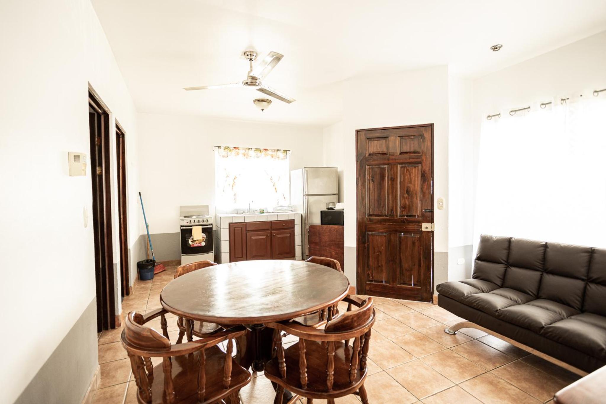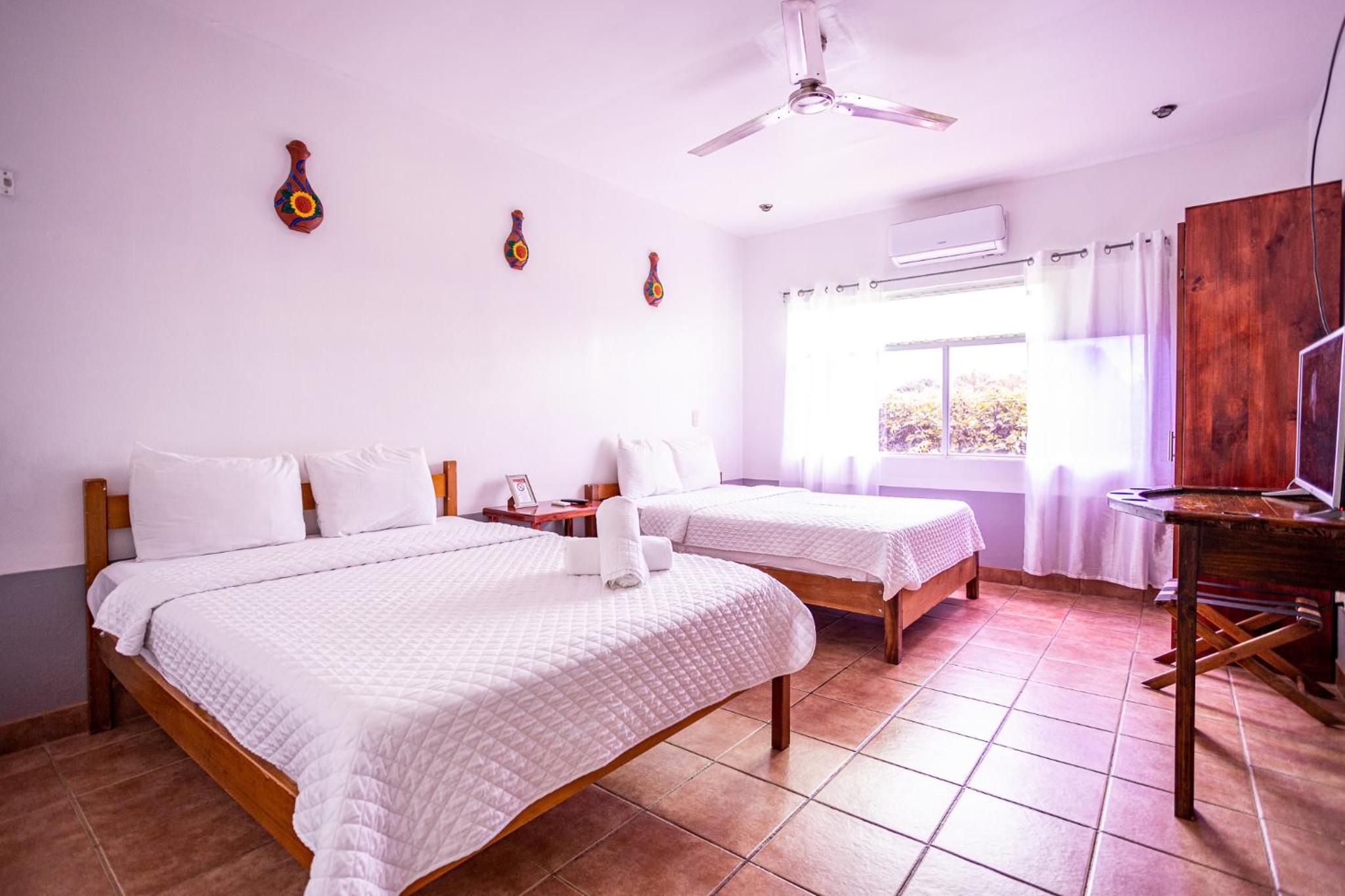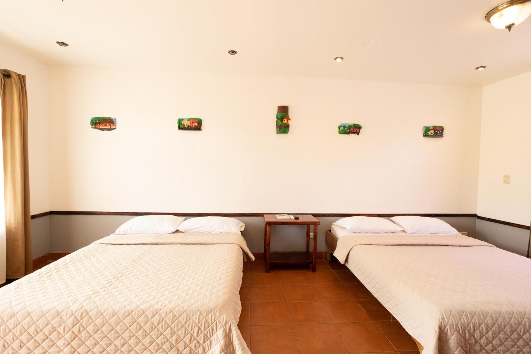 La habitación íbamos 4 personas adultas, muy pequeña, no había mesita para poner comida, refrigeradora para tener agua fría, los enchufes en mal estado, nos trajeron una refri pero el enchufe malo se nos inundó la habitación,
