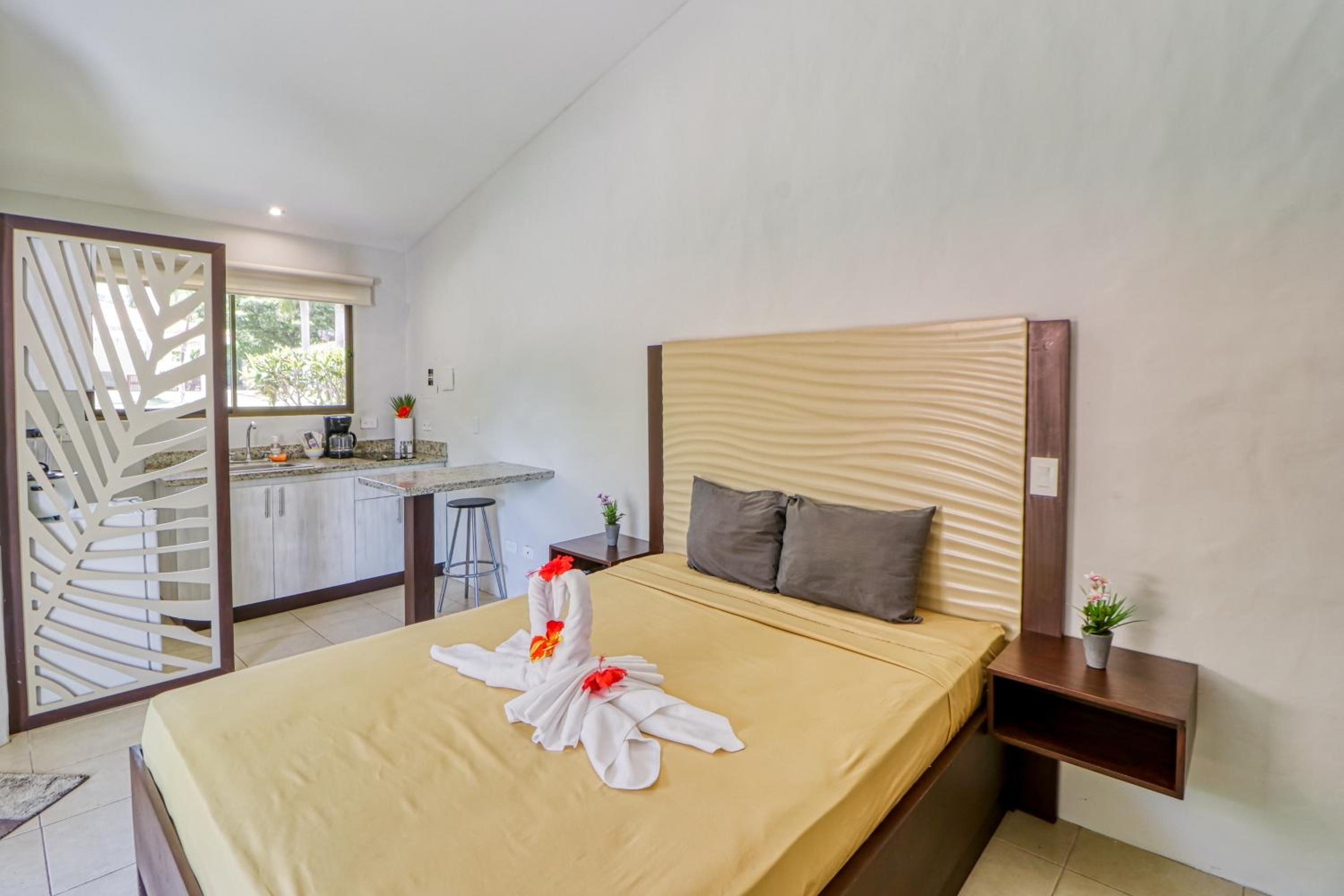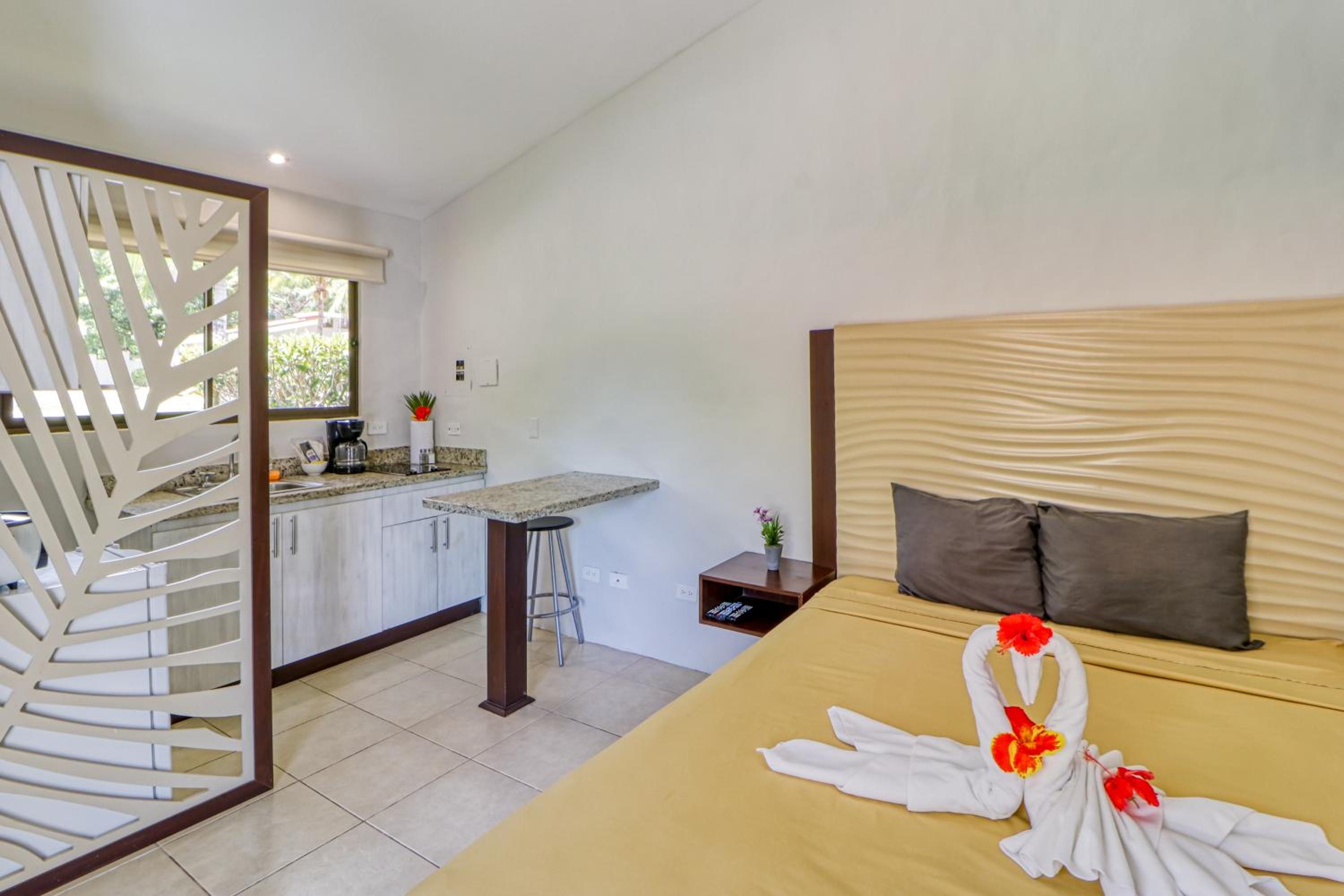 Each non-smoking room features a patio with refreshing pool views. Stay connected with free WiFi, unwind in the comfortable seating area, and prepare meals in the convenient kitchenette.