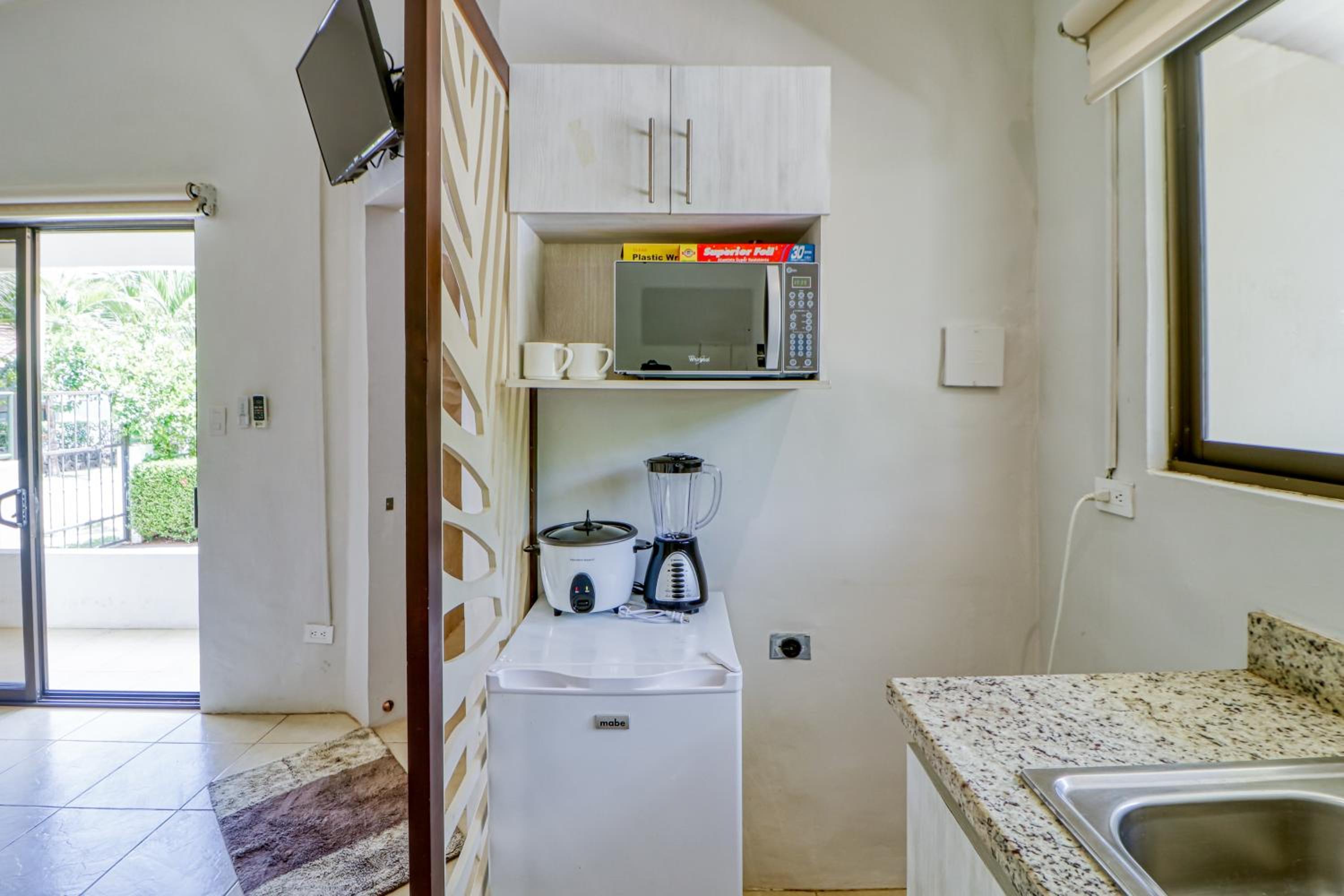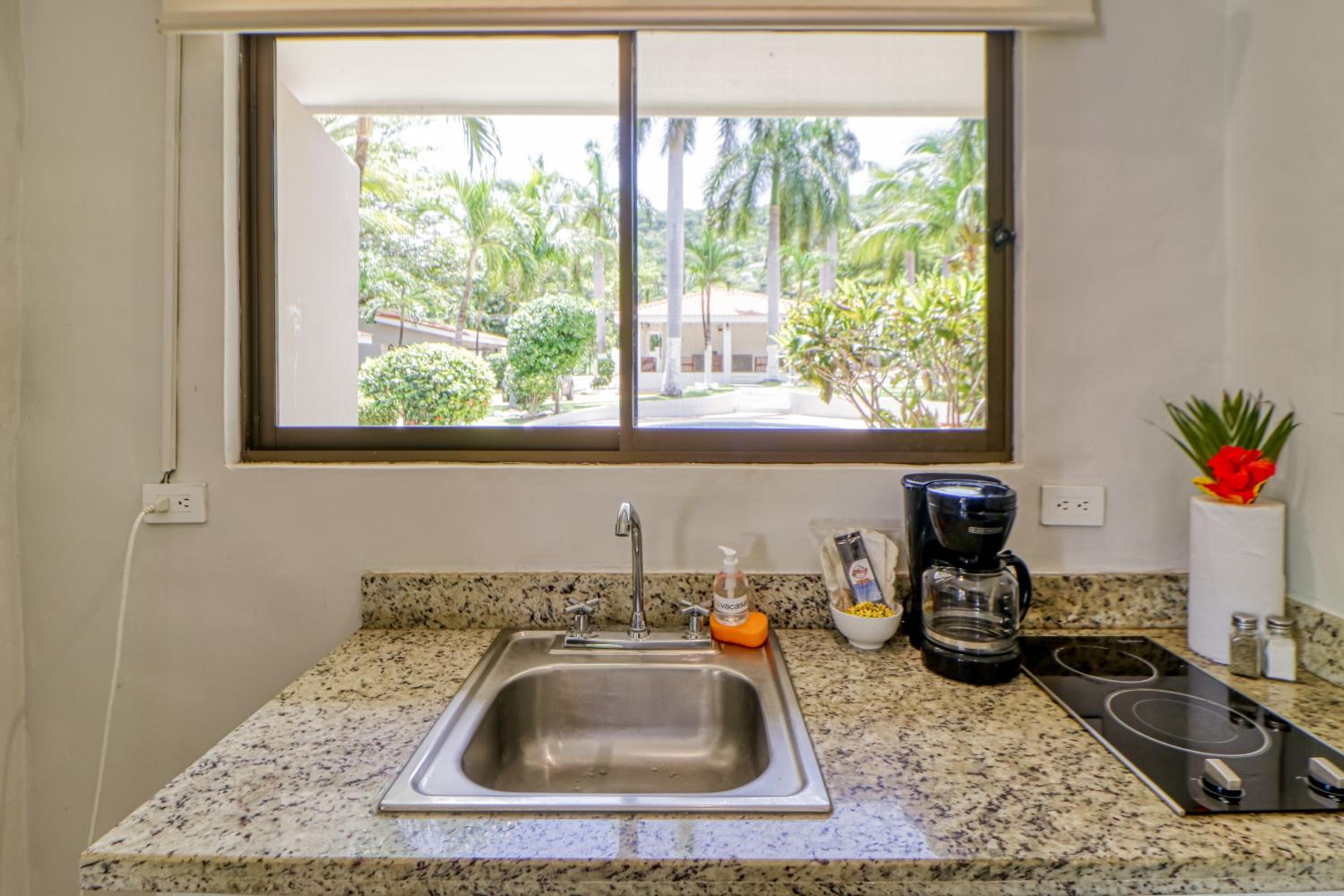 Nighttime was generally quiet, so I slept well and the air conditioning worked fine. The glass windows & doors all closed properly to keep out mosquitoes, etc. day or night. The pool is a short walk from the unit and there is an outdoor shower which you are asked to use before swimming. It only works if the tap/potable water is running in rental unit #6. The fridge, microwave and coffee maker in the kitchenette worked fine. I didn't use the other appliances, so I can't comment on them. There is an instant hot water appliance under the sink, so ample hot water for showers and washing dishes (if the tap water is running).