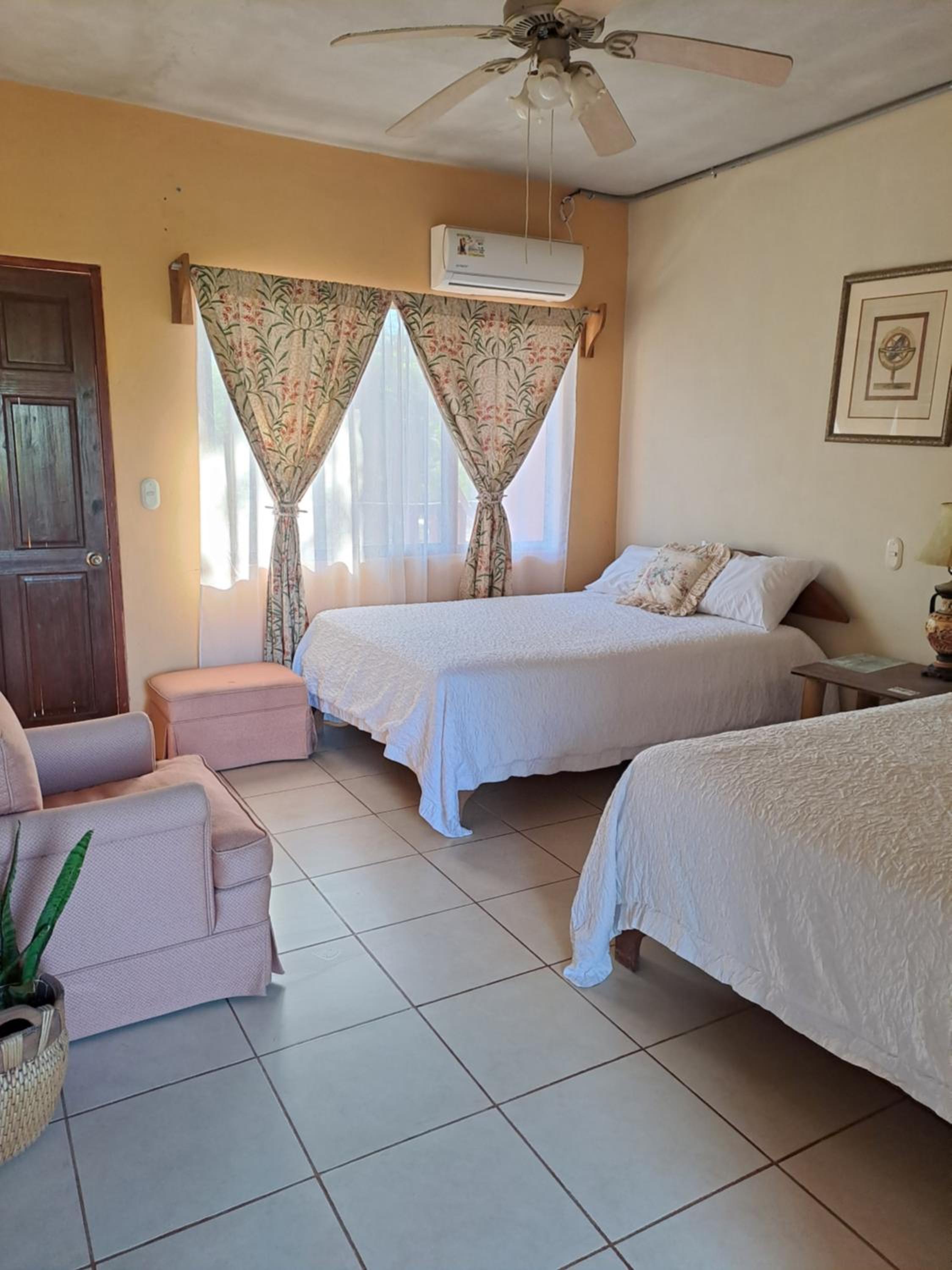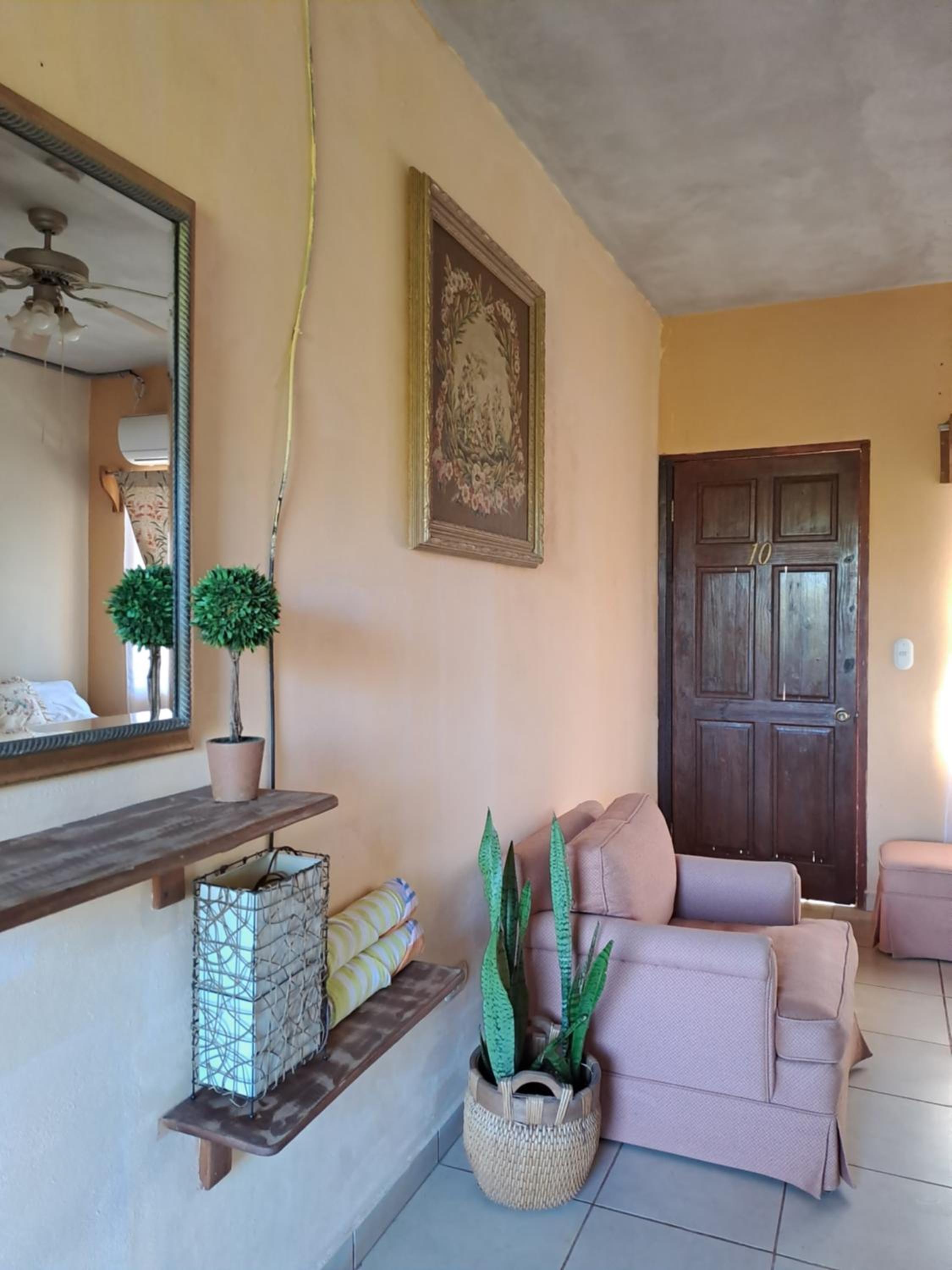 The hotel appeared to be in a state of ongoing renovation. The staff was friendly, welcoming and accommodating. Once I arrived to the room I noticed that the door did not offer much in the way of security. Although the door had a locking feature, the fit of the door left a sizable gap along the frame. The room had both A/C and a ceiling fan. There was no closet in the room, but a dresser was provided for storage. The bathroom was clean however, the water temperature left me chilly as the maximum level of hot was less than lukewarm. The restaurant food was good and adequately priced. The hotel was within walking distance to the beach. If you're looking for a reasonably priced, clean property with a great staff, consider the Hotel Georgi in Playa Junquillal.