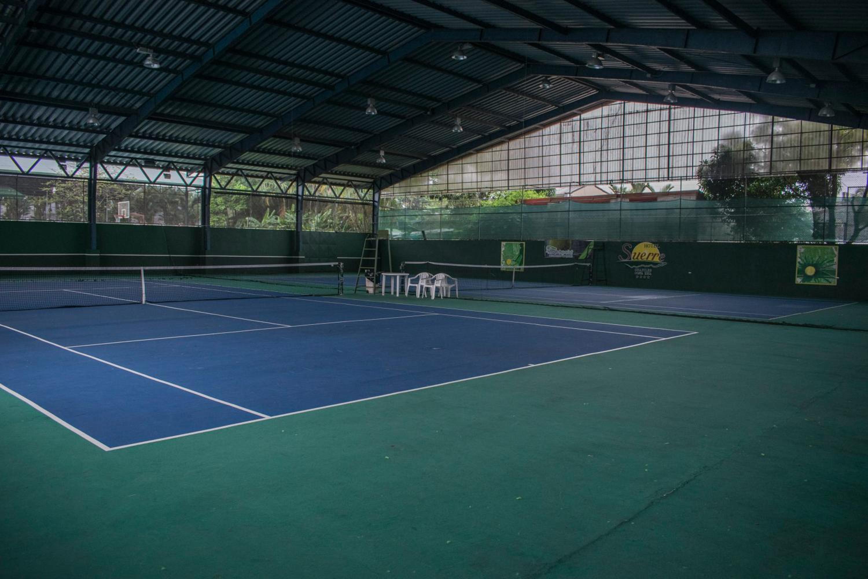 Hotel Suerre boasts an inviting outdoor swimming pool and tennis court for guests to enjoy during their stay. Whether you prefer a refreshing dip or a friendly match, relaxation and recreation are just steps away.