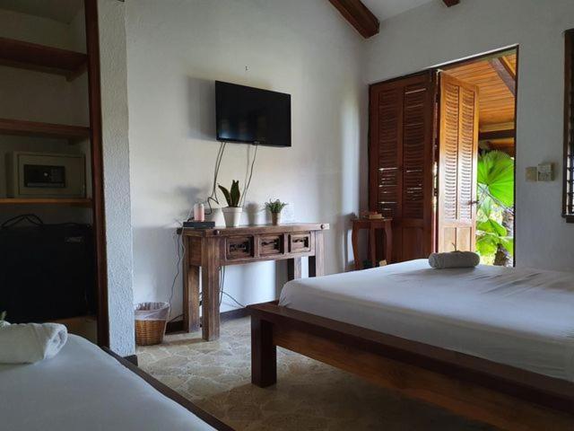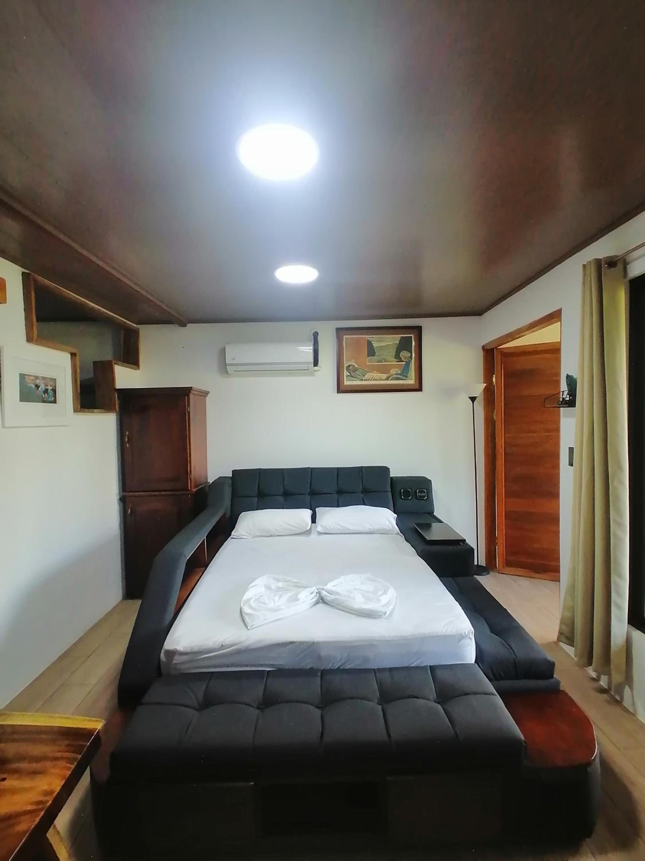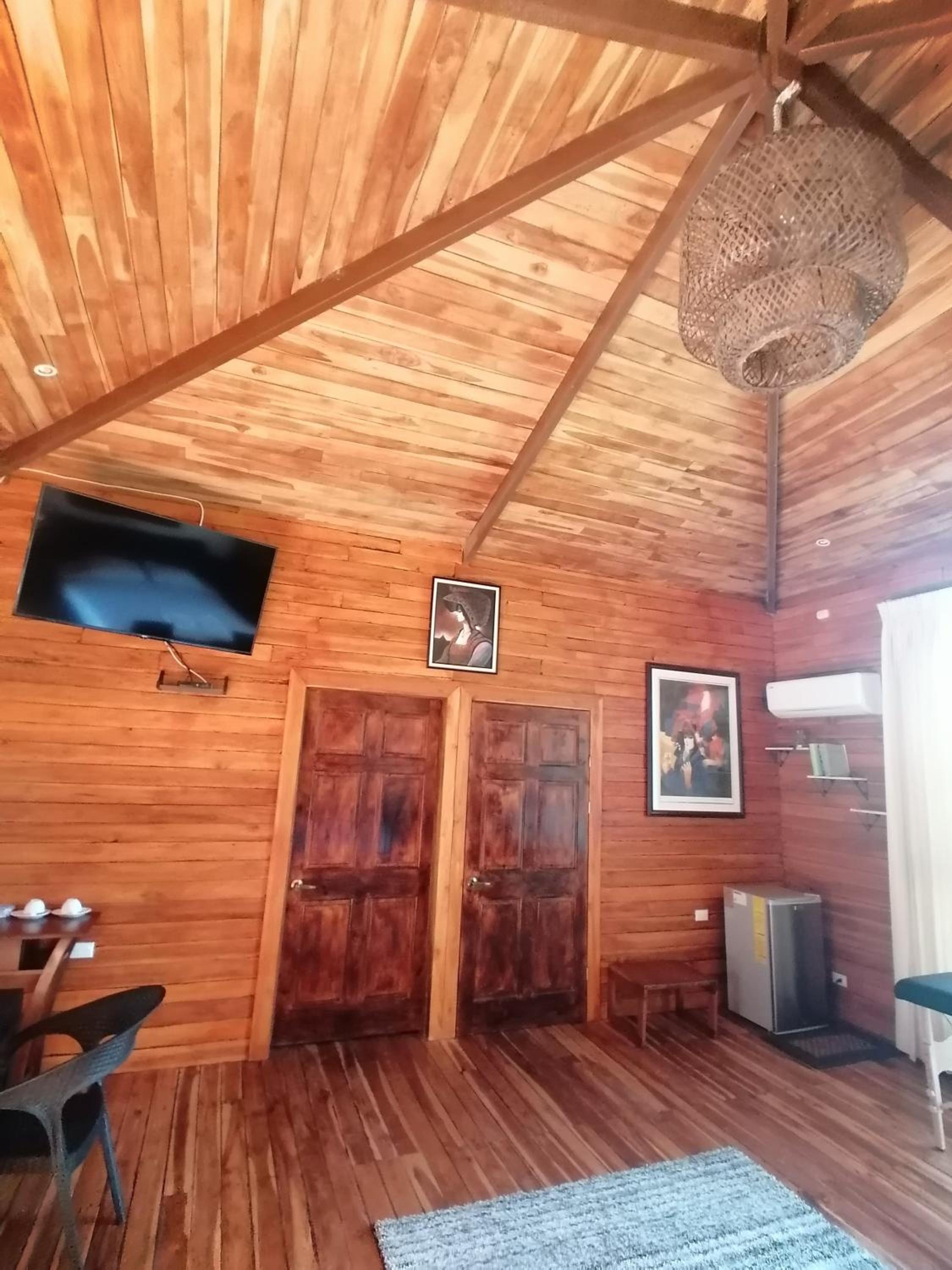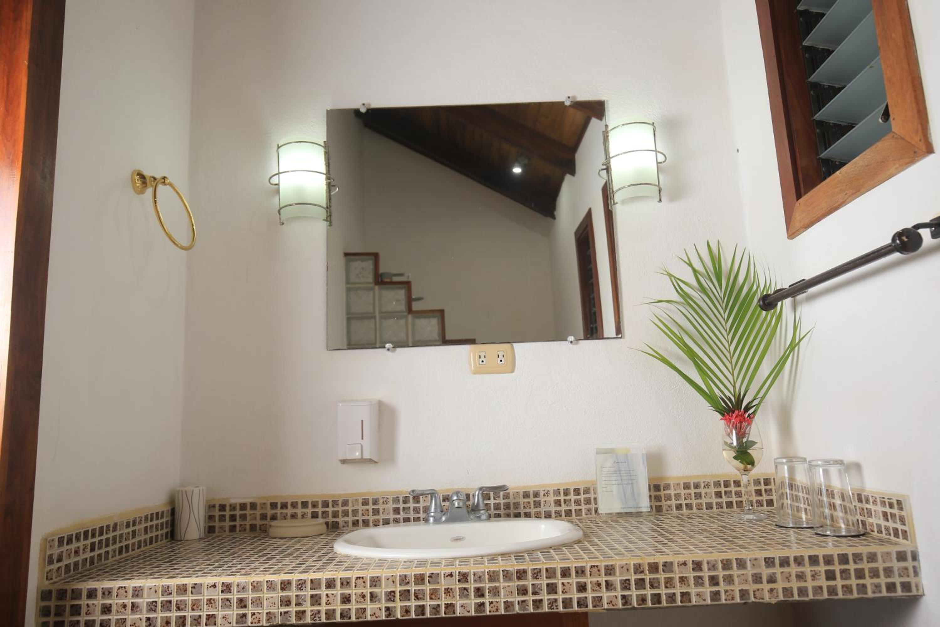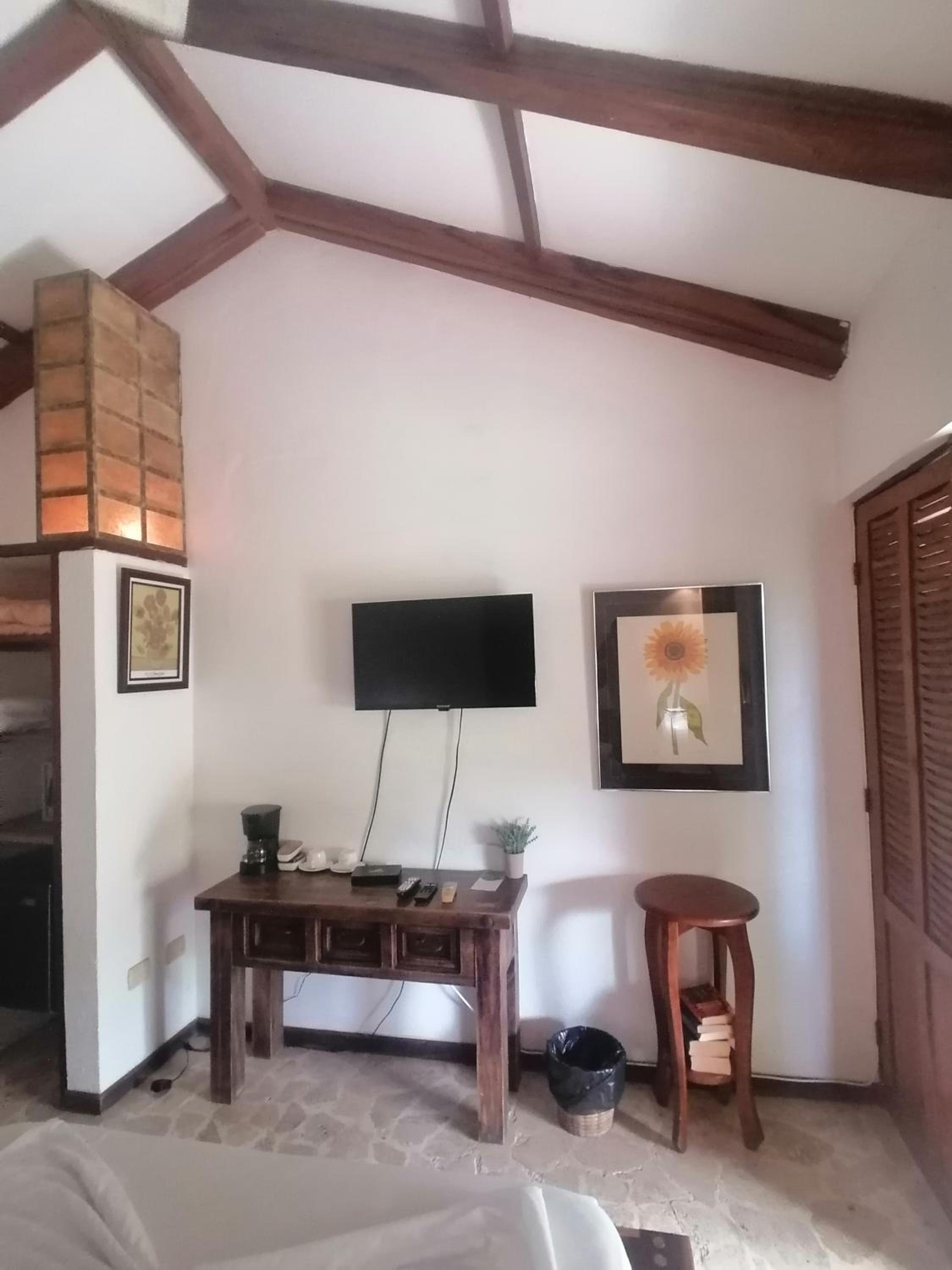 Habitación pequeña, baño poco privado, luz quemada en el baño, nos faltaron ganchos para tender ropa, también tuvimos que solicitar lámpara xq no tenía nuestra habitación y era MUY oscura. Las camas con colchones muy suaves, lo que dificultó el descanso. Solo la cama extra individual tenía un colchón mejor para dormir. Piscina muy pequeña, distinta a lo que se percibe en las fotos. Solo tres opciones para el desayuno y sirven muy poco, el pinto muy malo, simple, huevo casi sin sabor y el servicio de la persona que atiende pésimo (durante los tres días, tuvimos que recordarle algo de lo que pedíamos, xq lo olvidaba o no lo traía a la mesa: café, jugo o alguna salsa). Un día tuve que pedirle un huevo tres veces, hasta que lo llevó y no de buena gana. Sería bueno que consideren un cambio, para que este servicio no afecte la experiencia de los clientes, quienes pagamos para tener la mejor experiencia. Por otra parte, la administradora Irene fue super amable y atenta en brindar opciones y recomendaciones para mejorar nuestra experiencia de viaje. Siempre con una linda sonrisa al atender. Ojalá todos fueran como ella en el servicio al cliente.