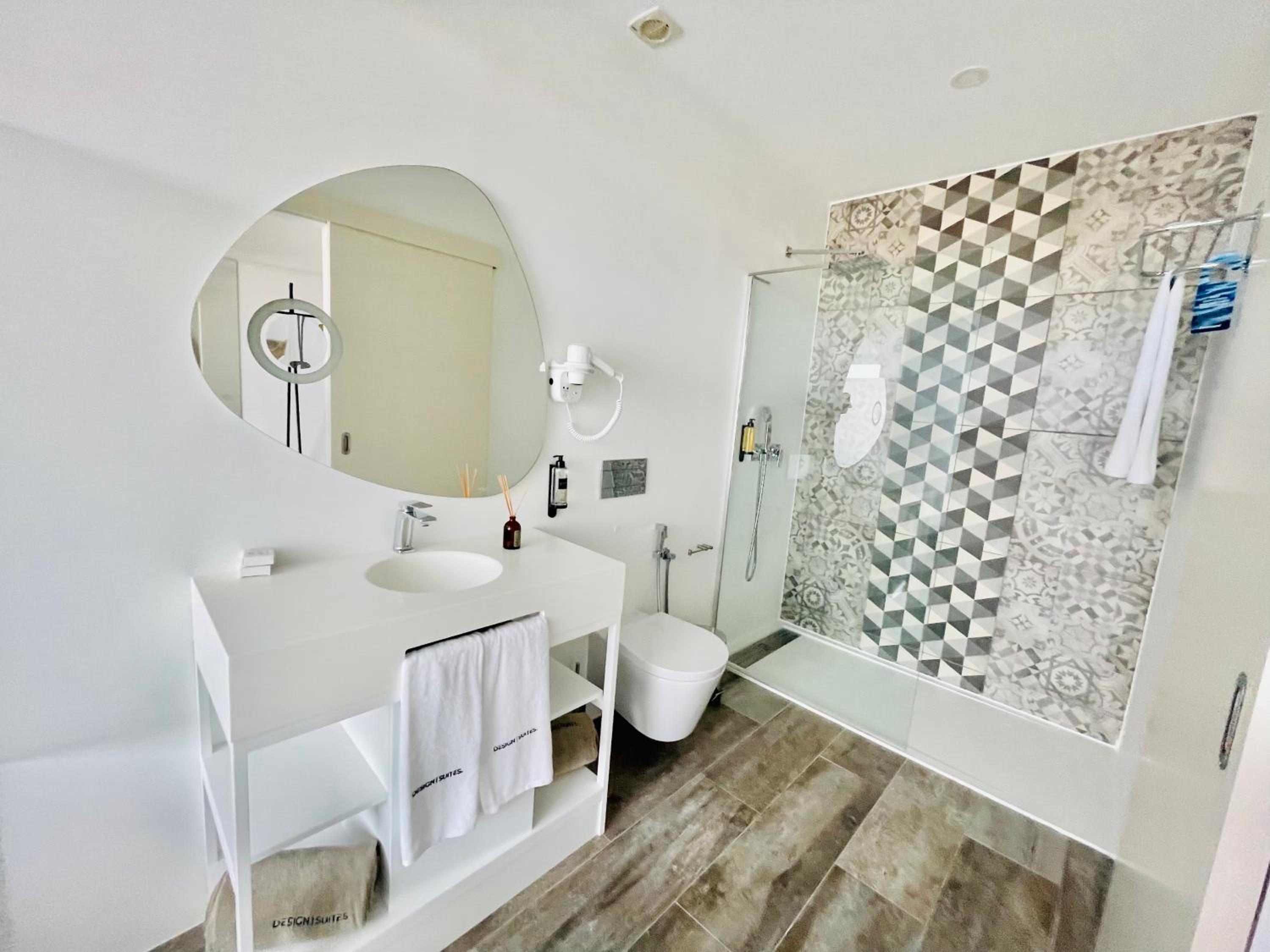 DESIGN SUITES Boutique Hotel - Adults Only offers a range of upscale amenities including an outdoor swimming pool, terrace, and a stylish restaurant and bar. The air-conditioned rooms are elegantly furnished with modern conveniences such as a coffee machine, minibar, and flat-screen TV, ensuring a comfortable stay for guests.