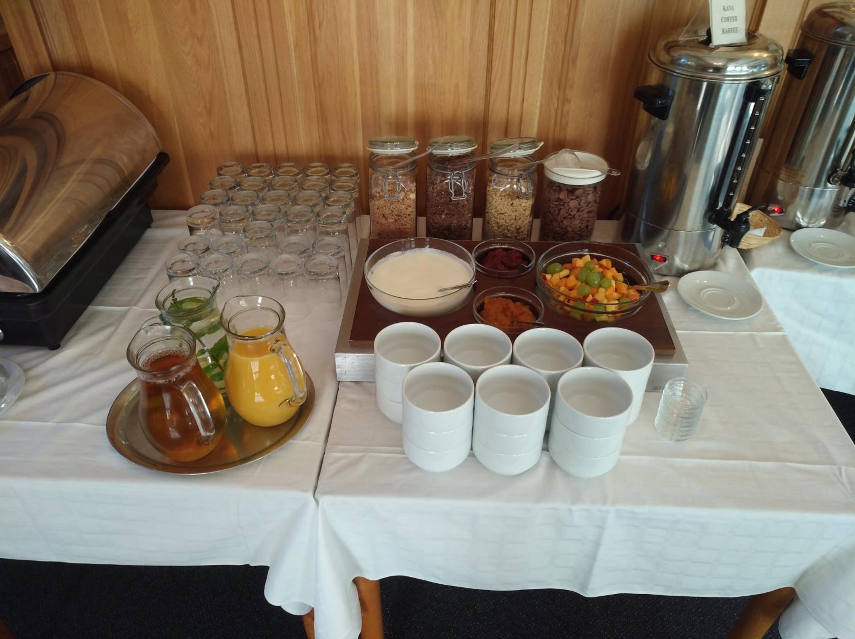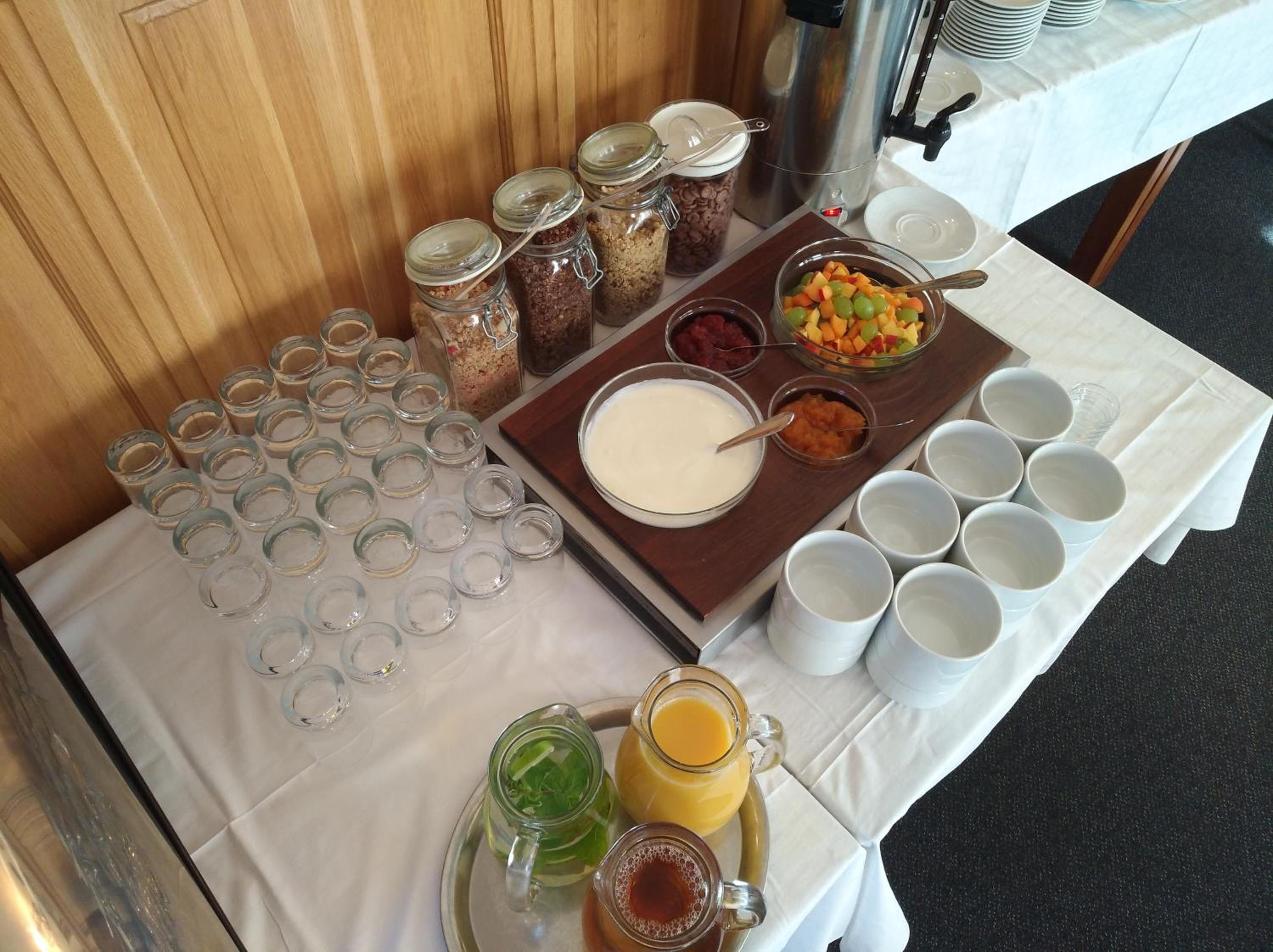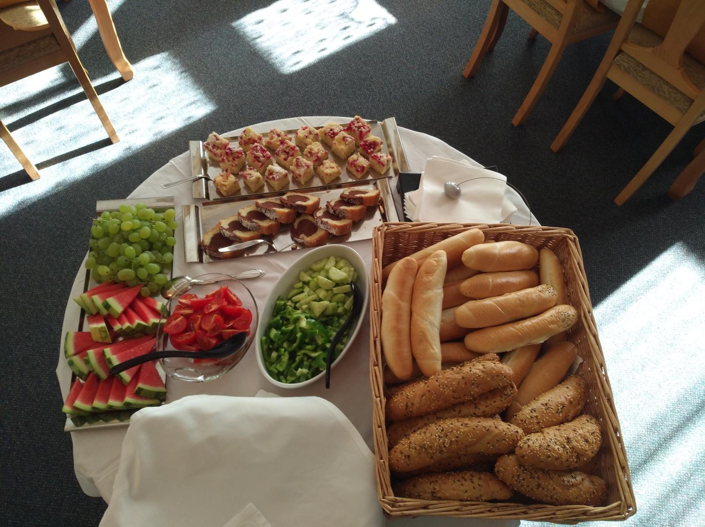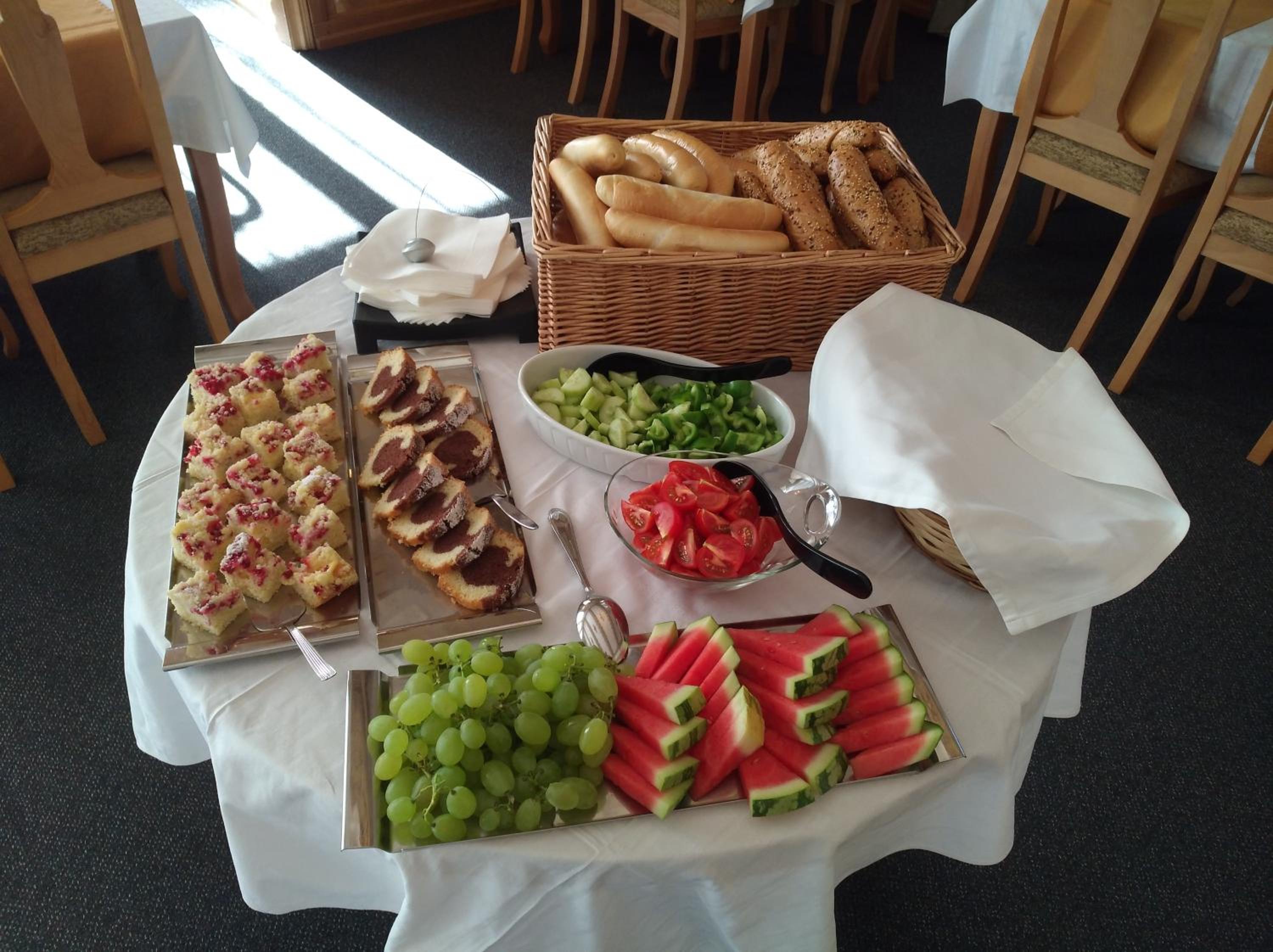 Das Frühsrücksbuffett ist reichhaltig und für jedem etwas dabei.