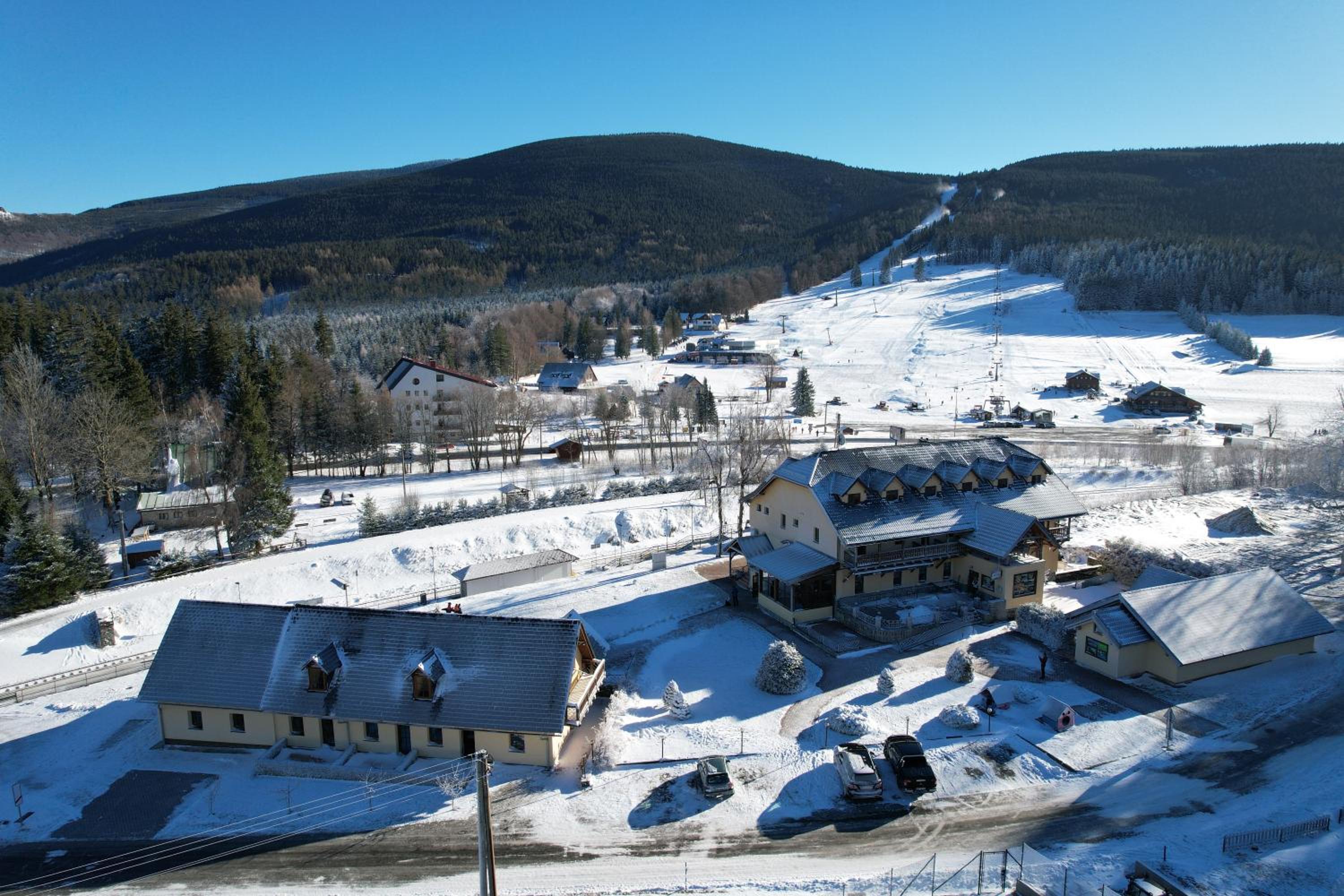 Escape to Chata Ramzovské sedlo for a relaxing mountain getaway. Enjoy our indoor pool and kids' club, perfect for families looking to unwind and have some fun.