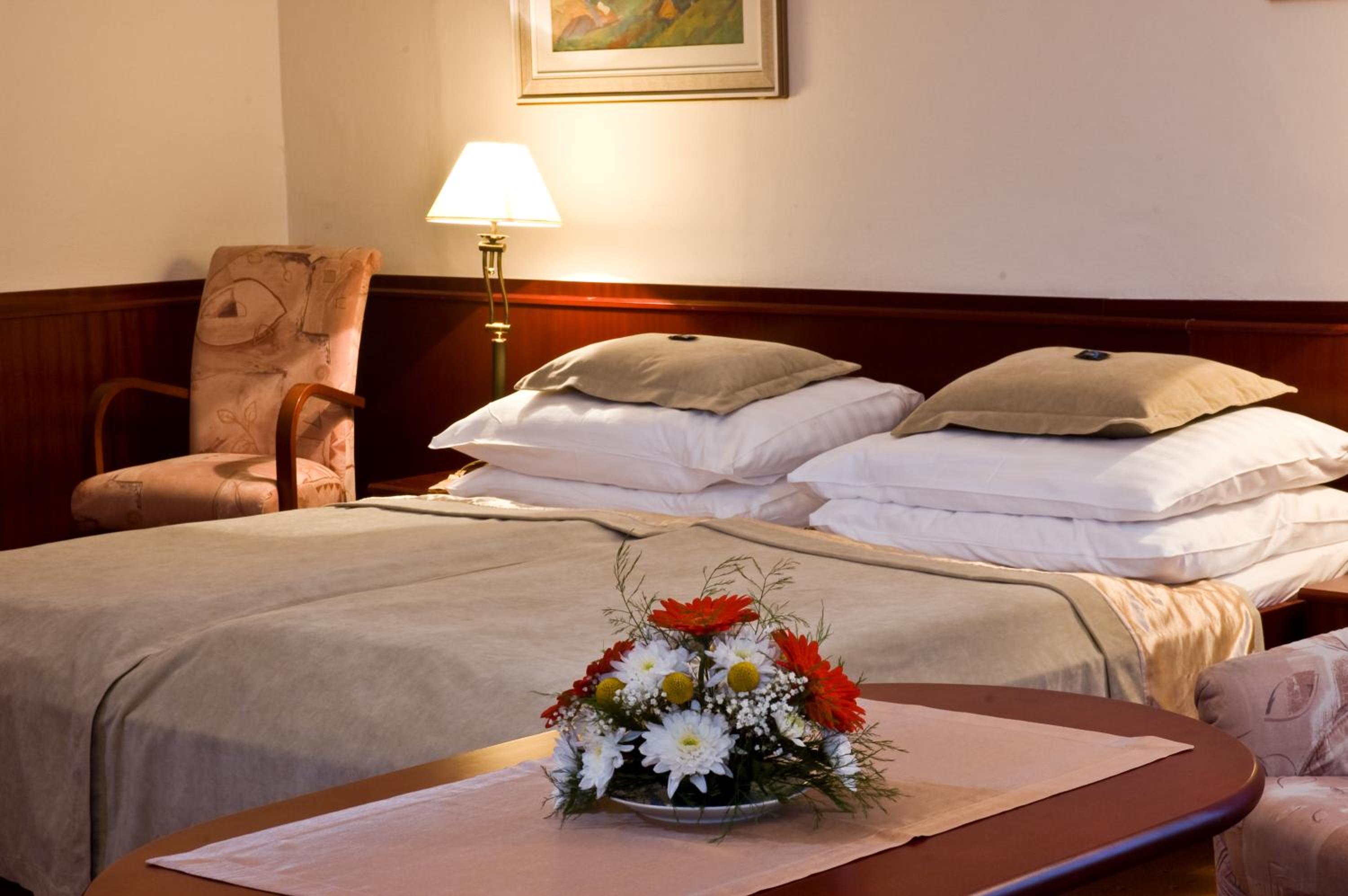 The rooms at Monti Spa provide a comfortable retreat with views of the park or quiet street. Each room is equipped with modern conveniences like a TV, minibar, and a luxurious bathroom. The on-site restaurant serves a delectable daily buffet featuring a variety of hot and cold dishes, with special diet menus available upon request.