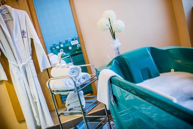 Guests can indulge in a range of spa treatments and relaxation procedures, including sauna sessions, solarium visits, and beauty treatments. For those seeking to stay active, there is a modern fitness room. With the train station nearby and various attractions within easy reach, Monti Spa is the perfect destination for a rejuvenating getaway.