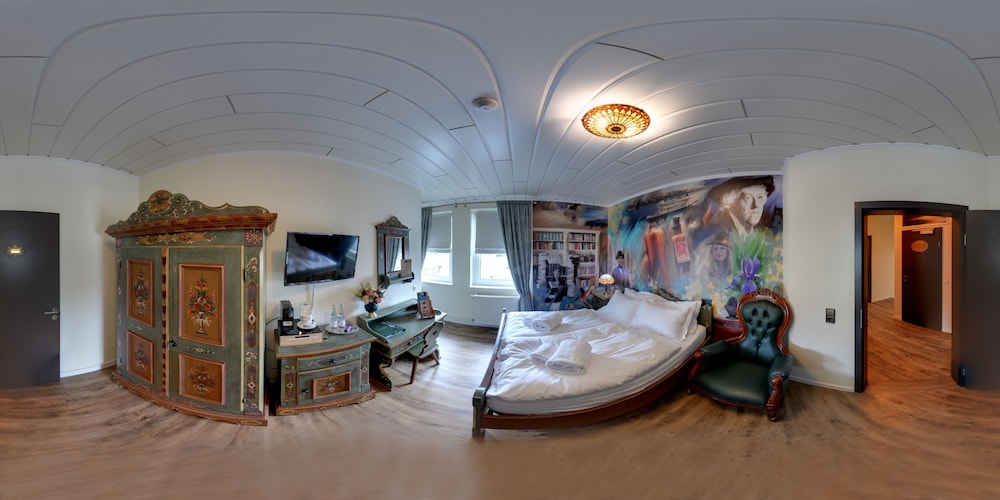 Muss man mal gesehen haben, übernachten aber nicht unbedingt. Wir waren von Montag bis Dienstag dort. Kein Wort in der Beschreibung, das dann alles geschlossen ist. Keine Rezeption, keine Bar, garnichts. Kein Mensch vor Ort und alles zu. Zimmerzugang mit Code per WhatsApp bekommen. Hatten das James Bond Zimmer. Unerträgliche Hitze im Zimmer. Fenster zur Südseite und keine Rollläden. Frühstück für 20 Euro fanden wir überteuert. Macht dann mit dem Zimmerpreis 160 Euro. Dafür gibt es auch echte 4 Sterne Hotels direkt am Rhein.