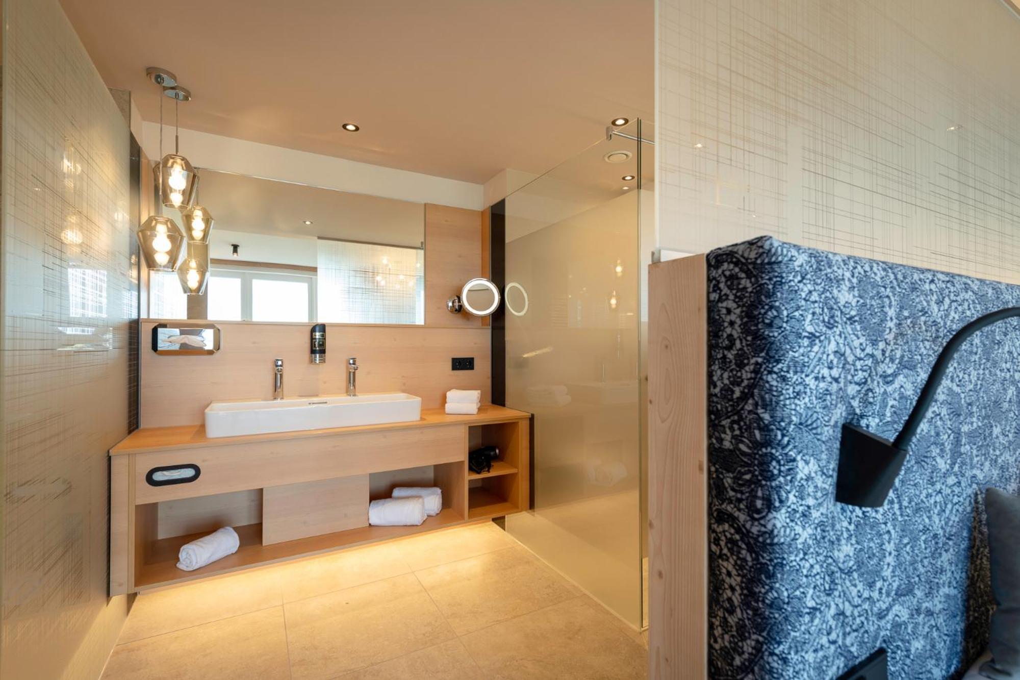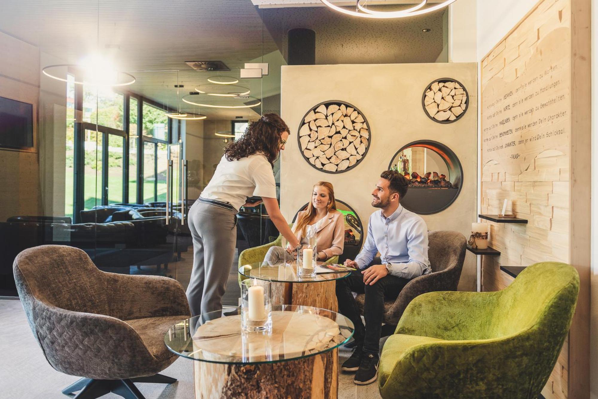 Sehr angenehme Atmosphäre, modernes ansprechendes Design ohne Überladen zu sein, tolles Frühstück mit großer Vielfalt und hochwertigen Produkten, hausgemachte Kuchen und Torten (außergewöhnlich & lecker), das Personal lacht auch untereinander, ist höflich, herzlich und mit Gespür für Nähe und Distanz :-), der Wellnessbereich bietet alles was das Herz begehrt und der Granderwasser Aussenpool ist genial, ein Wellnesshotel indem man auch Rückzug und Ruhe findet (was vielleicht manchmal eine gewisse innere Reife braucht, um den Sinn zu verstehen, denn es ist alles eine Spur reduzierter im positiven Sinn (z.B. Deko, Aktivangebote ...) , nicht alles ist mit Musik durchflutet, alles in allem, sehr angenehm.