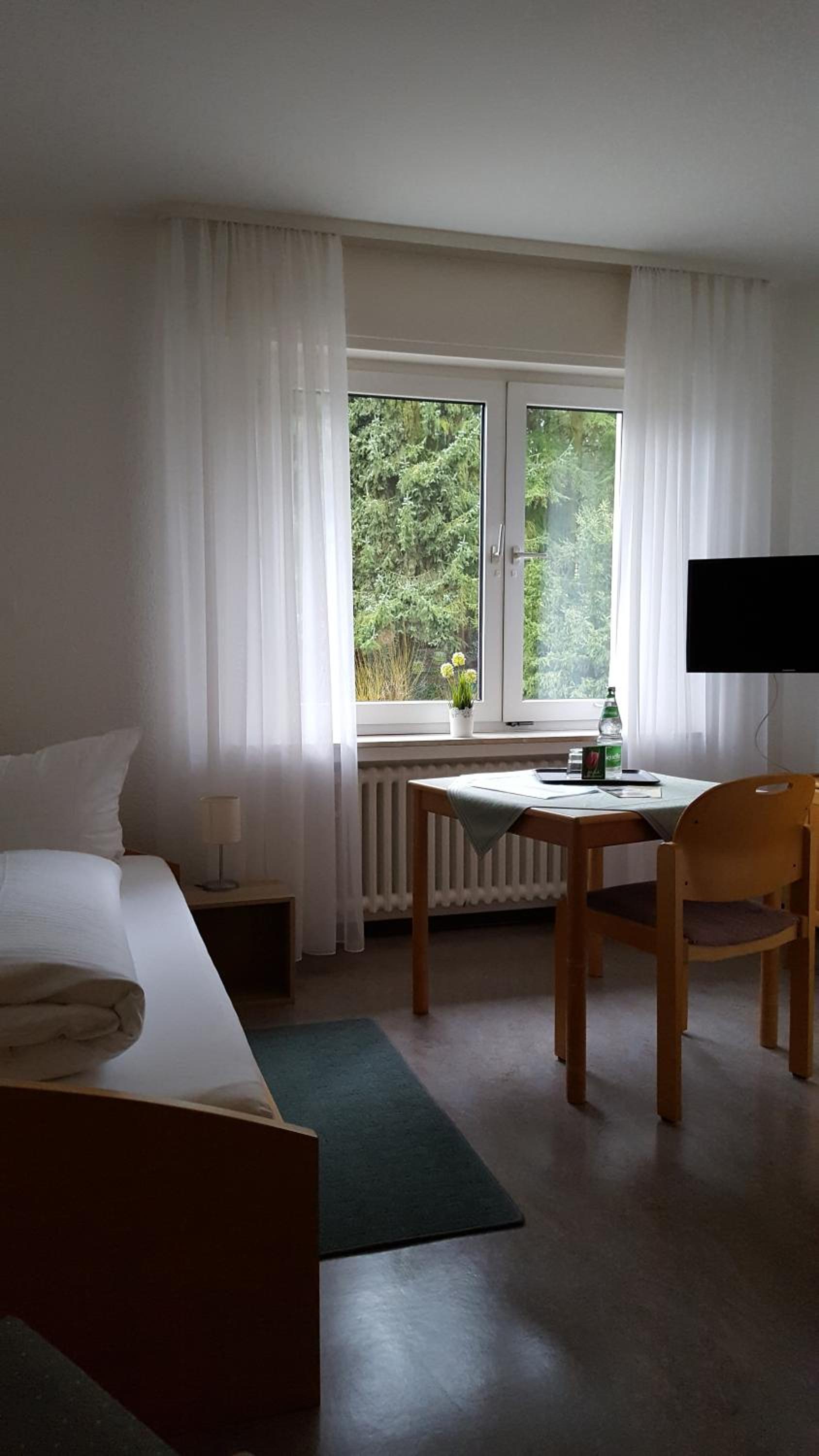 Die Schwestern vor Ort sehr freundlich. Zimmer für den Preis in Ordnung und sauber. Bequemes Bett. Lage sehr ruhig und gemütlich.