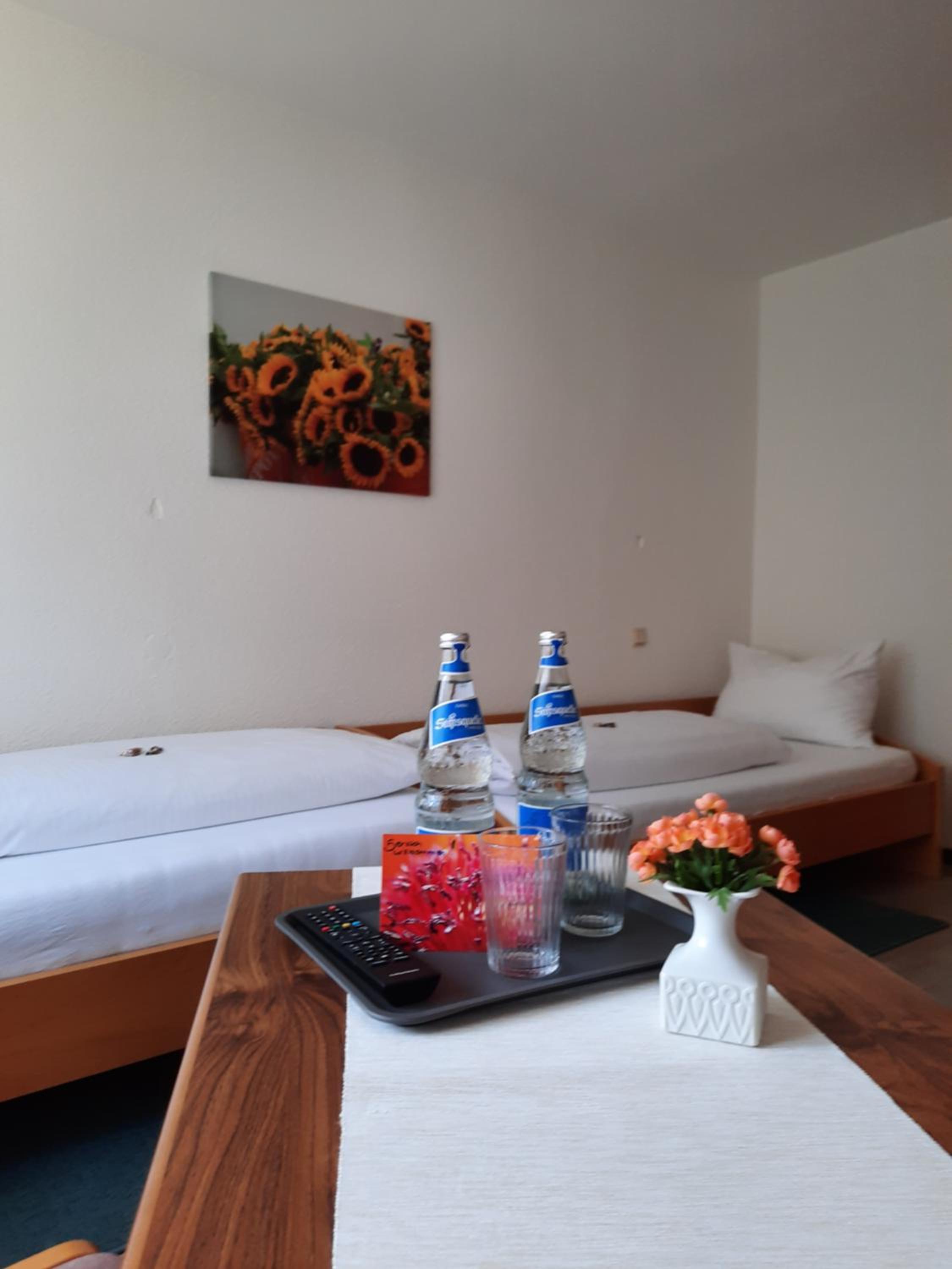 Sehr schöne und ruhige Lage, Zimmer zweckmäßig eingerichtet, alles sauber, Mineralwasser auf dem Tisch, unkompliziertes Ein- und Auschecken.
