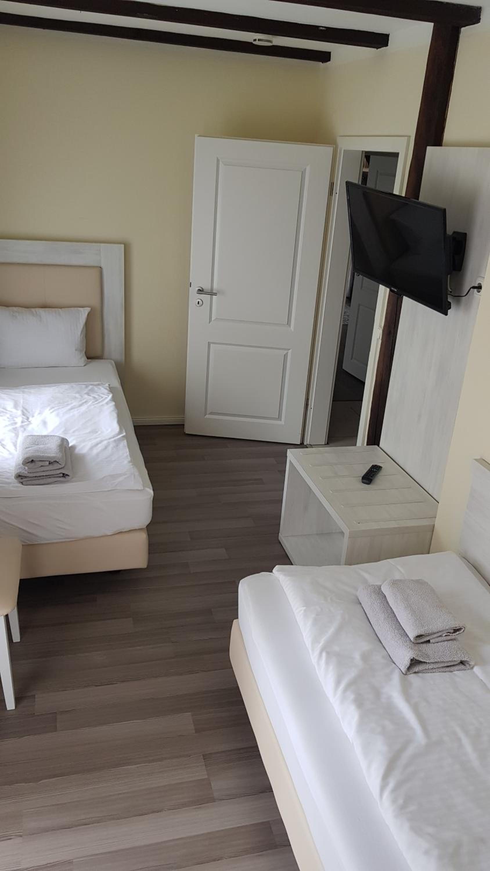 Sehr gute Matratze. Alles im Zimmer neu renoviert und sehr sauber. Viel Platz. Das Gepäck konnte man direkt aus dem Auto durchs Fenster ins Zimmer laden.