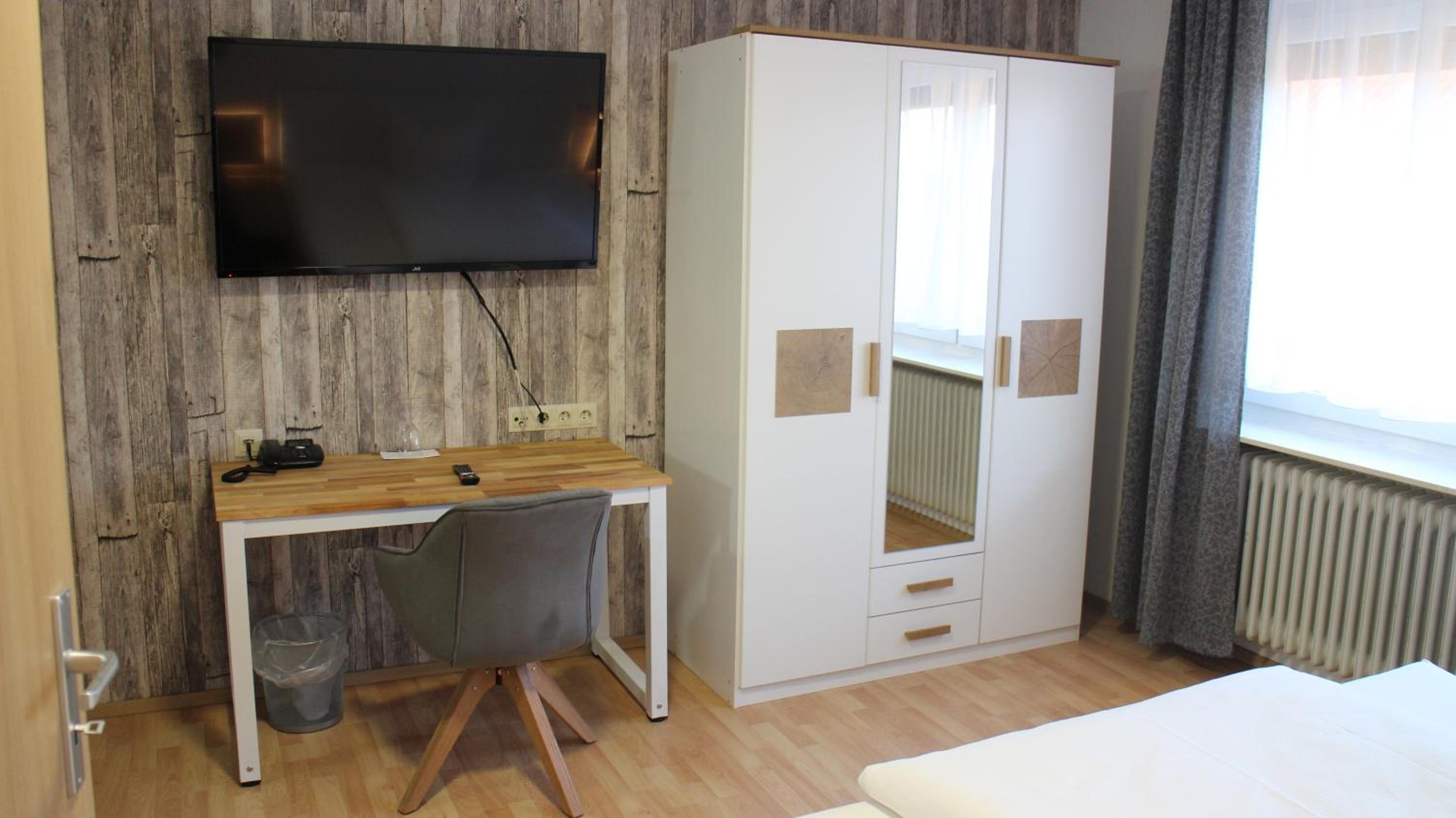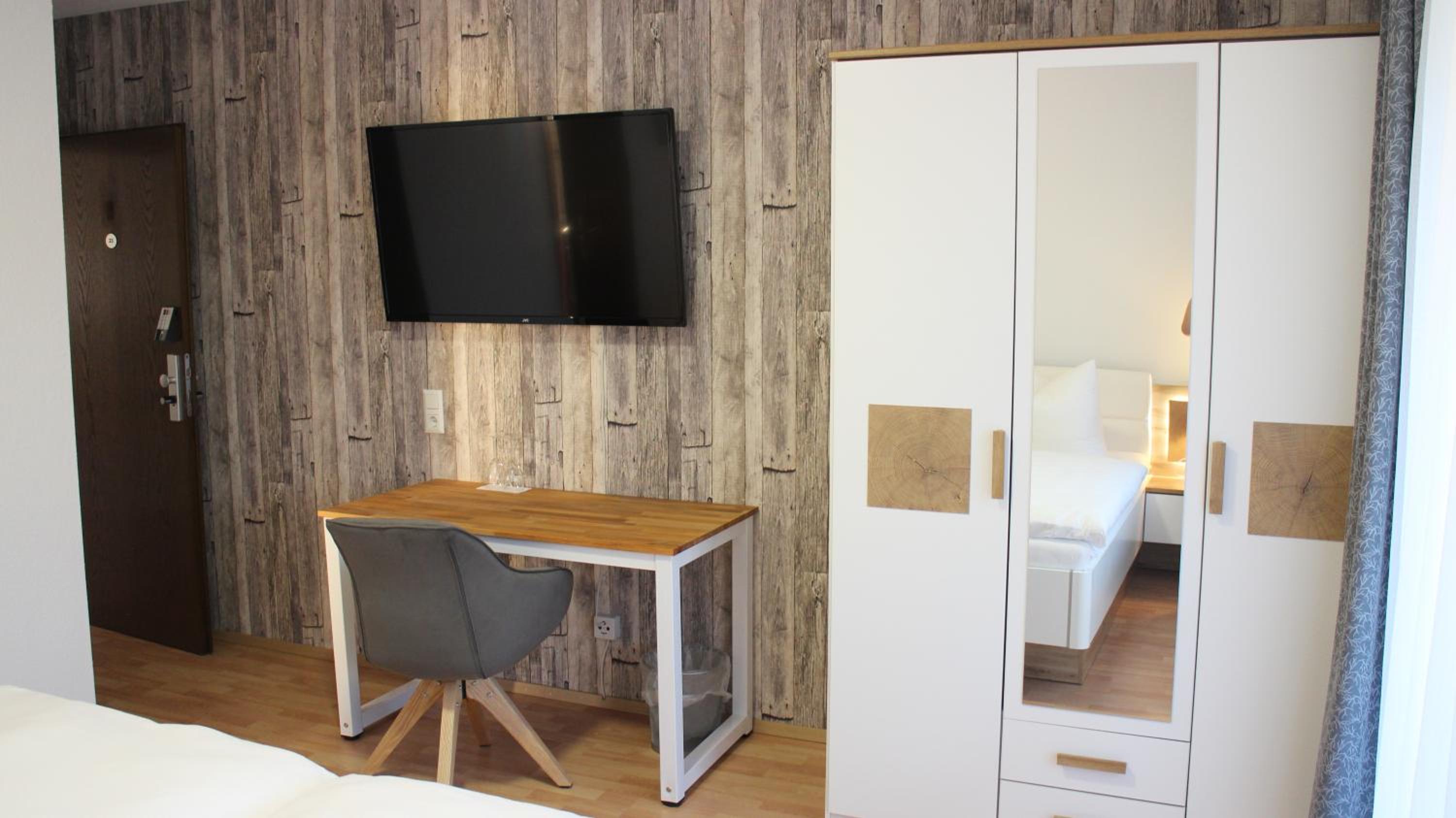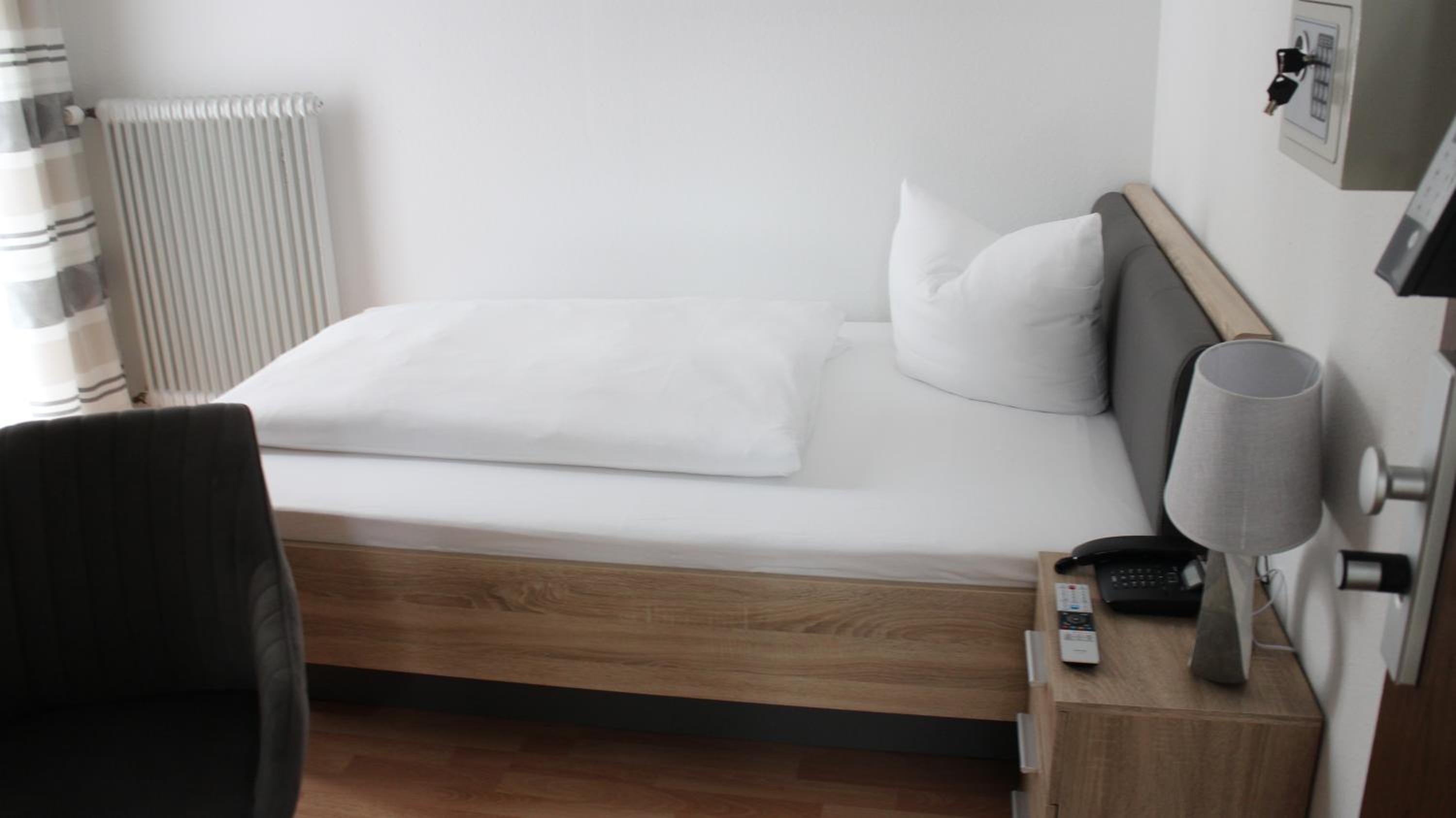Single rooms are clean and very well furnished. Free parking available next to the hotel. Great breakfast. Good coffee. Very helpful staff.