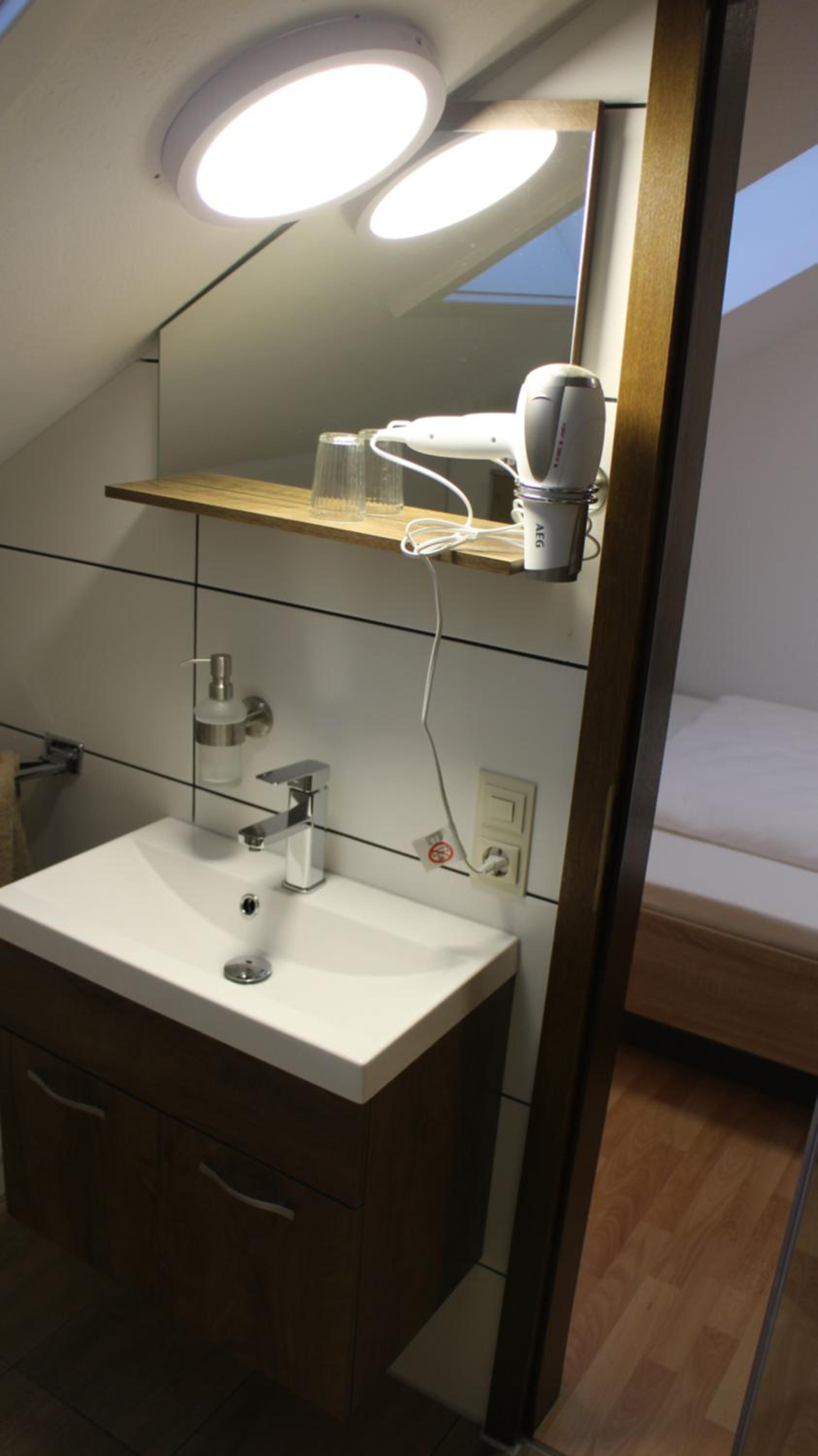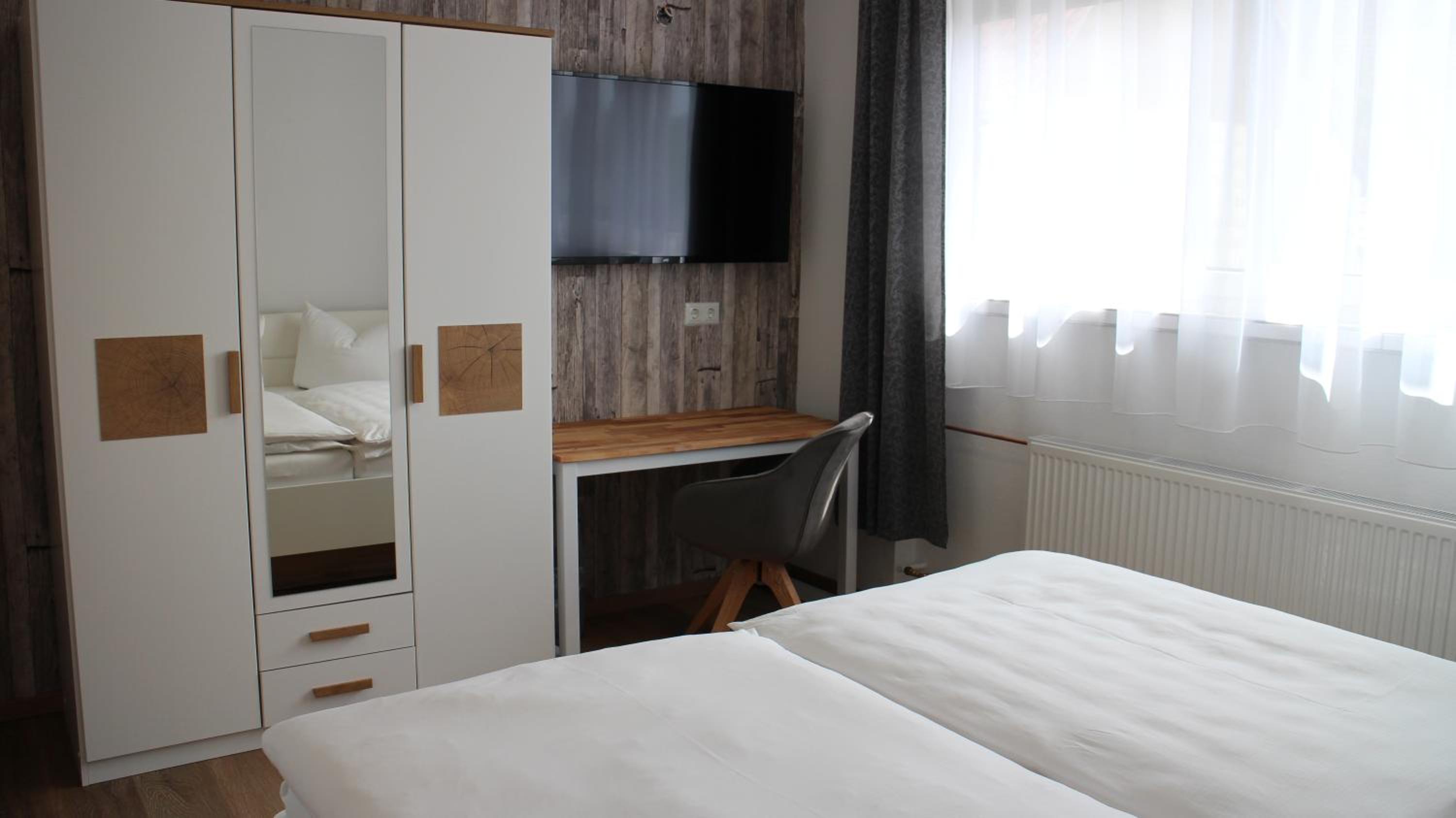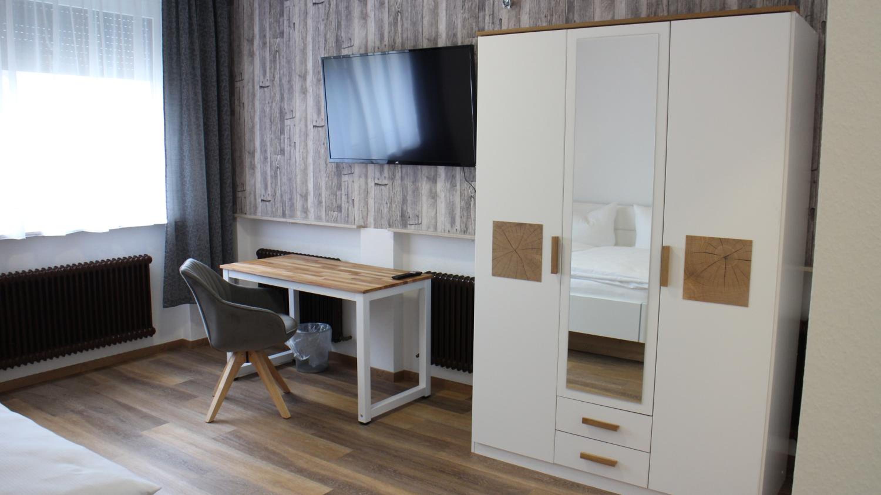 Single rooms are clean and very well furnished. Free parking available next to the hotel. Great breakfast. Good coffee. Very helpful staff.