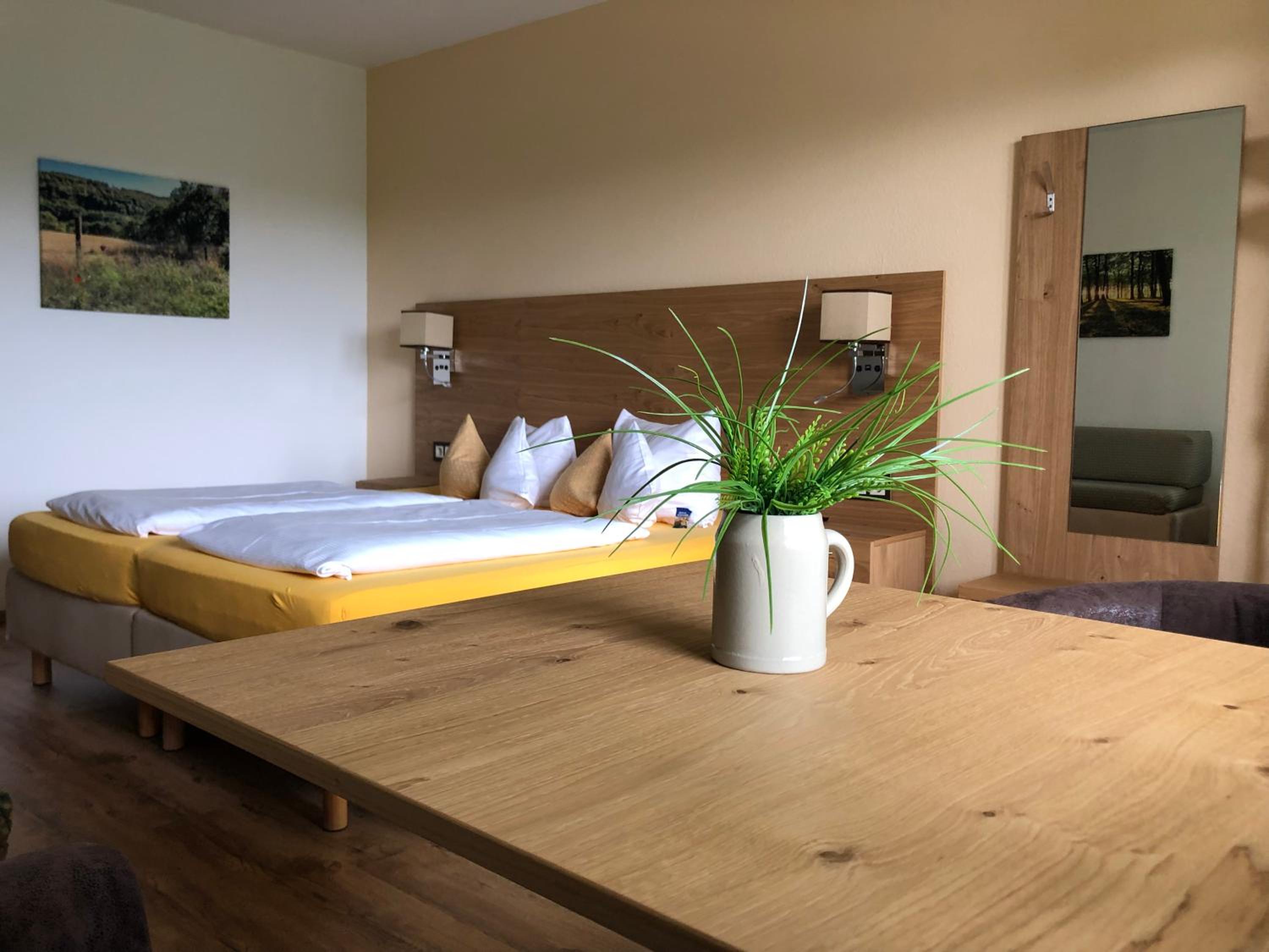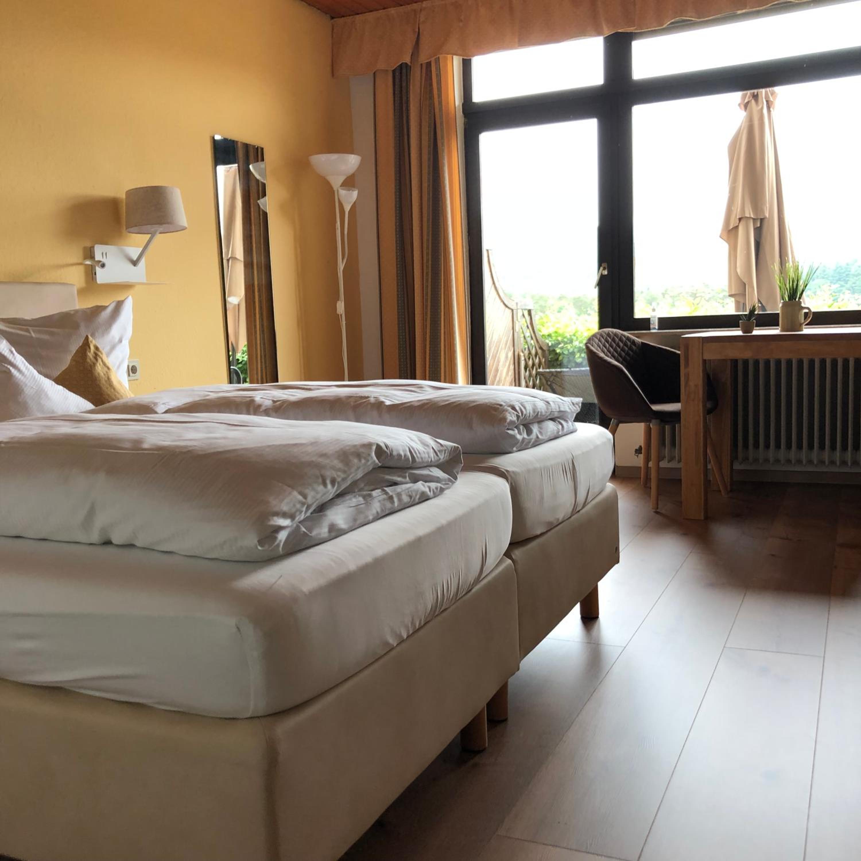 Sehr gemütlich eingerichtetes Restaurant und Zimmer mit einem zauberhaften Blick auf einen See. Sehr nettes und zuvorkommendes Personal,das von Hausdackel Antonio.unterstützt wird.