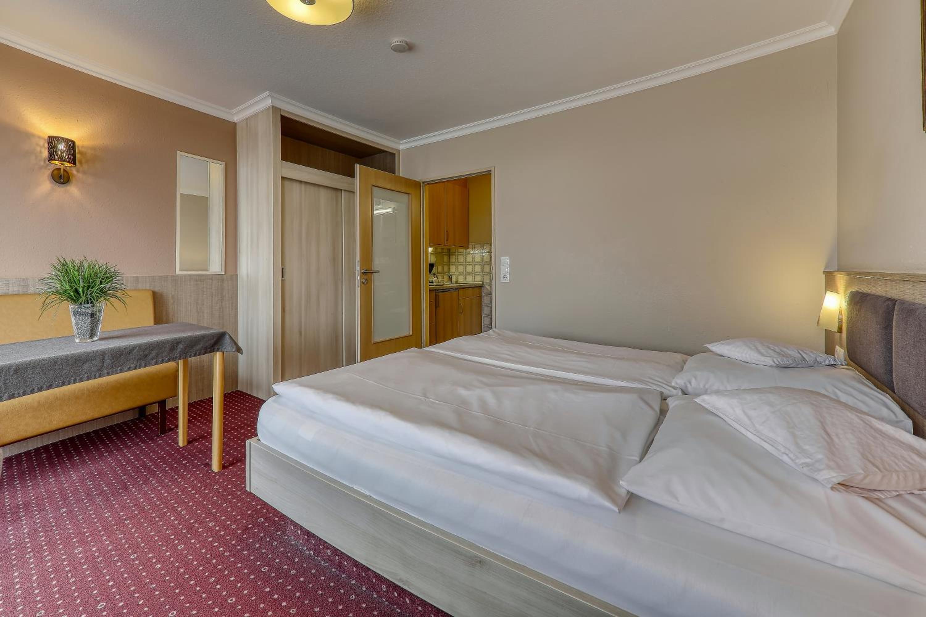 Malý hotel, příjemný personál. Cítíte se vítaní, jako doma. Možnost si udělat kávu, koupit si v automatu (mince, či papírové euro) pití po celý den. K dispizici i moučník. Snídaně nejsou veliké, ale vybere si každý. Personál se ptá, zda je všeho dostatek a vše OK. Stále se doplňuje. Uklízí každý den. Zařízení už něco pamatuje. Hotel na dohled termálních lázní Europa, což je opravdu skvělé. K hostům se tu chovají opravdu zdvořile a tak pár nedostatků člověk "nevidí" :)