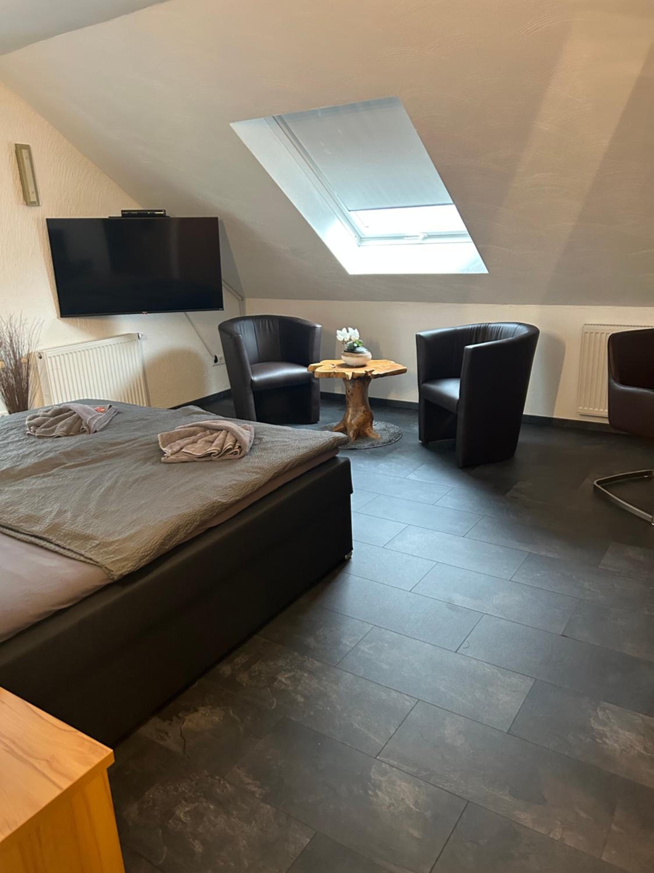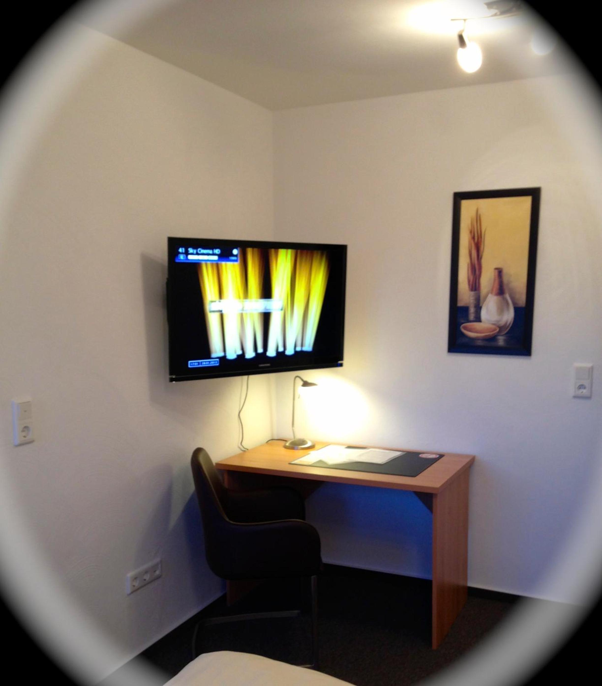 The rooms at Hotel Zur Wasserburg are a vibrant blend of colors, offering a cozy and unique atmosphere. Equipped with a large flat-screen TV and a private bathroom, guests can enjoy both comfort and entertainment during their stay.