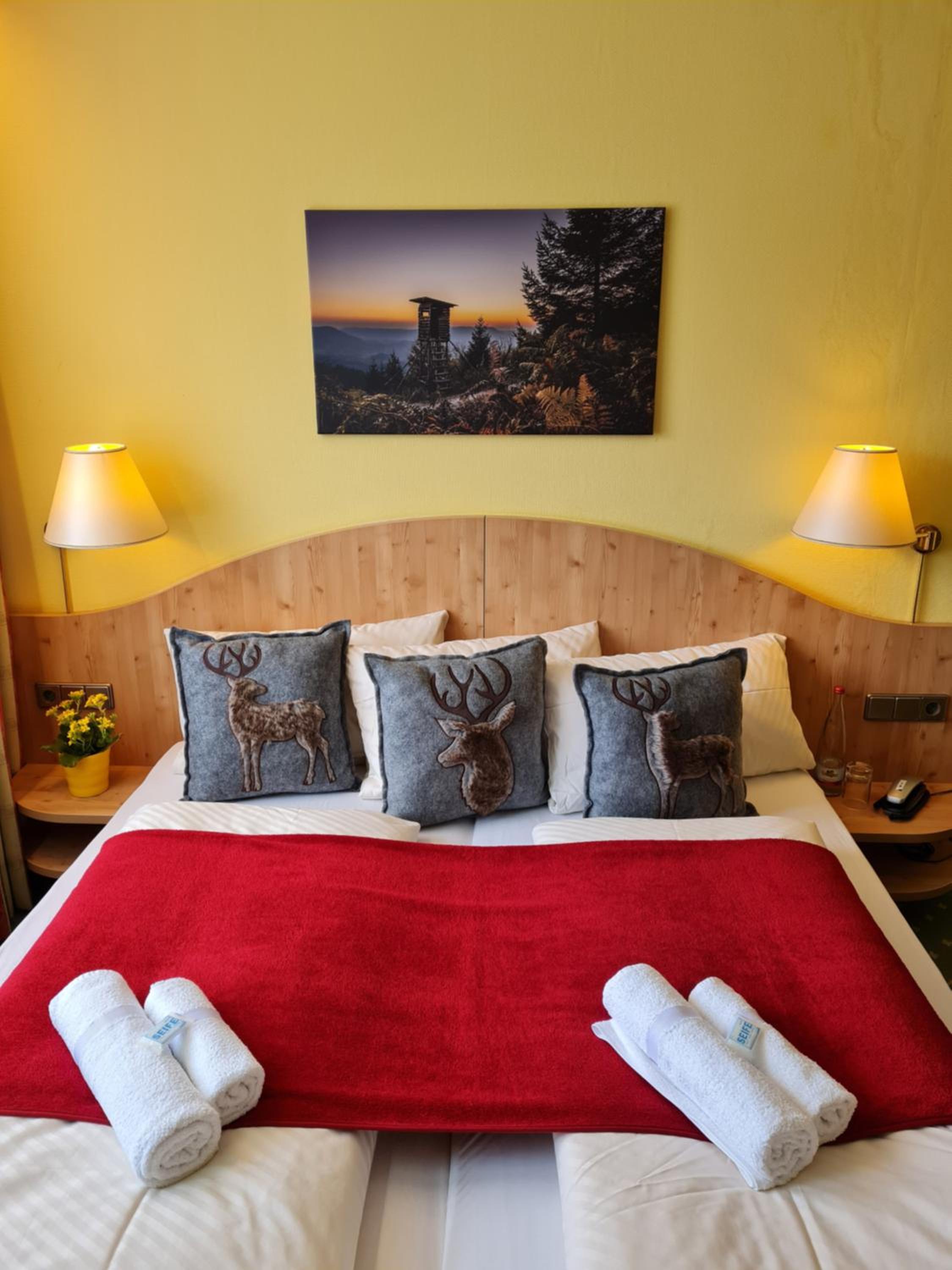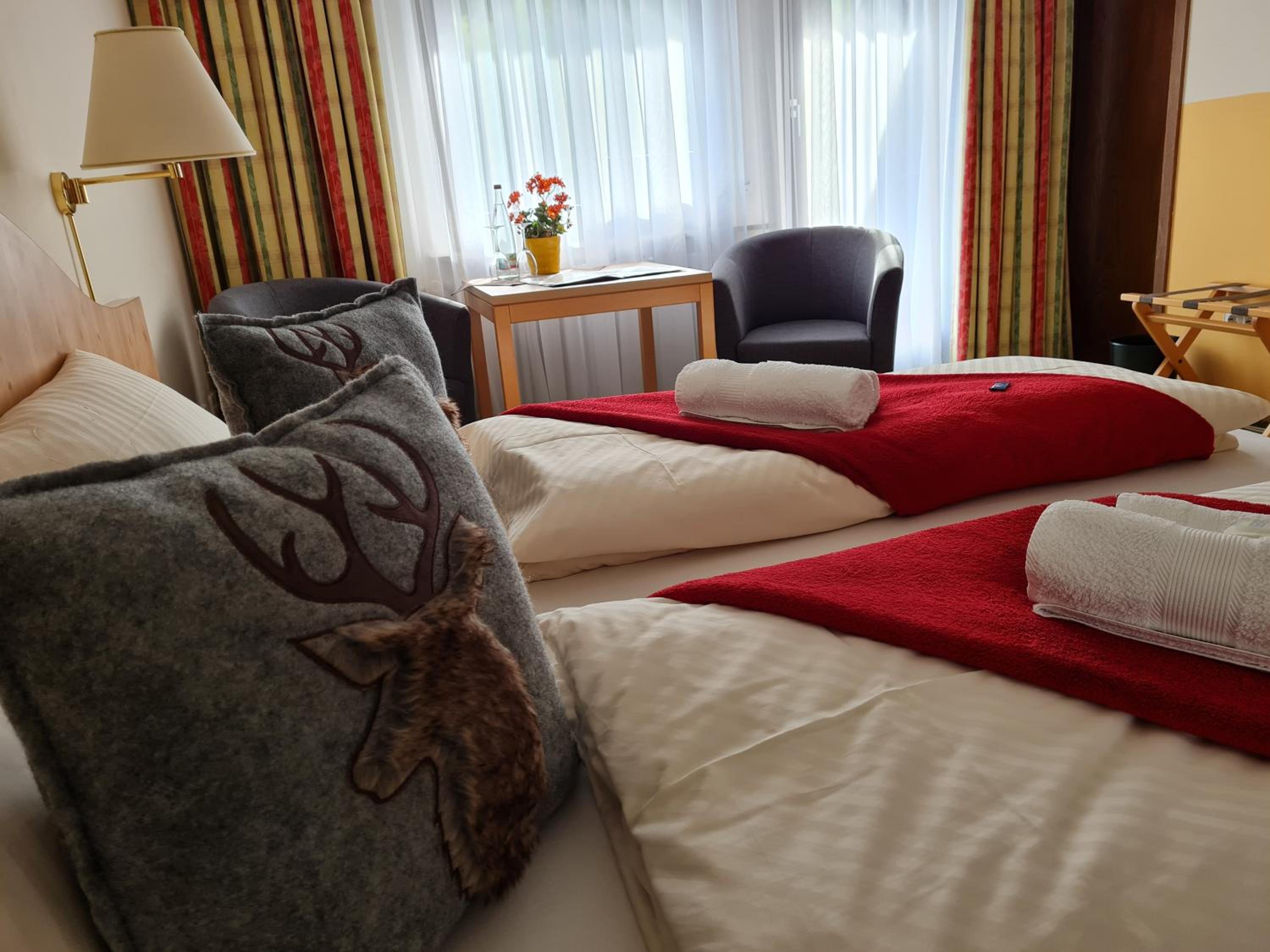 Super nettes Personal. Tolle Damen die einem immer weiterhelfen und immer freundlich sind. Die Unterkunft war auch toll für die Osterzeit dekoriert. Mit ganz viel Liebe zum Detail. Zimmer mit Blick auf Wald. Super ruhig, Urlaub für Augen und Ohren. Zimmer an sich wie auch die gesamte Unterkunft ist nicht luxuriös aber ich habe nichts vermisst. Das Essen im Restaurant war super gut. Preise fand ich auch in Ordnung. Das Frühstück finde ich allerdings nicht es gut. Die Auswahl ist nicht zu groß aber auch hier wird Mann satt. Dieser Urlaub war für mich und meinen Hund. Sie war herzlich willkommen und es gab nie ein Problem. Die Gegend ist wirklich toll, ich wollte gar nicht mehr weg.