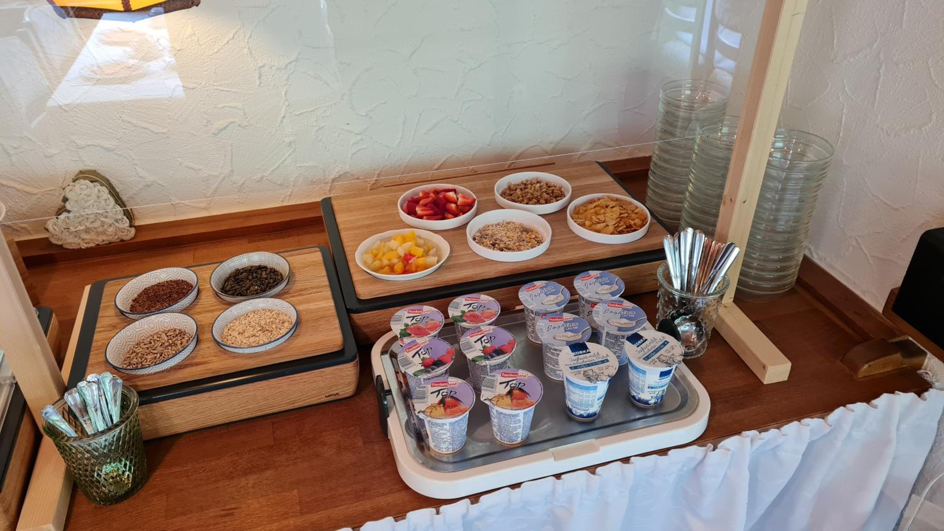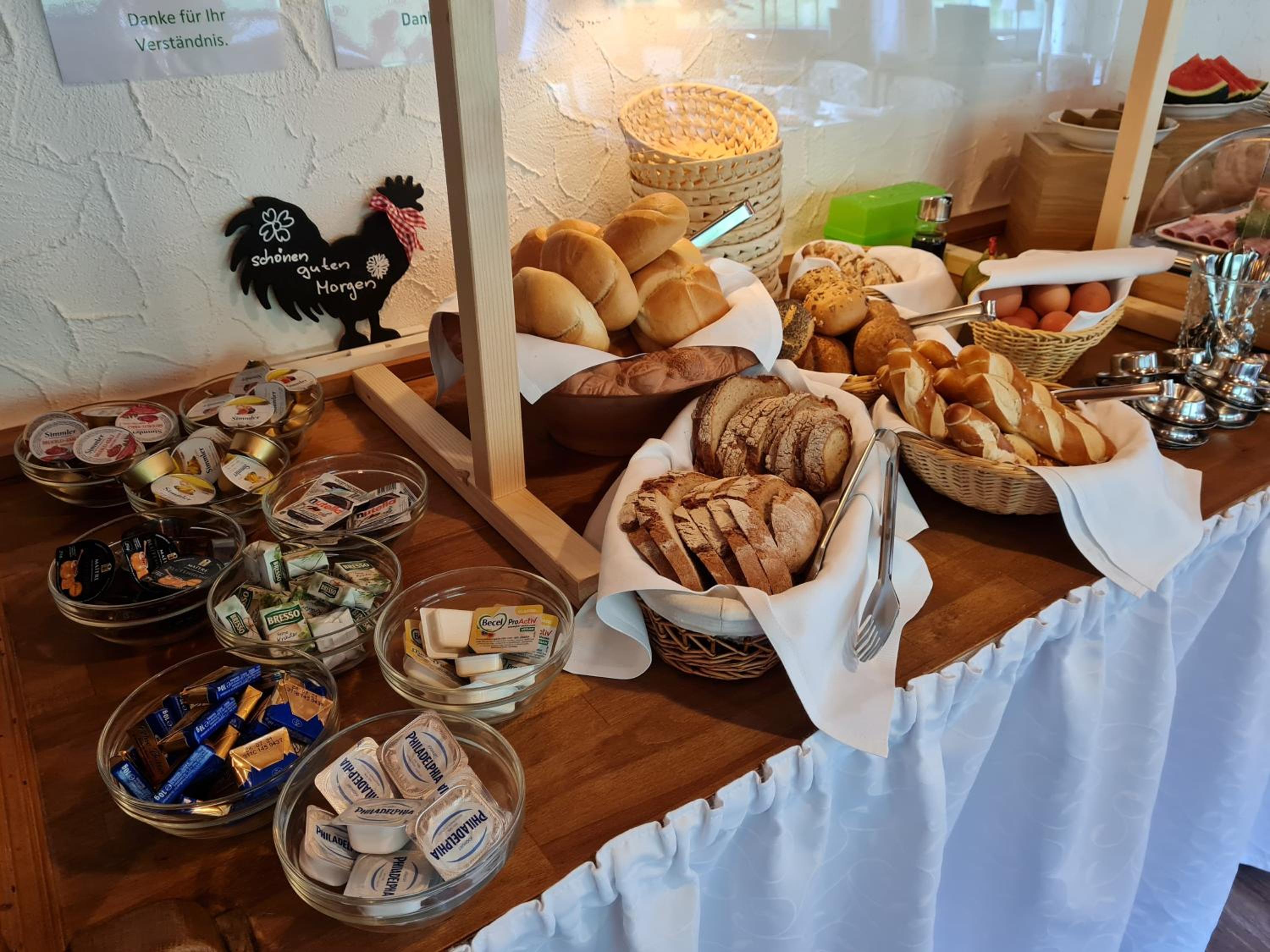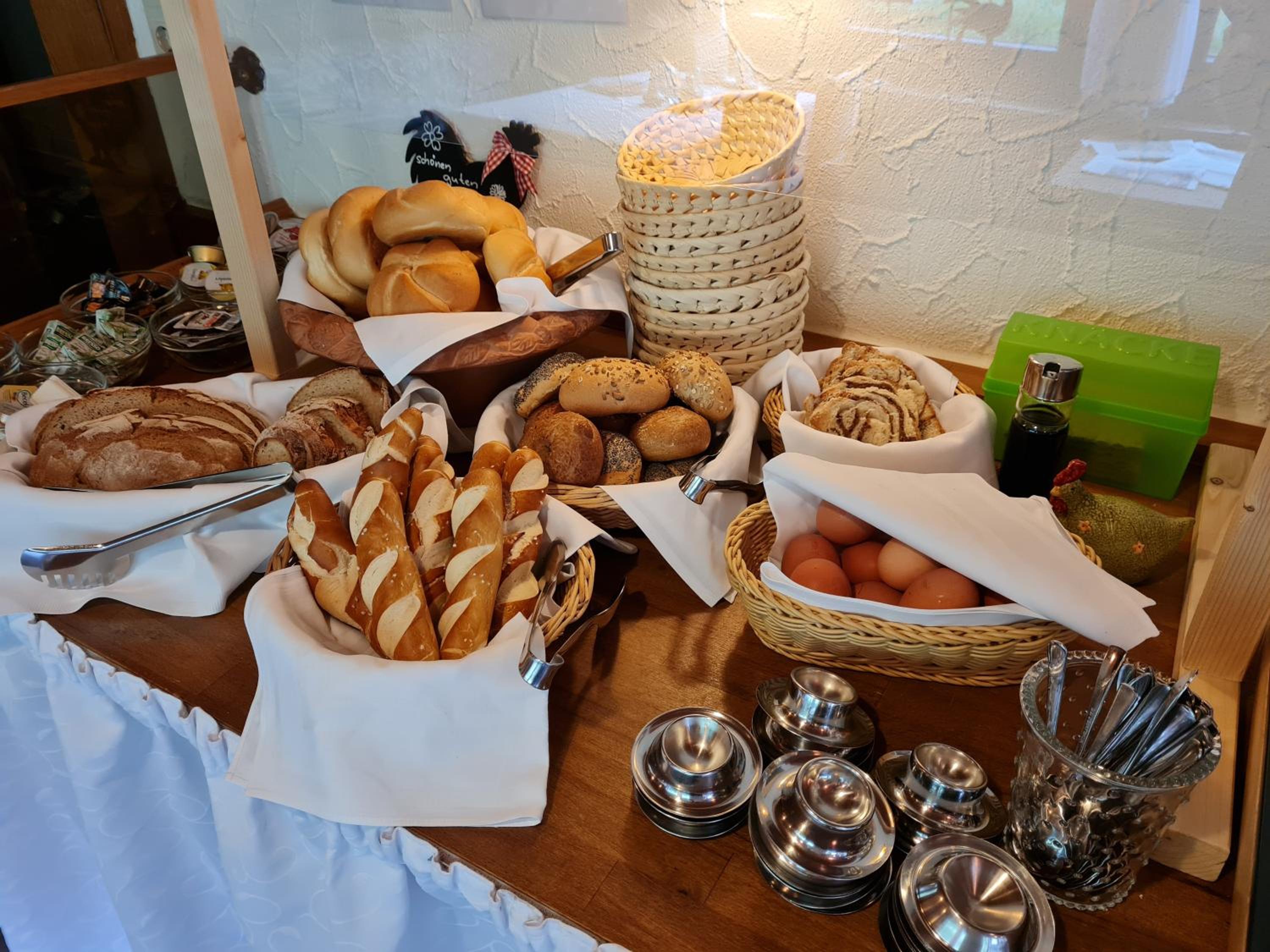 Frühstück übersichtlich aber lecker und voll ausreichend um in den Tag zu starten , und nach ausgiebige Wanderung muß ihr nicht suchen wo mann zu Abend essen geht weil bei Eicklers ist die warme Küche ausgezeichnet .