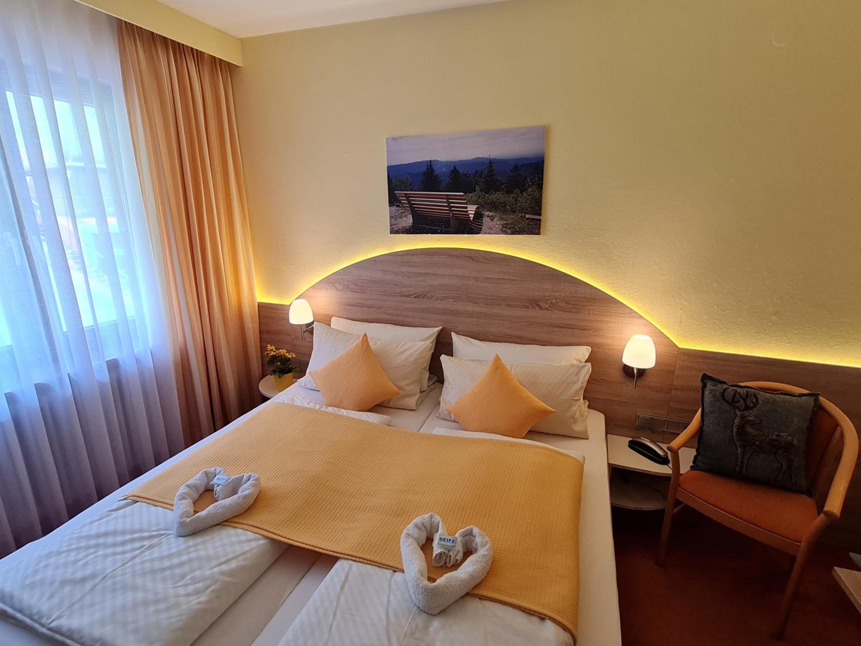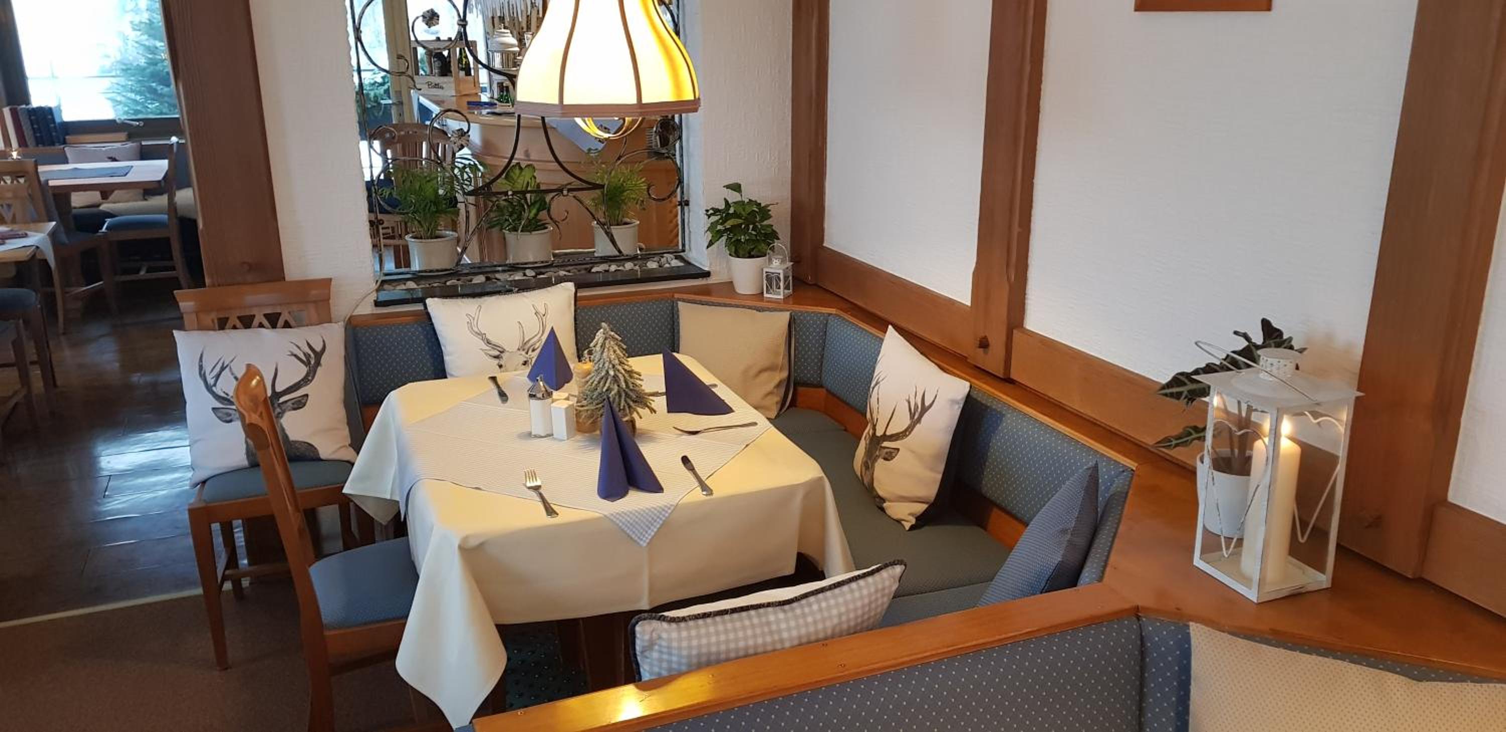 Das Frühstück war sehr gut, besonders der Hefezopf und die auf den Punkt wachsweich gekochten Eier. Im Frühstücksraum (wir saßen wegen unseres Hundes etwas abseits vom Buffet) war es besonders gemütlich. Abends haben wir im Restaurant a la carte gegessen, auch hier gab es nichts zu meckern. Die hausgemachte Schwarzwälder Torte war Mega. Das Haus ist recht hellhörig, aber die Gäste waren durchweg sehr leise, so dass es nachts im Haus ganz still war. Die Betten waren sehr gut, wir haben wunderbar geschlafen.