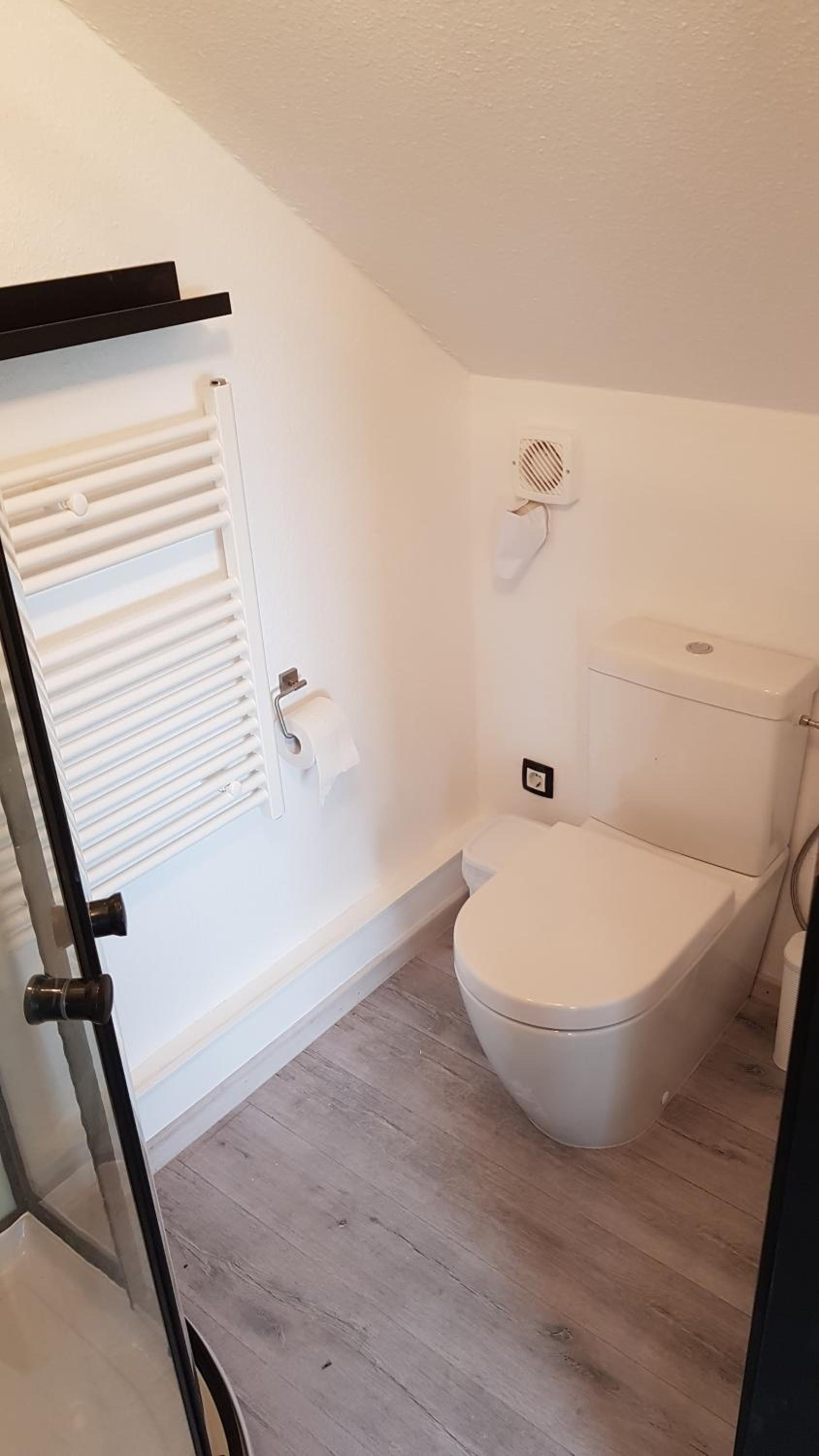Zimmer mit Dusche und Toilette.