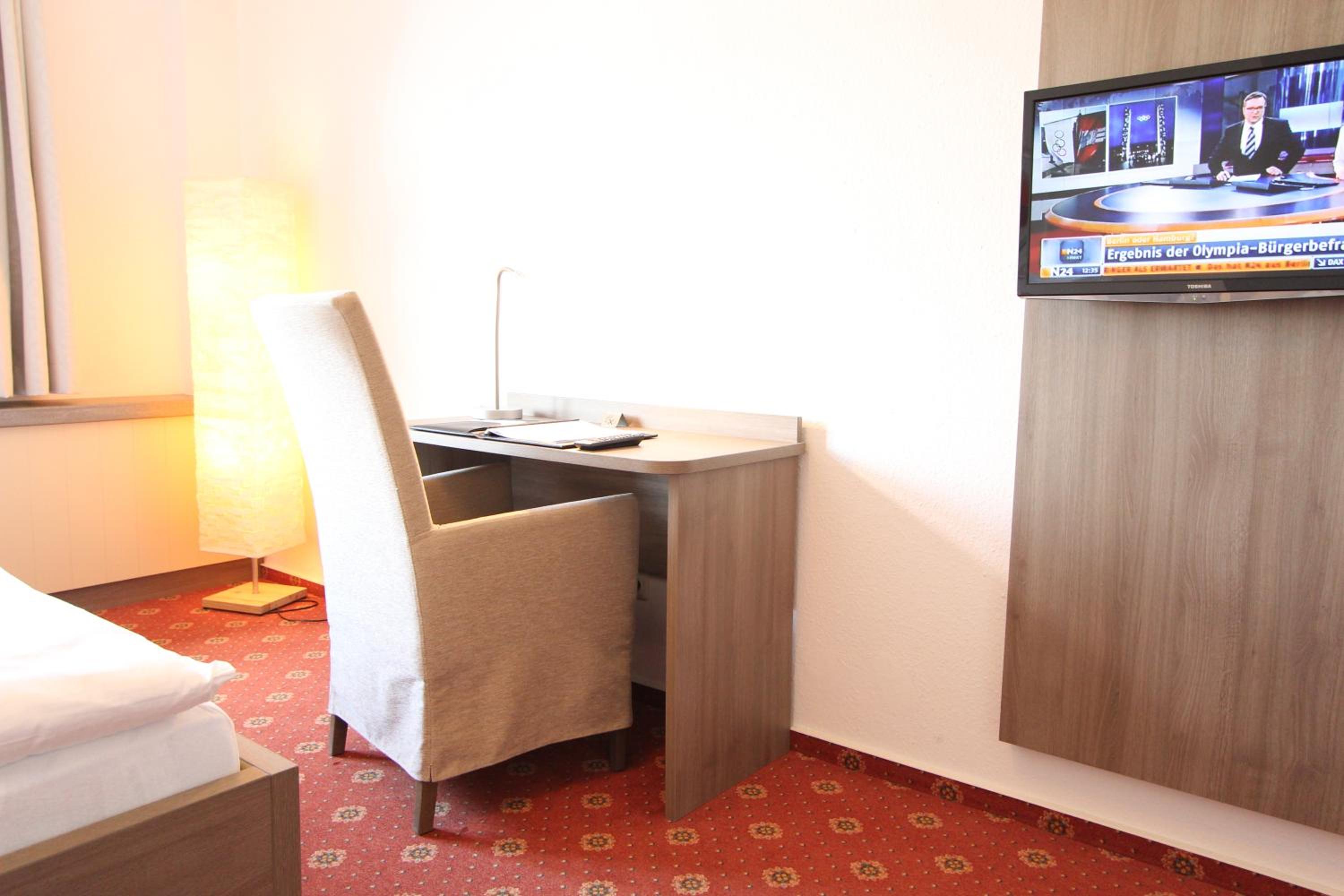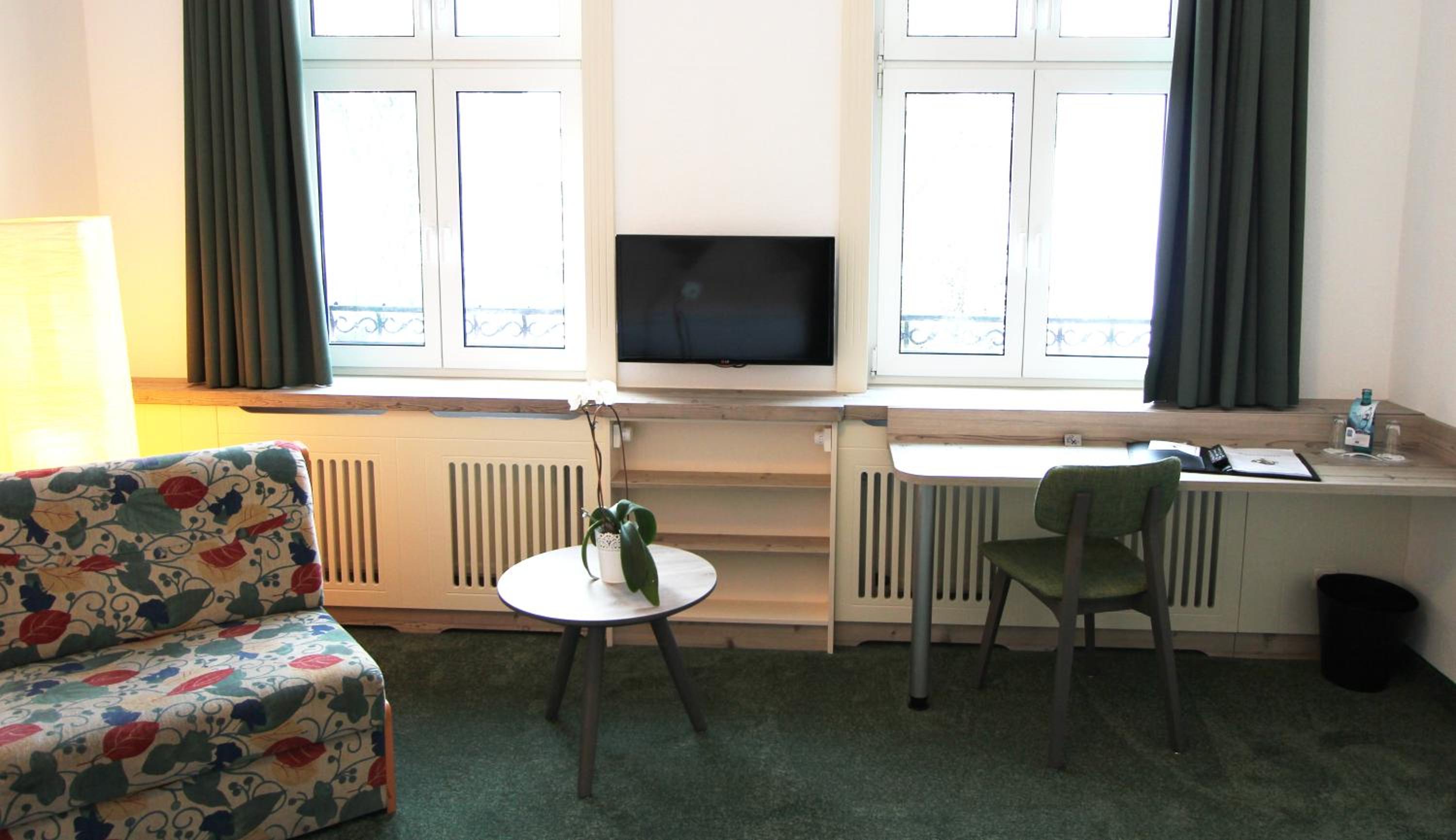 Vi bodde i Comfort rum, 3-bädds, vilket innebar att vi hade en soffa utöver stolar. Bra storlek på rummet. Två!! avställningsplatser för resväskor, rena lyxen. Bra avställningsytor i övrigt i såväl rummet som duschen. Stor tv. Vi hade terass utanför och där kunde man sitta och titta på alpackor, får, struts och katter. Det fanns ett storkbo och på morgonen så gick storken nere på ängen - det var lycka för oss att se. Gratis parkering vid hotellet. Restaurangen var fin och frukosten rejält tilltagen även om det enda som var varmt var kokta ägg. Man kunde beställa äggröra mm av den mycket trevlige frukostvärden.