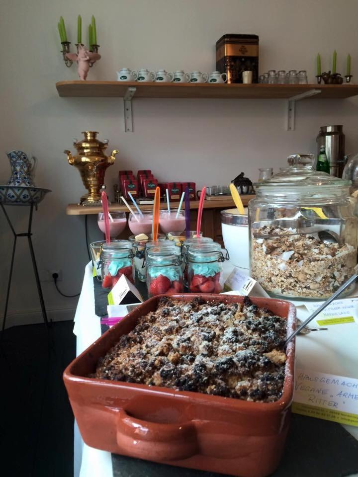 Das Frühstück war umfangreich und mit selbstgemachten Produkten liebevoll bestückt, ein guter Start in den Tag.