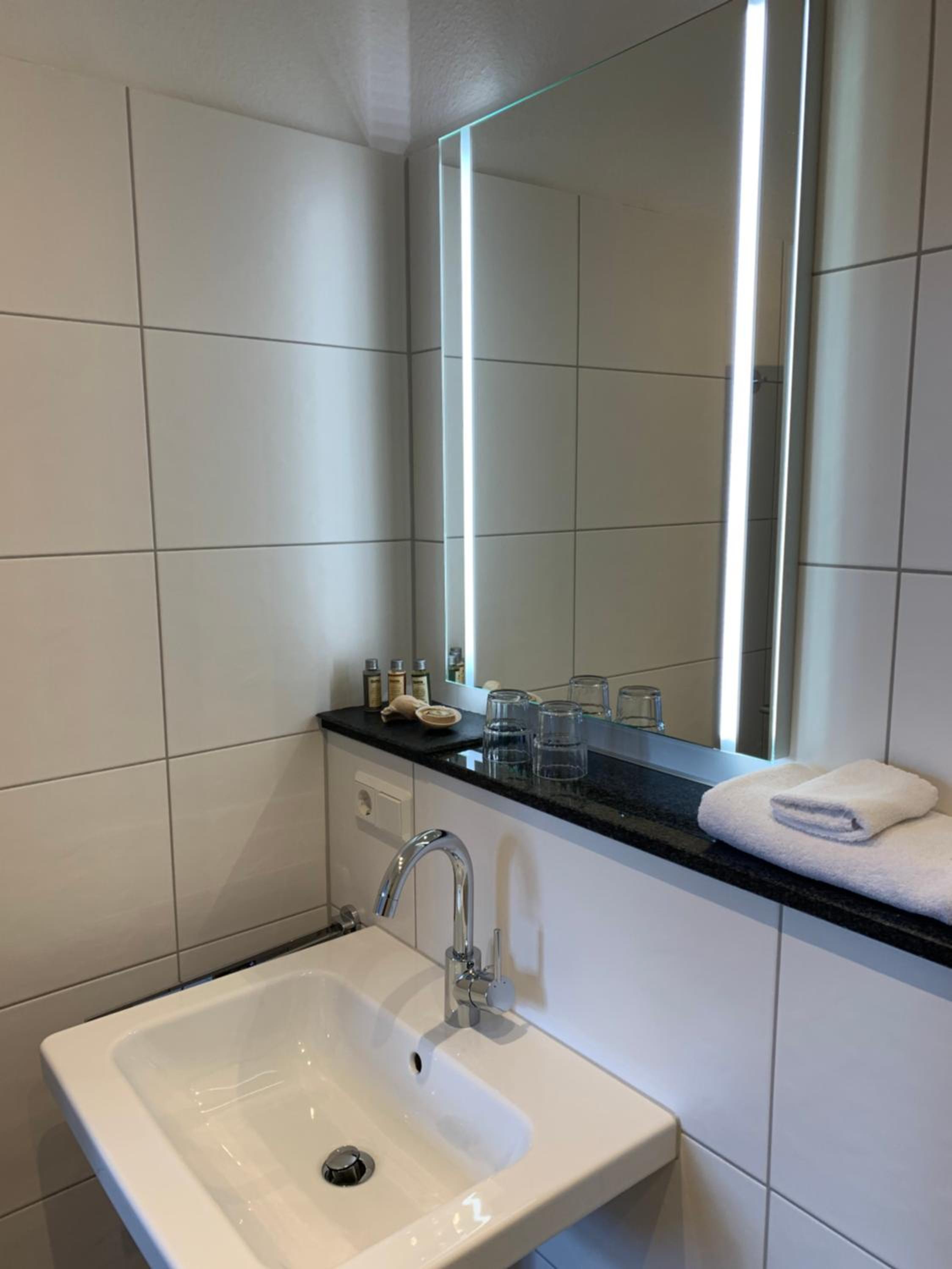 Das Zimmer war gemütlich eingerichtet und hatte den Komfort einer Kaffeemaschine. Auch stand jeden Tag eine Karaffe mit frischem Wasser bereit. Das Badezimmer ist mit hochwertigen Pflegeprodukten ausgestattet.