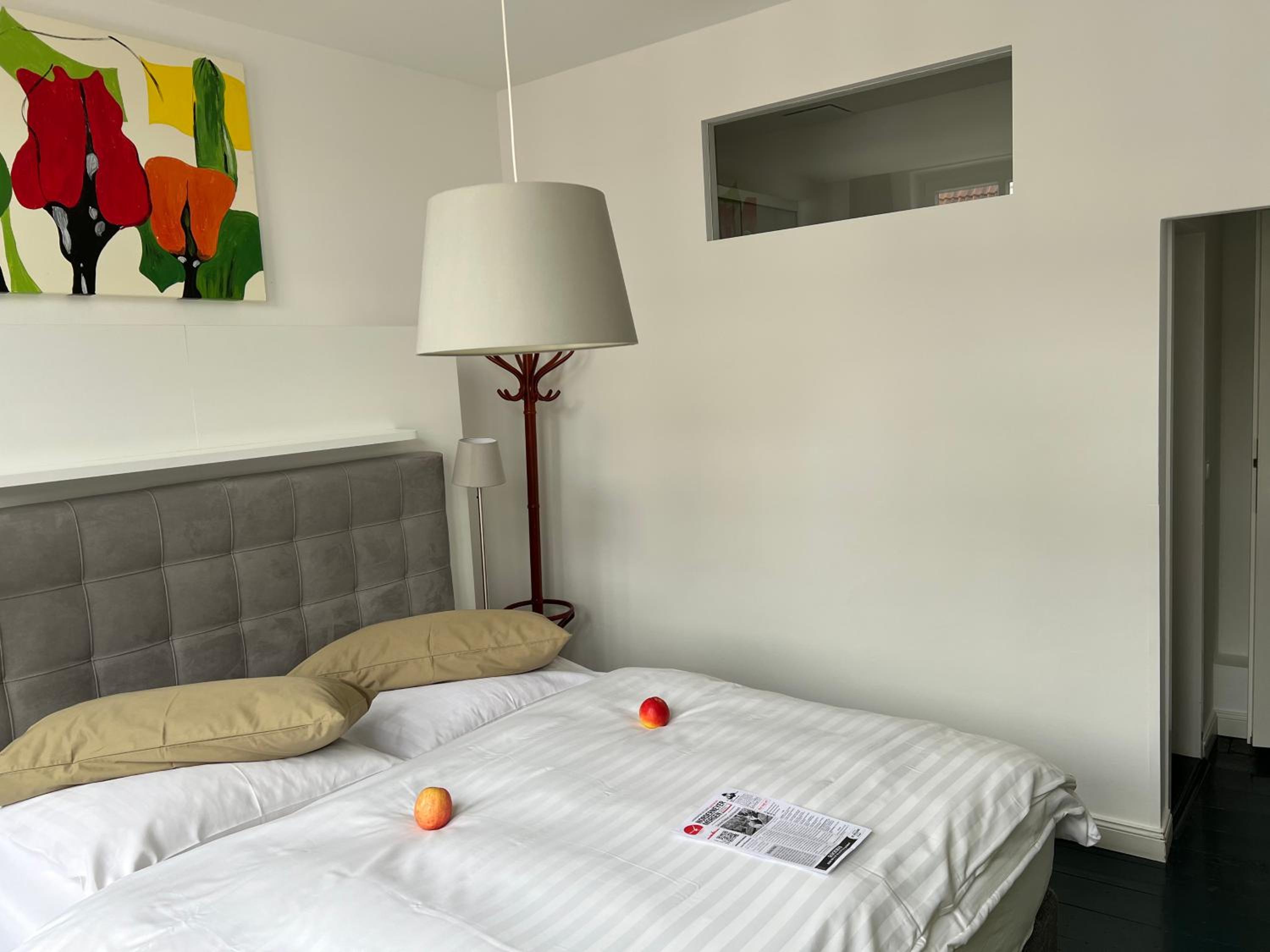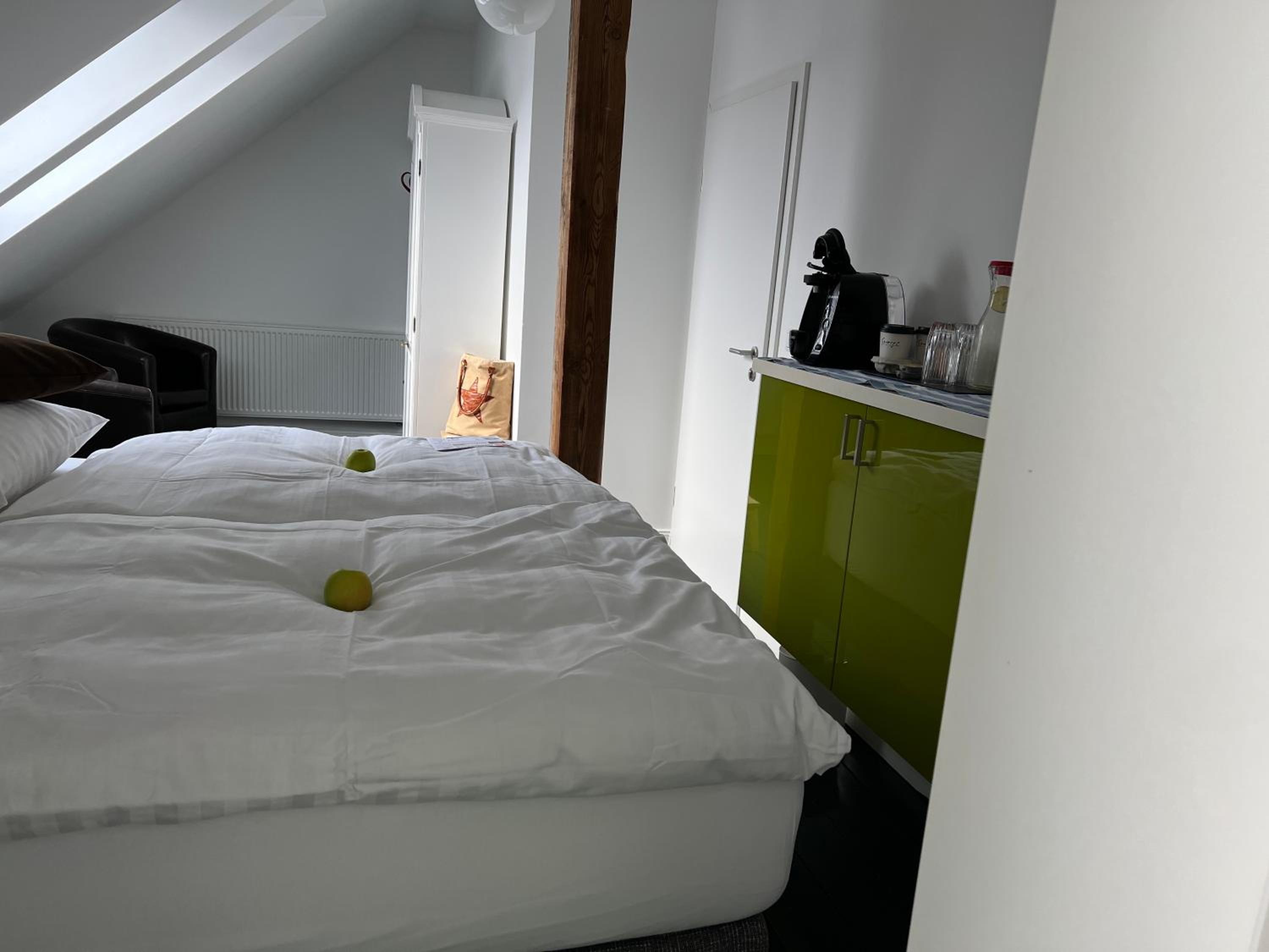 Sehr hilfreiches Personal, sehr nett. Moderne Einrichtung mit älteren Möbeln geschmackvoll gemischt. Gutes Bett, neues Bad. Hervorragendes Frühstück, außer für Veganer.