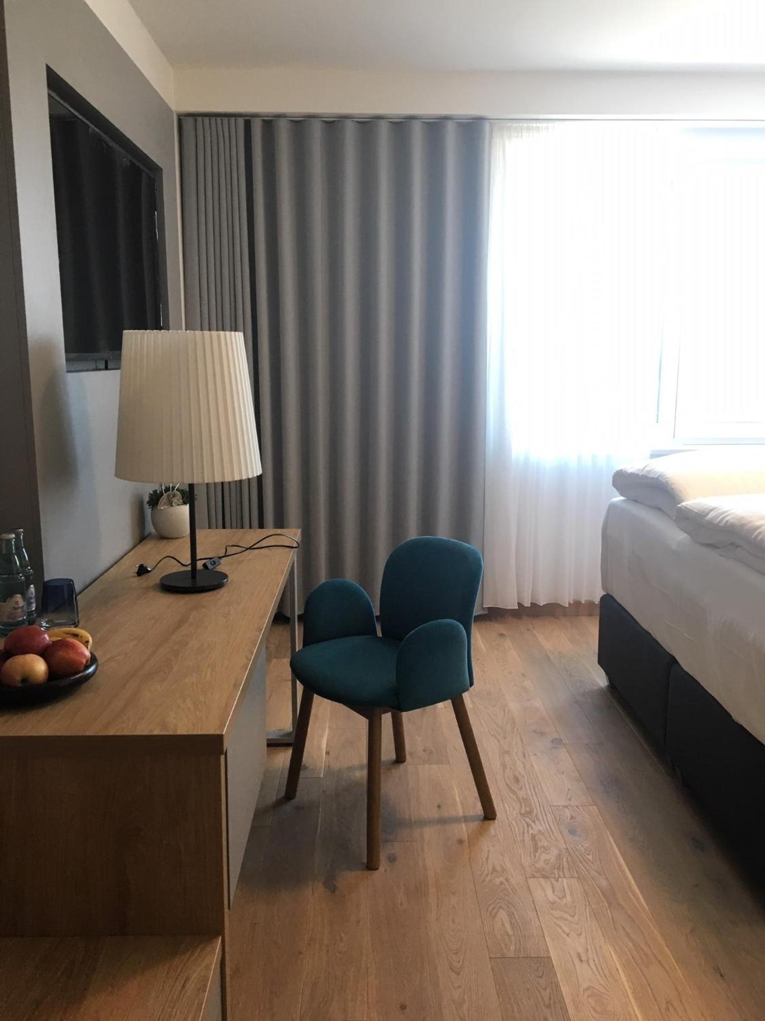 Modern en ruim hotel als aanbouw van een oude villa. Proper en glimmende gangen en met lift!