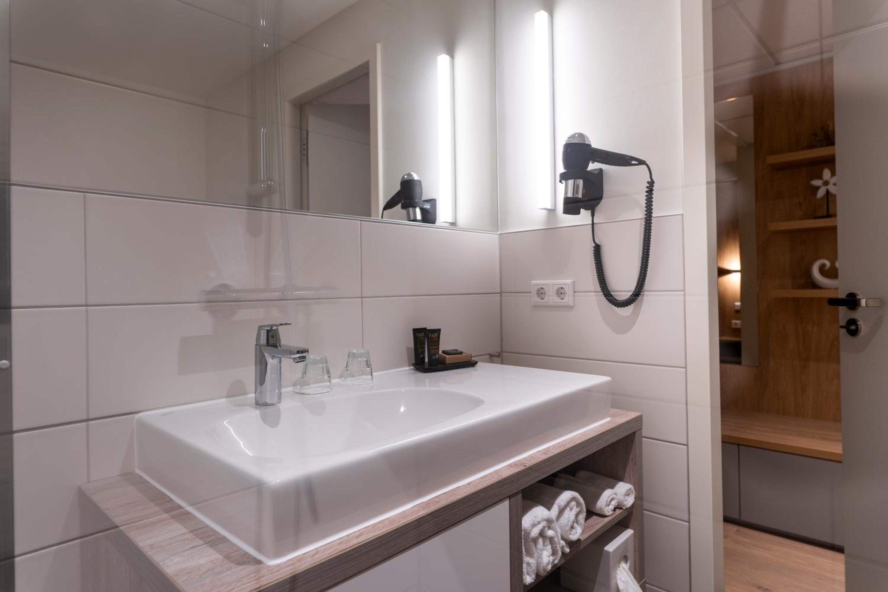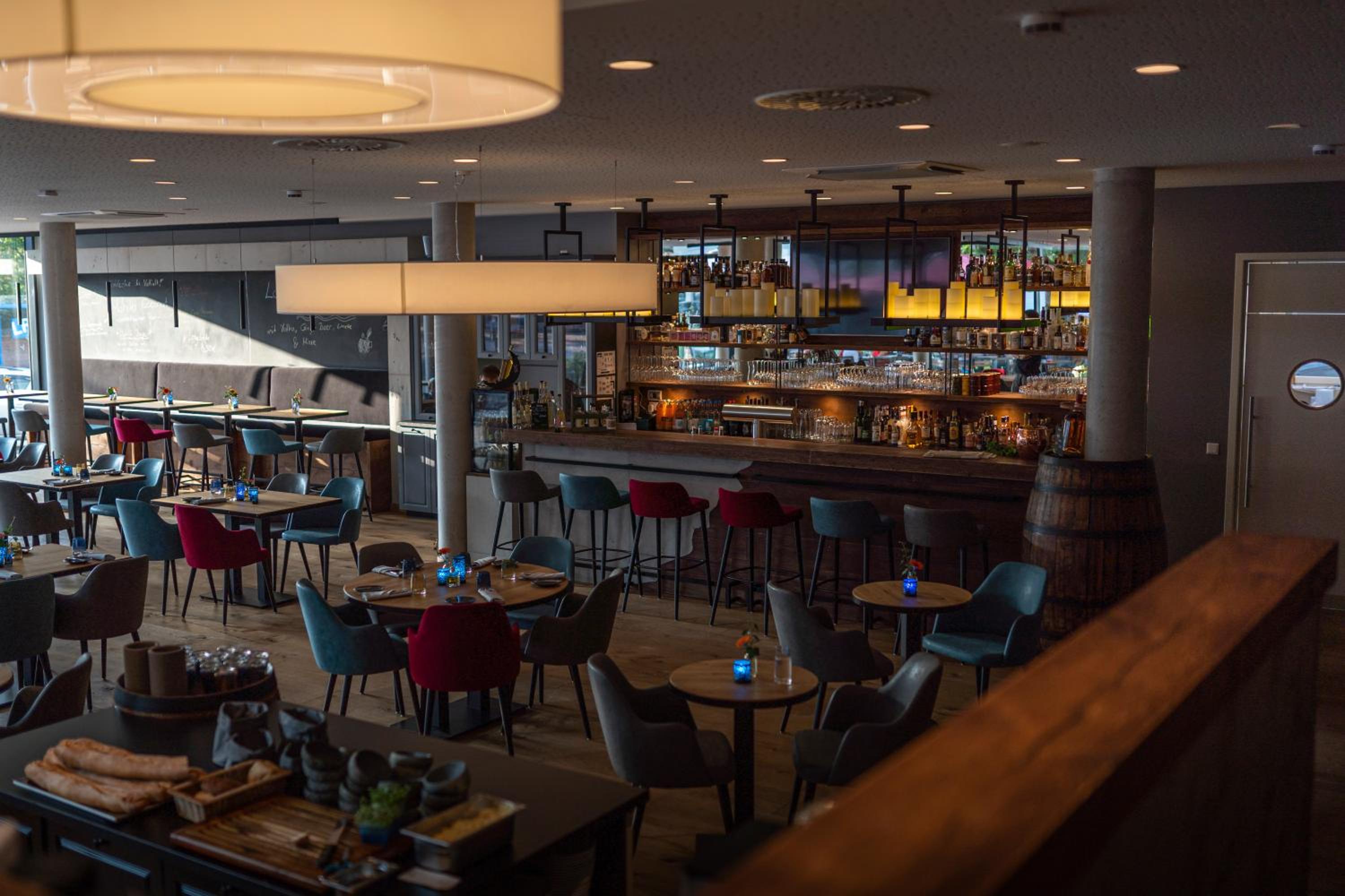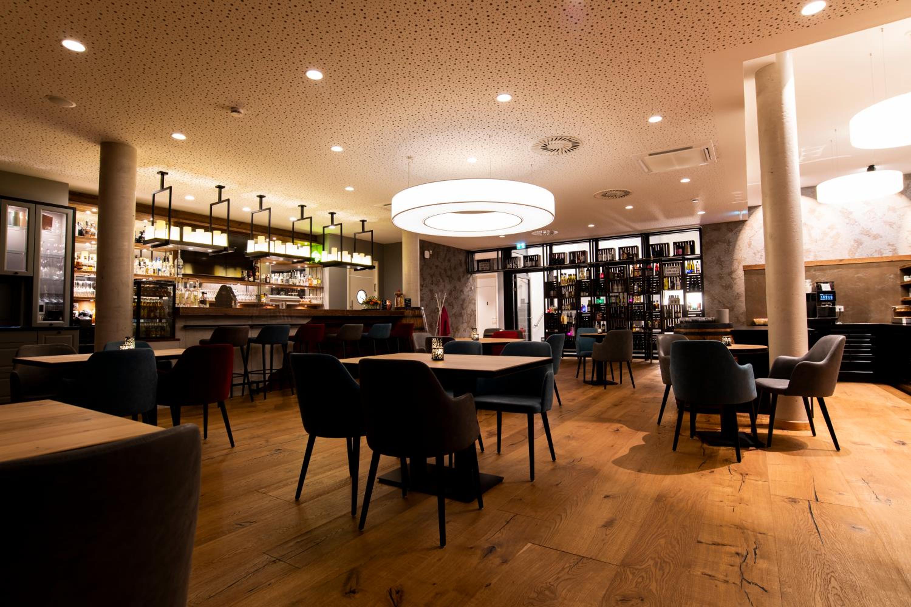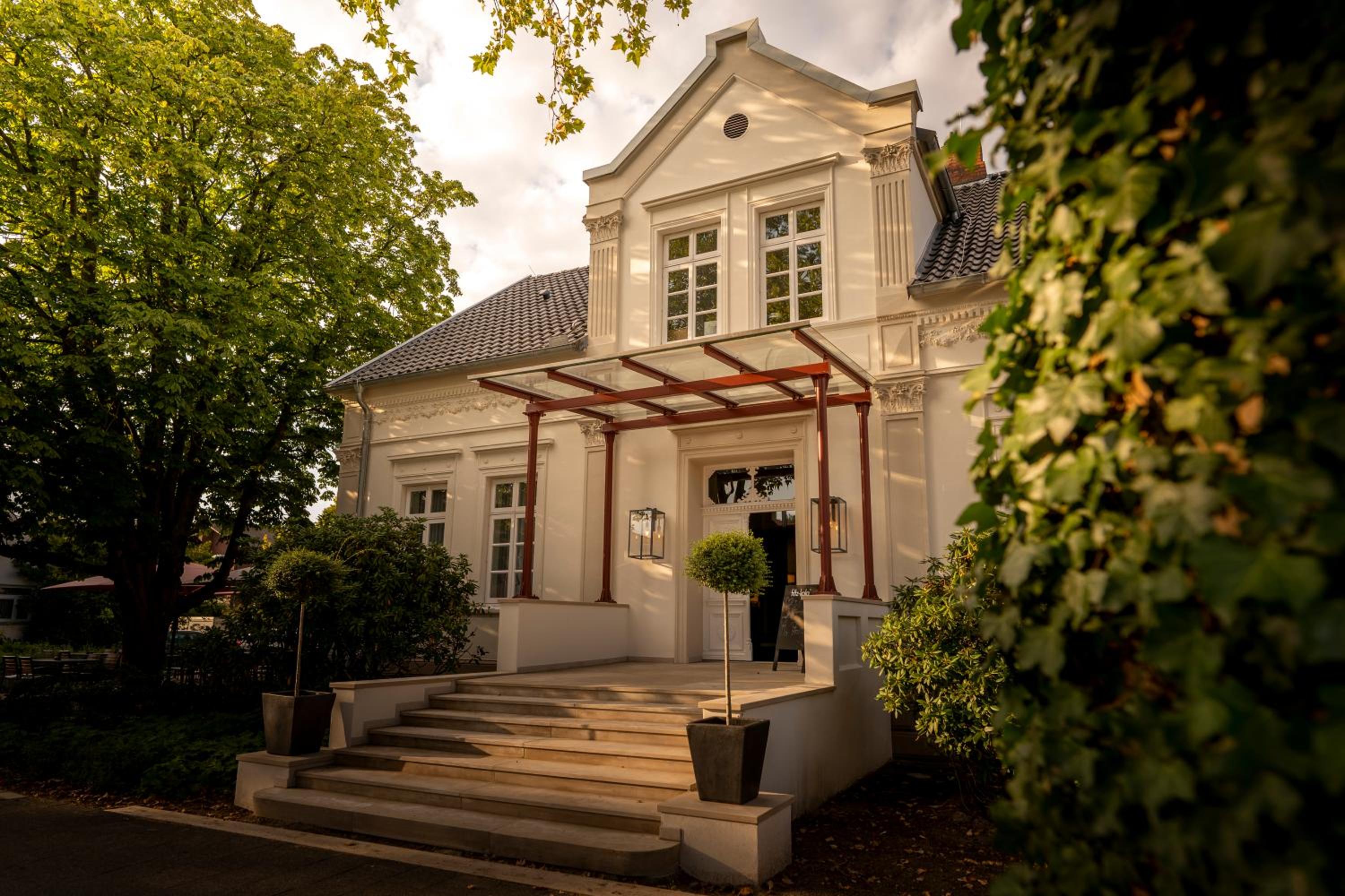 Top-Hotel in Diepholz, es fehlt an nichts. Moderne Zimmer im Anbau neben der historischen Villa. Schön gestalteter Frühstücksraum.
