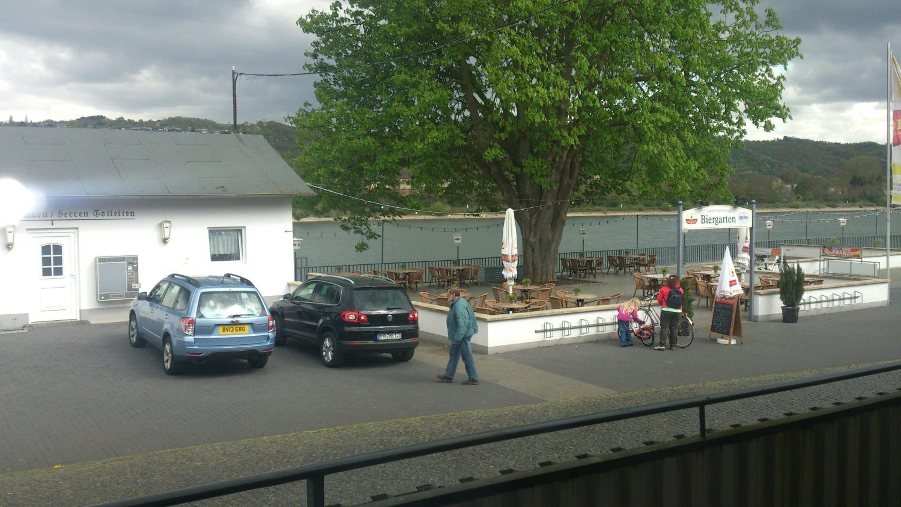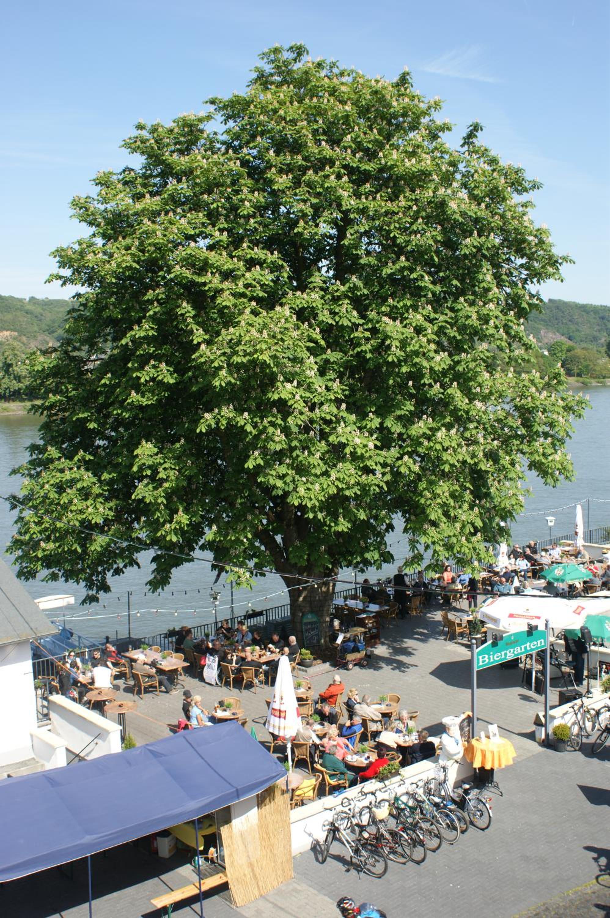 Lage mit Biergarten direkt am Rhein.