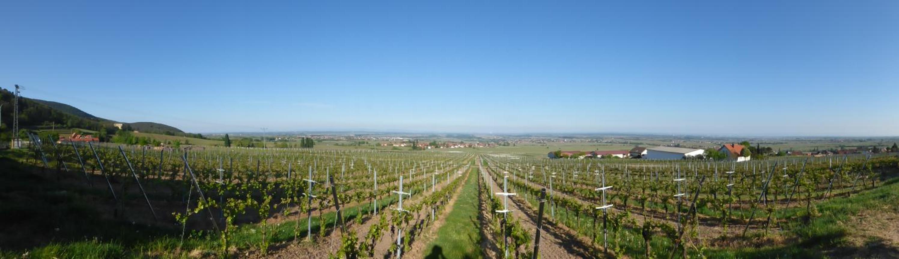 In der Ortsmitte, keine weiten Wege zu Wanderwege, schöner Parkplatz gegenüber, tolle Aussicht auf ein Teil der Südpfalz schöne Straußwirtschaften