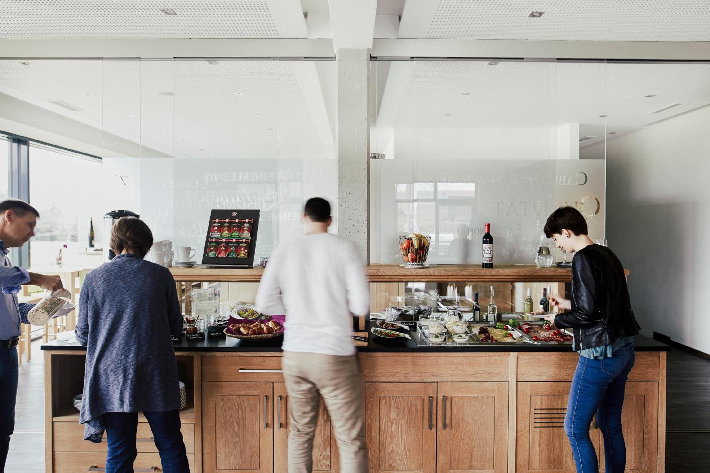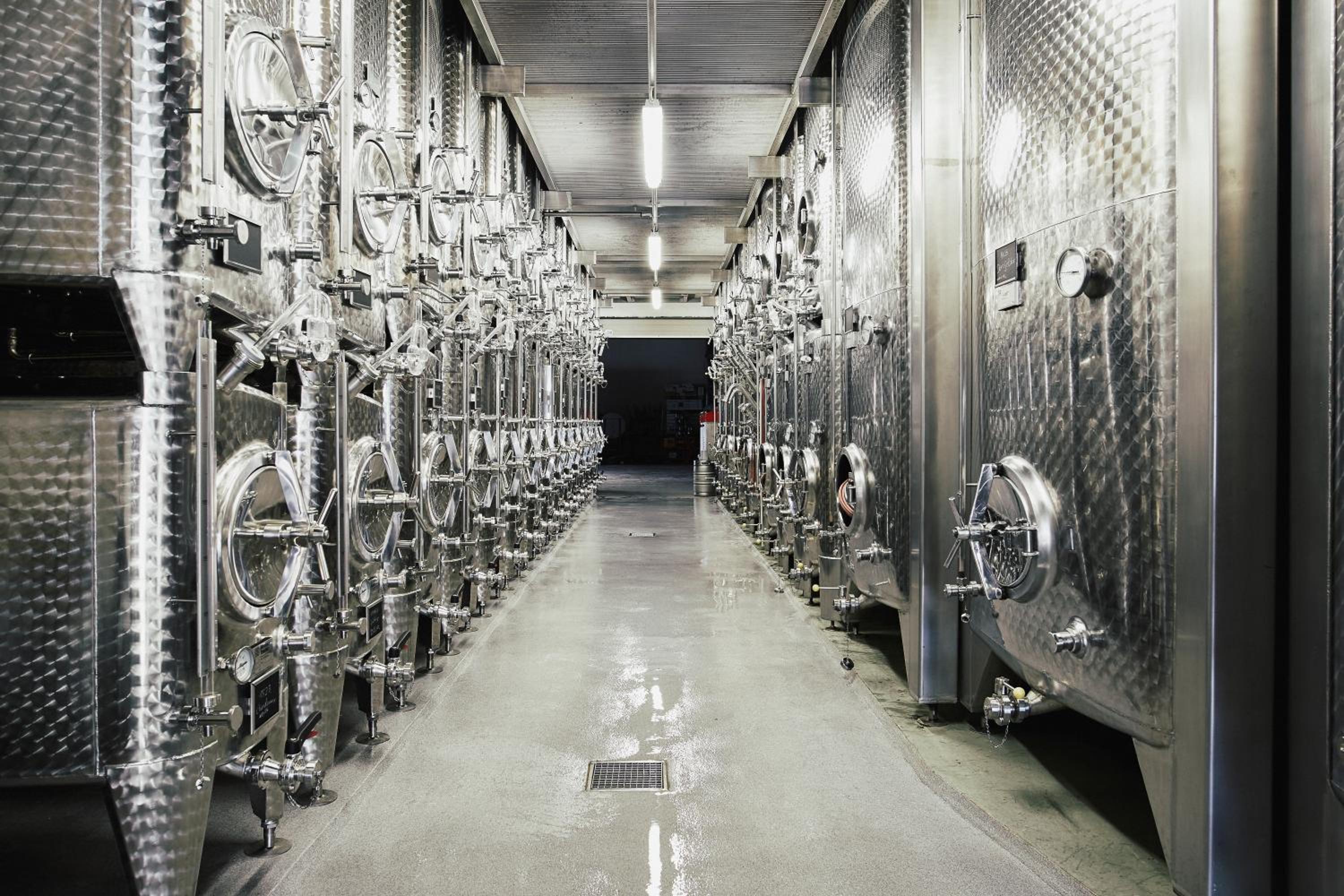 Sehr stillvolle Halle mit Vinothek. Man kann die Weine jederzeit selbst verkosten.