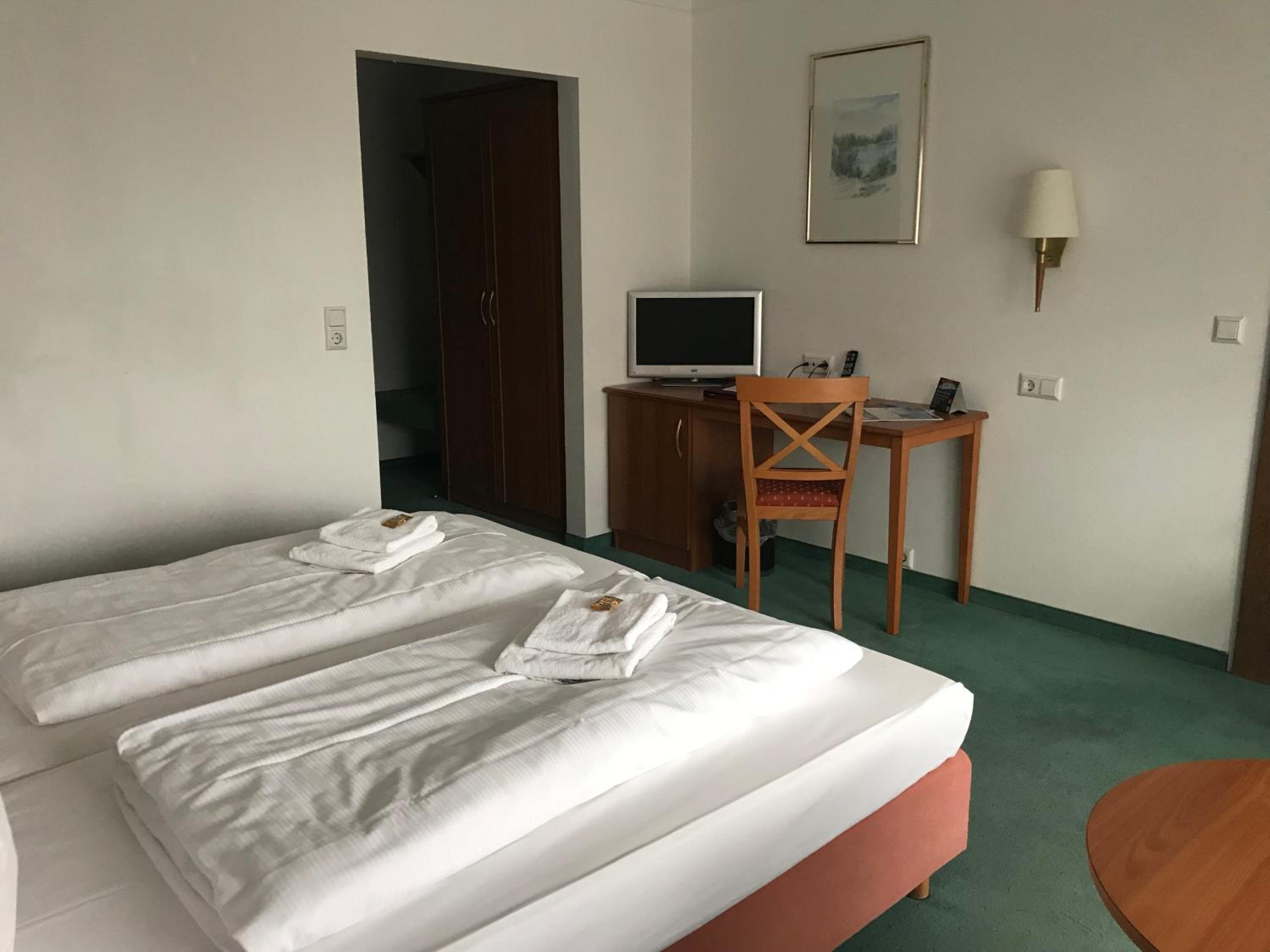 Wir hatten zwei Doppelzimmer gebucht und waren dann sehr positiv überrascht, dass wir ein Zimmer mit Ferienwohnungsausstattung angeboten bekamen.