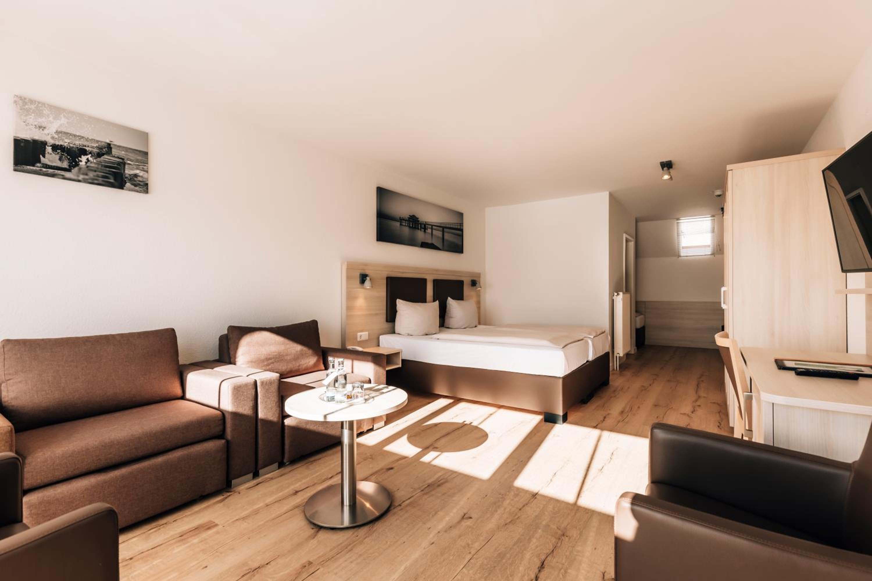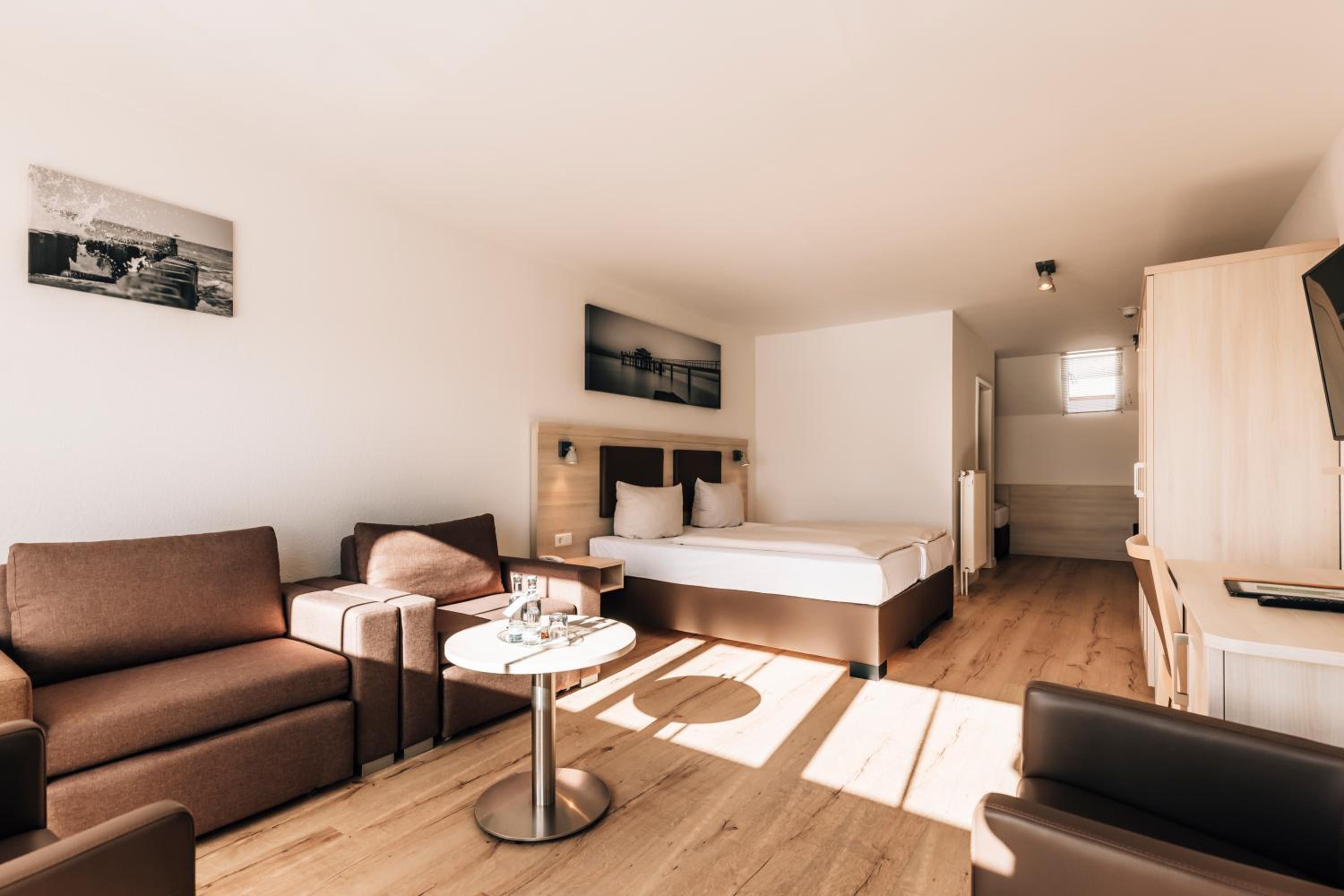 Unwind in the large rooms of Hotel Gorch Fock, equipped with a flat-screen cable TV and a cozy seating area for your relaxation.