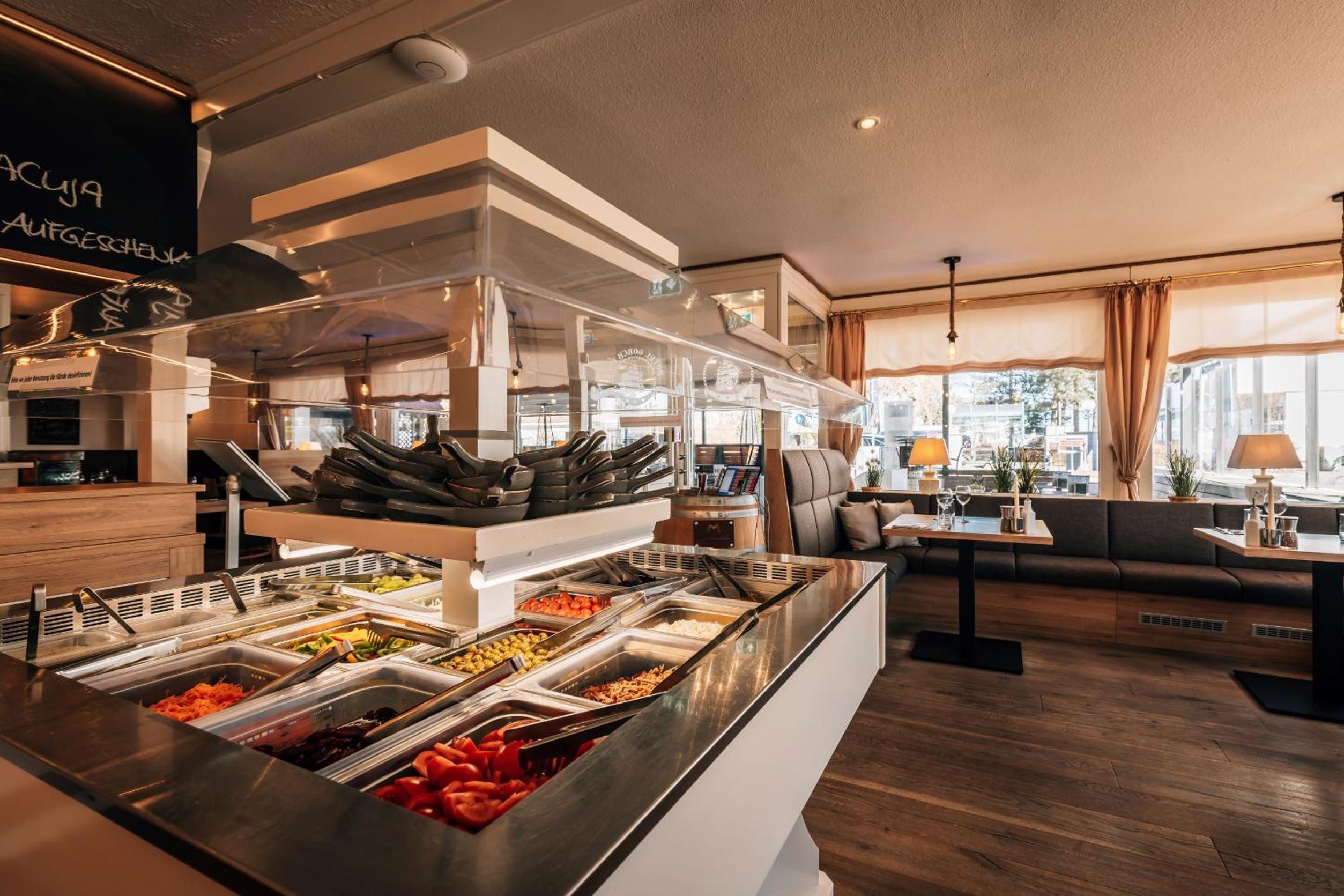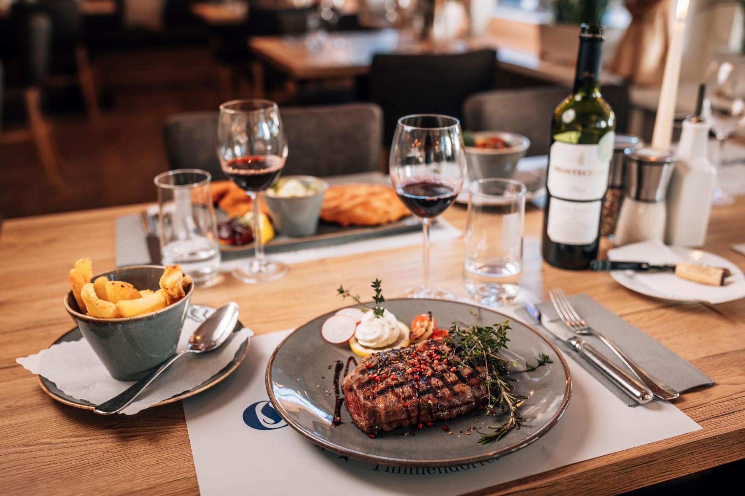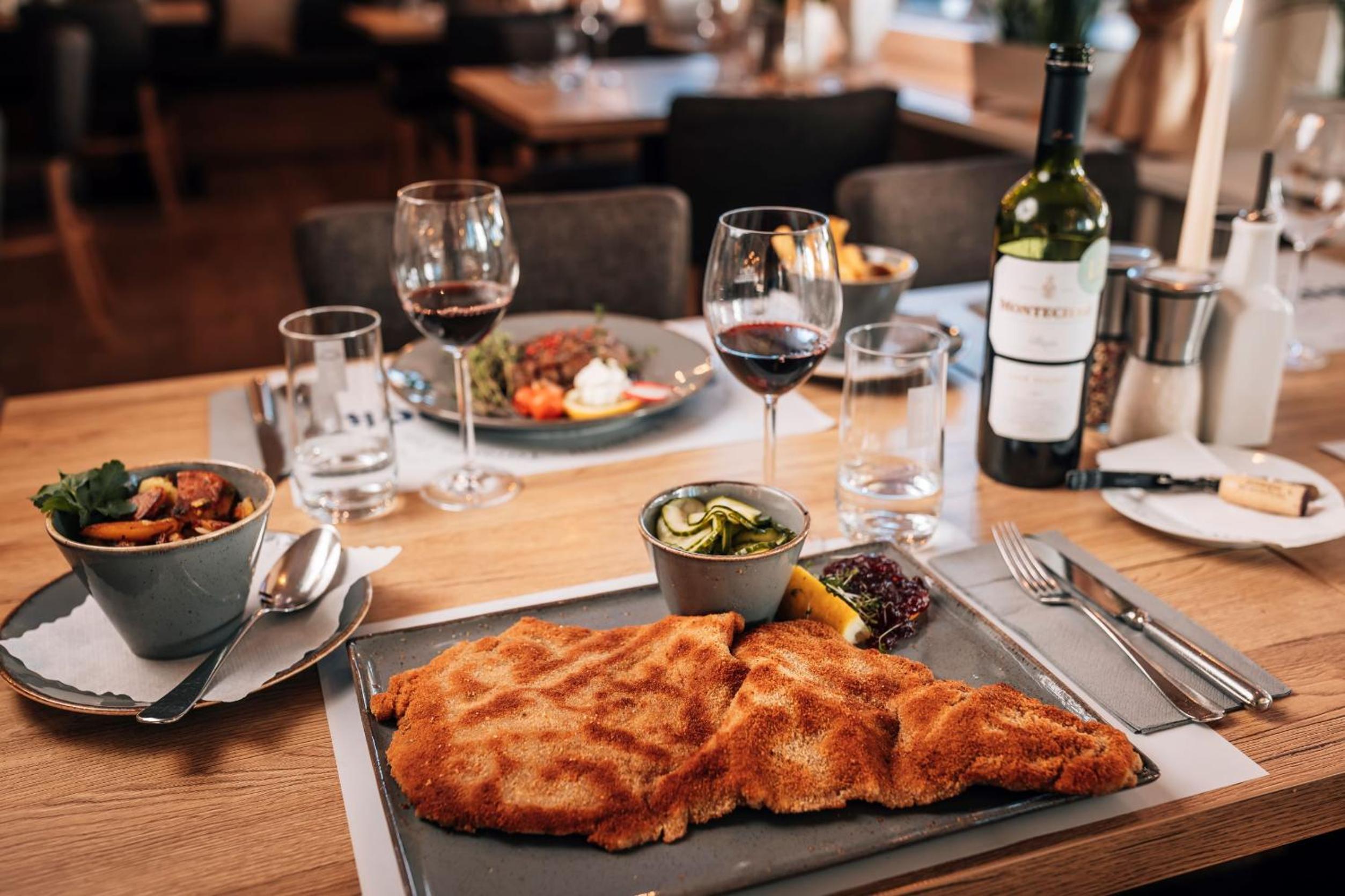 Das Frühstück ist ganz okay und das Abendessen ist sehr gut. Ein Besuch im Restaurant lohnt sich in jedem Fall. Das Preisniveau ist ortsüblich und die Gerichte werden wirklich hochwertig zubereitet.